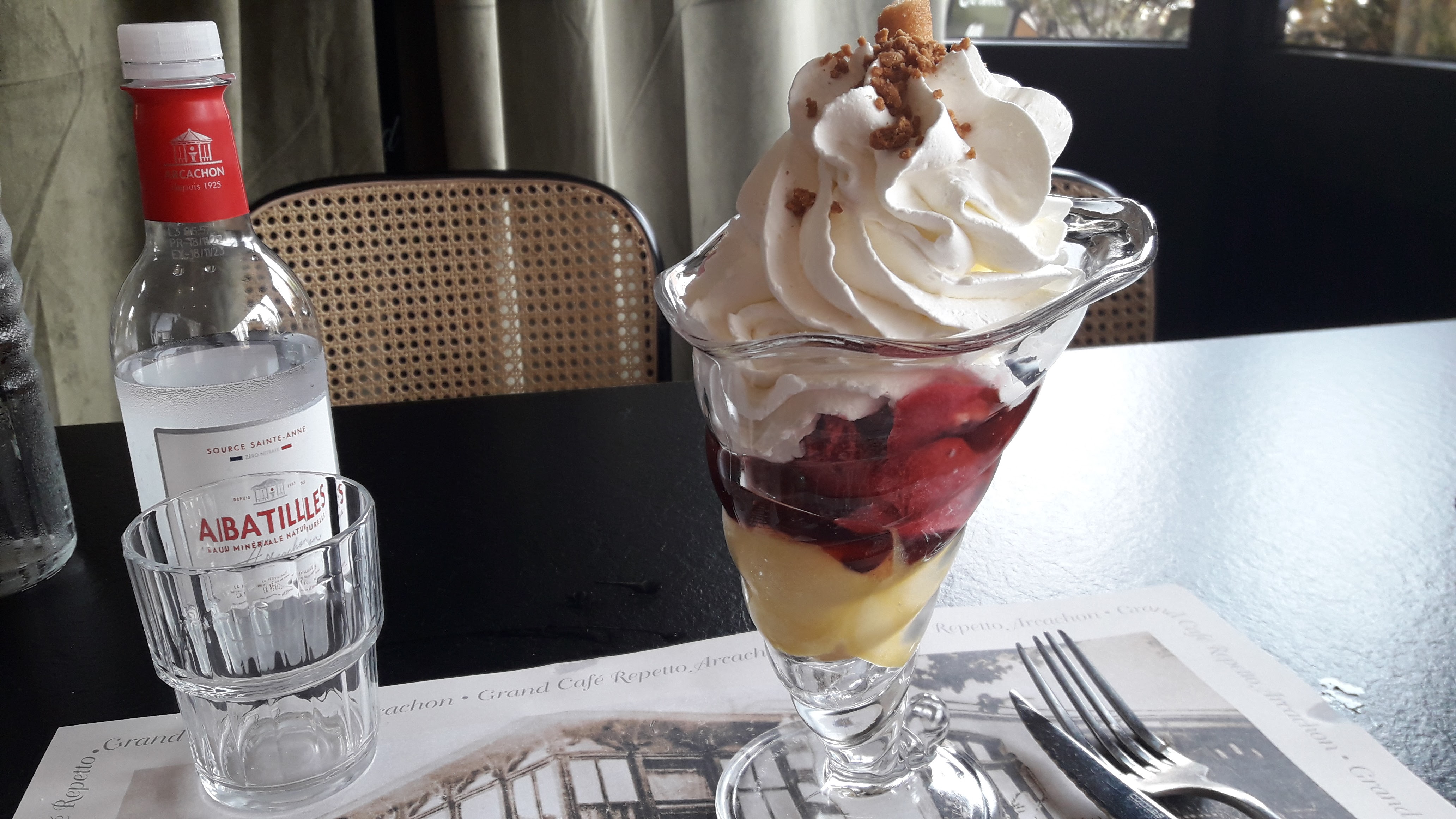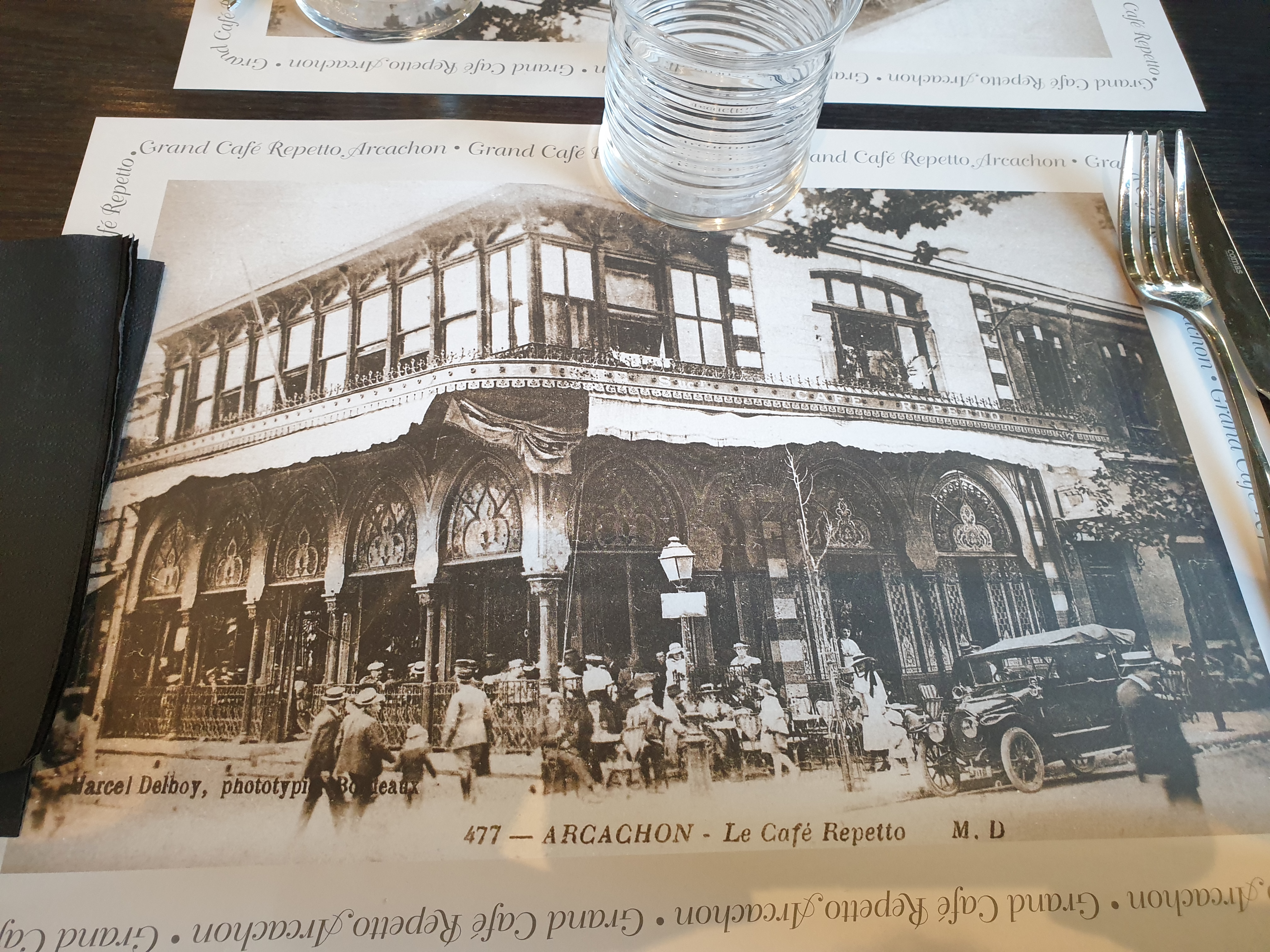 Nous sommes retournés au grand café Repetto à Arcachon. La première fois, nous avions été contents. Ce coup ci, ce fut moins le cas. Commençons par l'entrée. Le foie gras est servi dans un bocal de verre...un peu surpris par cette présentation dans un restaurant. Ensuite, deux triangles en guise de toast, c'est peu, j'ai du finir le foie gras avec du pain. Nous avons ensuite attendu 55mn entre l'entrée et le service du plat principal. Le serveur très serviable et sympathique nous a expliqué qu'il manquait du personnel et que le recrutement est compliqué. Ce qui est vrai, les cafés hôtels restaurants manquent de personnel. La pièce de bœuf était bonne mais déception pour les frites : pas des frites maison , frites qui ont le goût et la consistance des frites Mac Do (surgelées). C'était notre expérience de ce jour là...