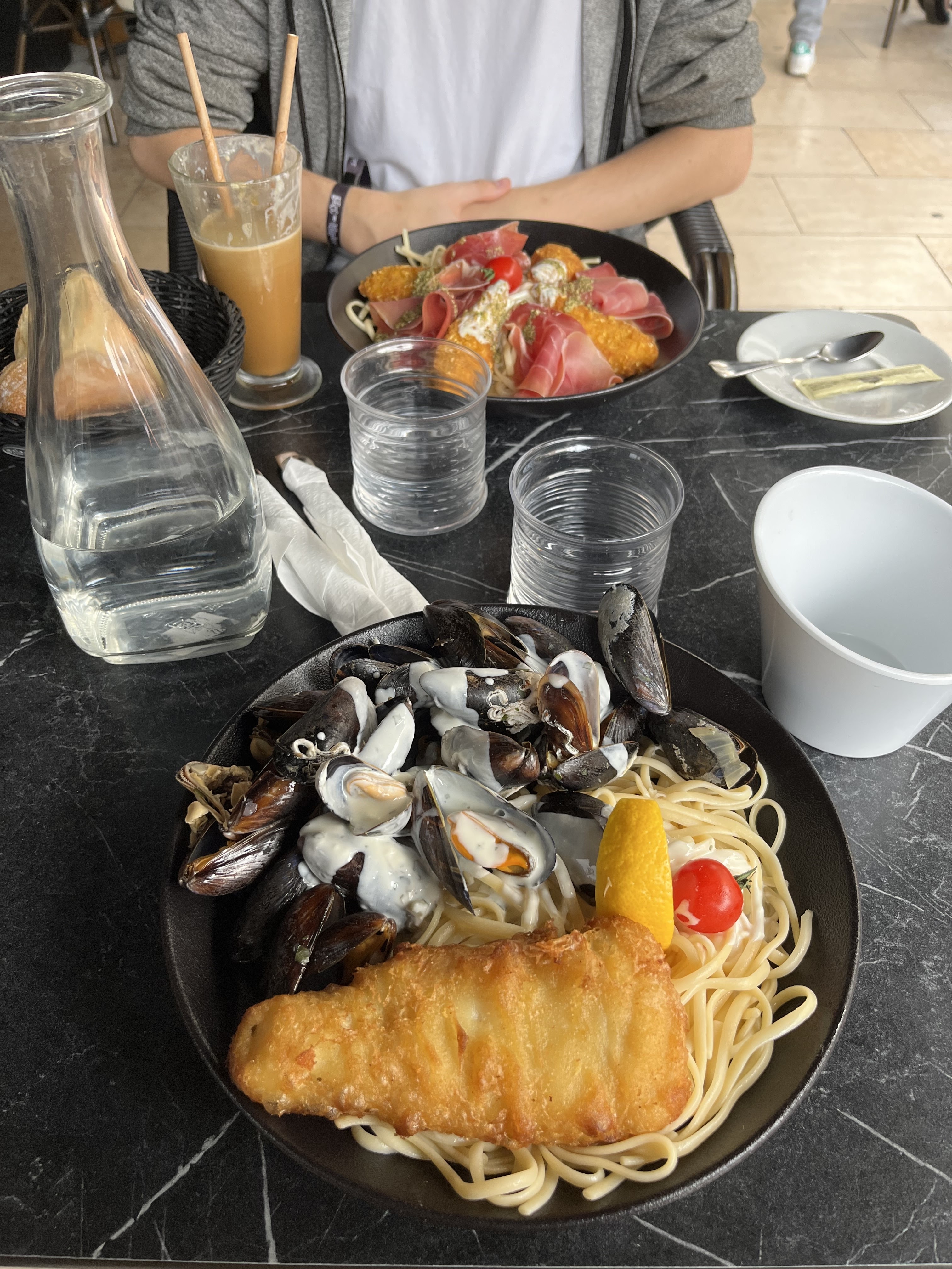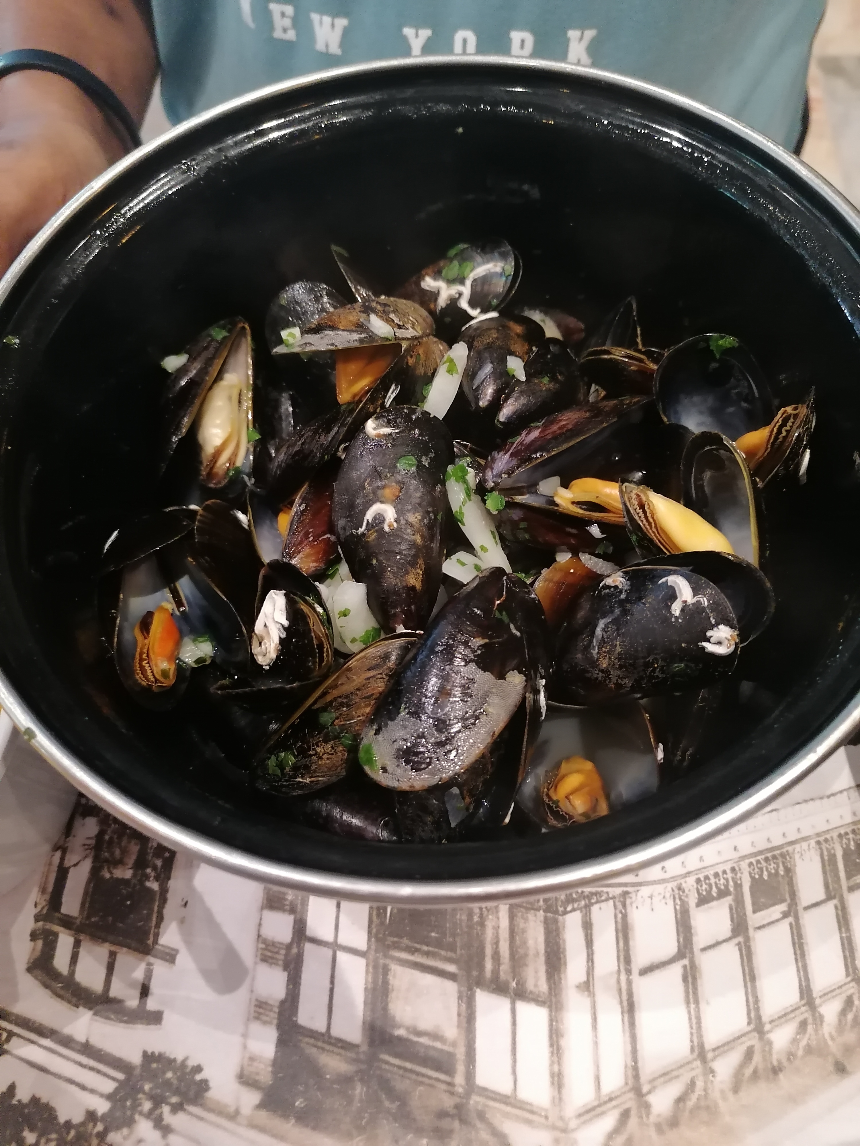 Un peu partager sur l'expérience. Le mojito n'avait pas vraiment de goût, mais ça j'ai l'impression que c'est souvent le cas dans les restaurants. Pour les moules elles était bonne, la sauce cream ajoutais rien au plat elle était fade, faudrait rajouter des herbes où je ne sais quoi. Les frites sont des frites congelé mais pour nous elles étaient bonne. J'ai vu a certain table ou elleq etaient a peine cuite. Je conclurait comme j'ai entendu à la table a côté C'est pas wouhou mais c'est pas mauvais.