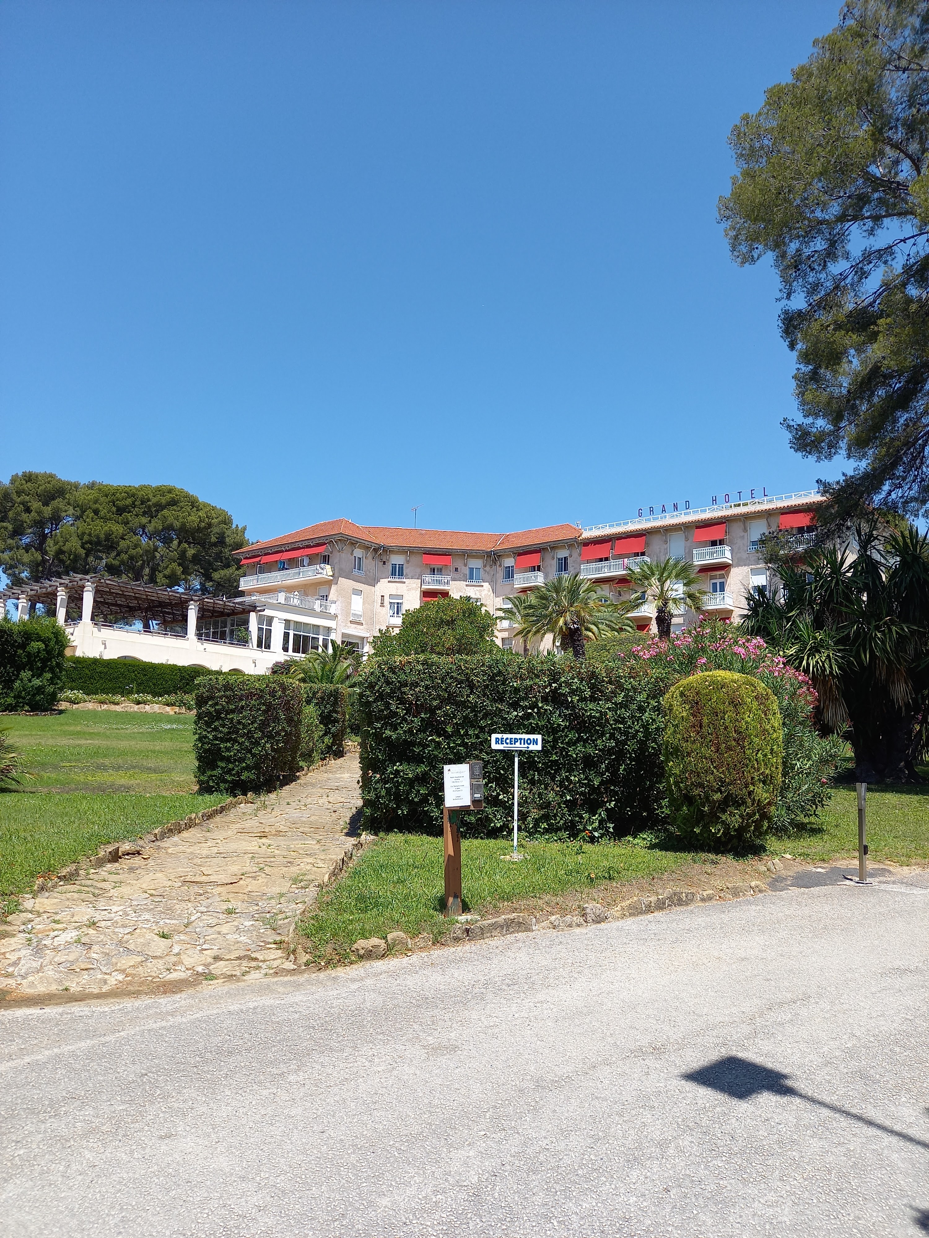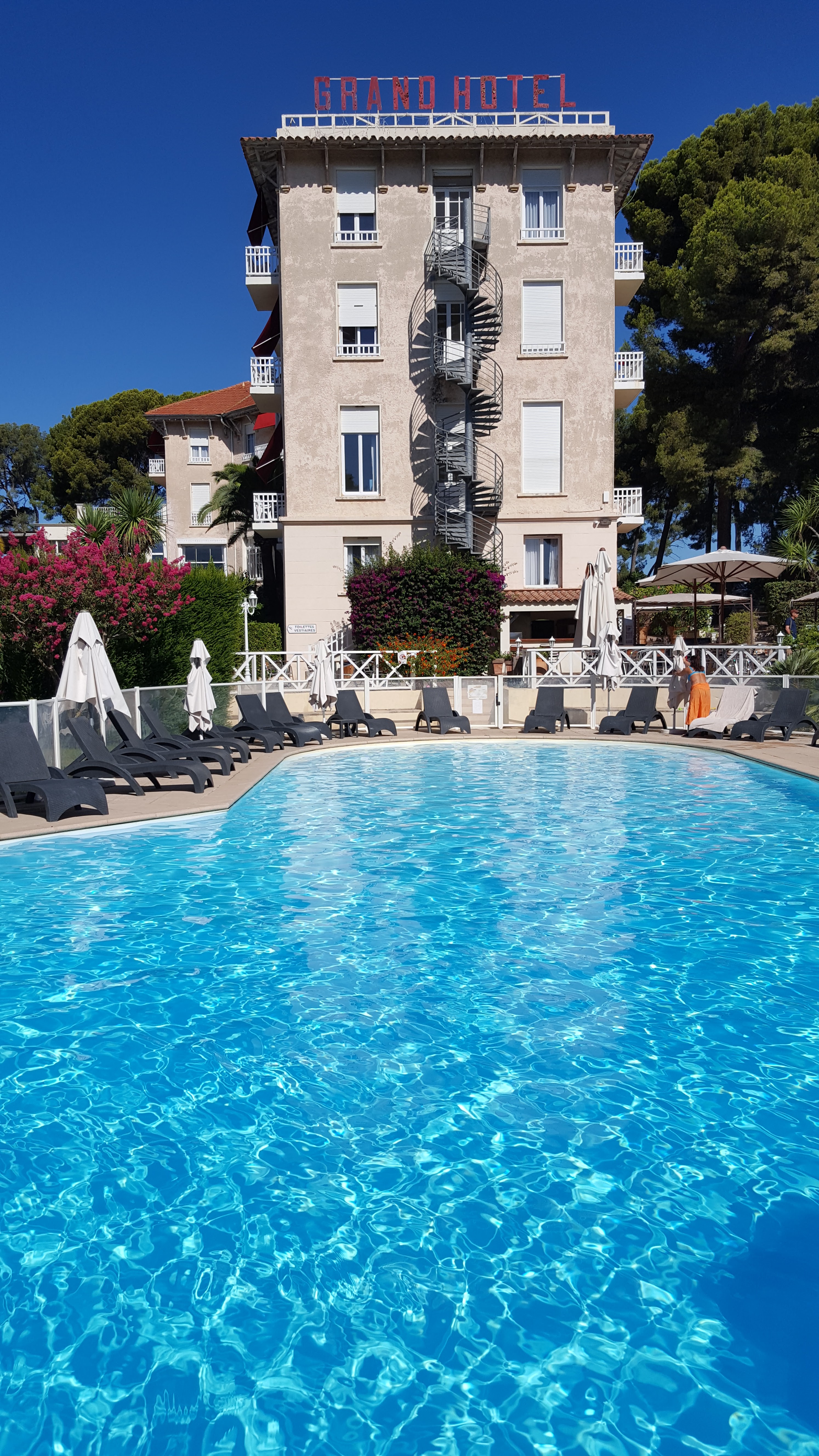 Le charme du grand hôtel, ce je ne sais quoi qui nous déconnecte du temps, mérite bien que l'on s'y attache, et que l'on ait envie d'y revenir... Nous aimons nous y retrouver avant les grands bain de foule de l'été, la vue de notre chambre dominant la mer. C'est dans un décor entretenu, soignée dans la chambre mais parfois vieillot, décalé de nos gouts contemporains, et combien différent des établissements voisins, que notre regard plonge sur le magnifique parc entourant le bâtiment principal. L'accès parking se fait naturellement sous les pins aux troncs bien droits, les racines sortant du sol par endroit. Une terrasse se prolonge par une piscine de taille assez belle mais qui n'est pas très tendance. Les transats sont réservés par des clients un chouia égoïste... en bref nous adorons cet établissement et l'excellente cuisine qui est proposée le soir. Le restaurant est magnifique, au carrelage ancien et baies vitrées datants, le décor fait voyager, l'ambiance est juste à apprécier, ce qui est unique à mon sens. La formule demi pension est super car le petit déjeuner est très copieux. Nous avons appris que l'établissement allait être entièrement rénové, et cela pendant de nombreux mois. Il va s'en dire que le luxe va être un atout supplémentaire, quant au charme, je l'espère, sera conservé de bien des manières, des beaux objets seront gardés, la mémoire du passé sera sublimé, je l'espère.