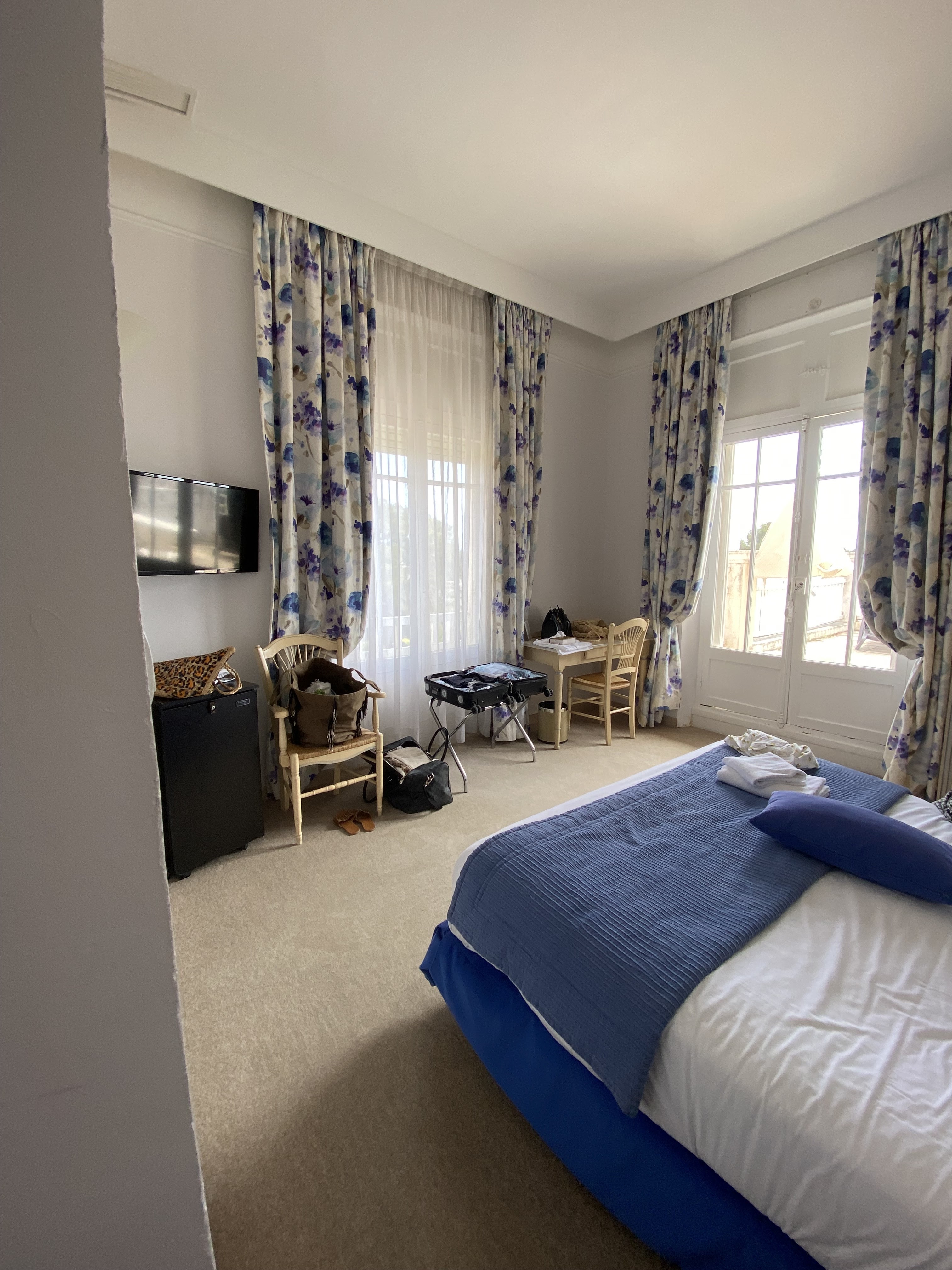Alors tout avait mal commencé car à l'ouverture de la chambre elle n'avait rien à voir par rapport aux photos du site, une chambre et une salle de bain d'un autre temps avec une porte communicante avec une autre chambre ou on entendait les gens parlé et recevoir leurs Messages sur leurs téléphones, horrible, la vue mer y était mais le charme etait rompu. Nous allons demander une autre chambre et à l'ouverture de celle-ci la grosse blague elle était occupée 😐. On nous donne une dernière chambre qui elle correspondait aux sites mais sans la vue mer et le balcon 😐 la salle de bain est neuve mais mal fini quel dommage. La piscine est très belle. L'hôtel complet à vraiment besoin d'un gros gros rafraîchissement, malgré tout le charme de l'ancien dans le hall est sympa. Nous avons malgré tout bien dormi et le petit-déjeuner était copieux, bon et à profusion jusqu'à 10h. Conclusion attention aux photos sur le site qui ne correspondent pas avec la réalité. On nous a tout de même offert un petit café en partant.
