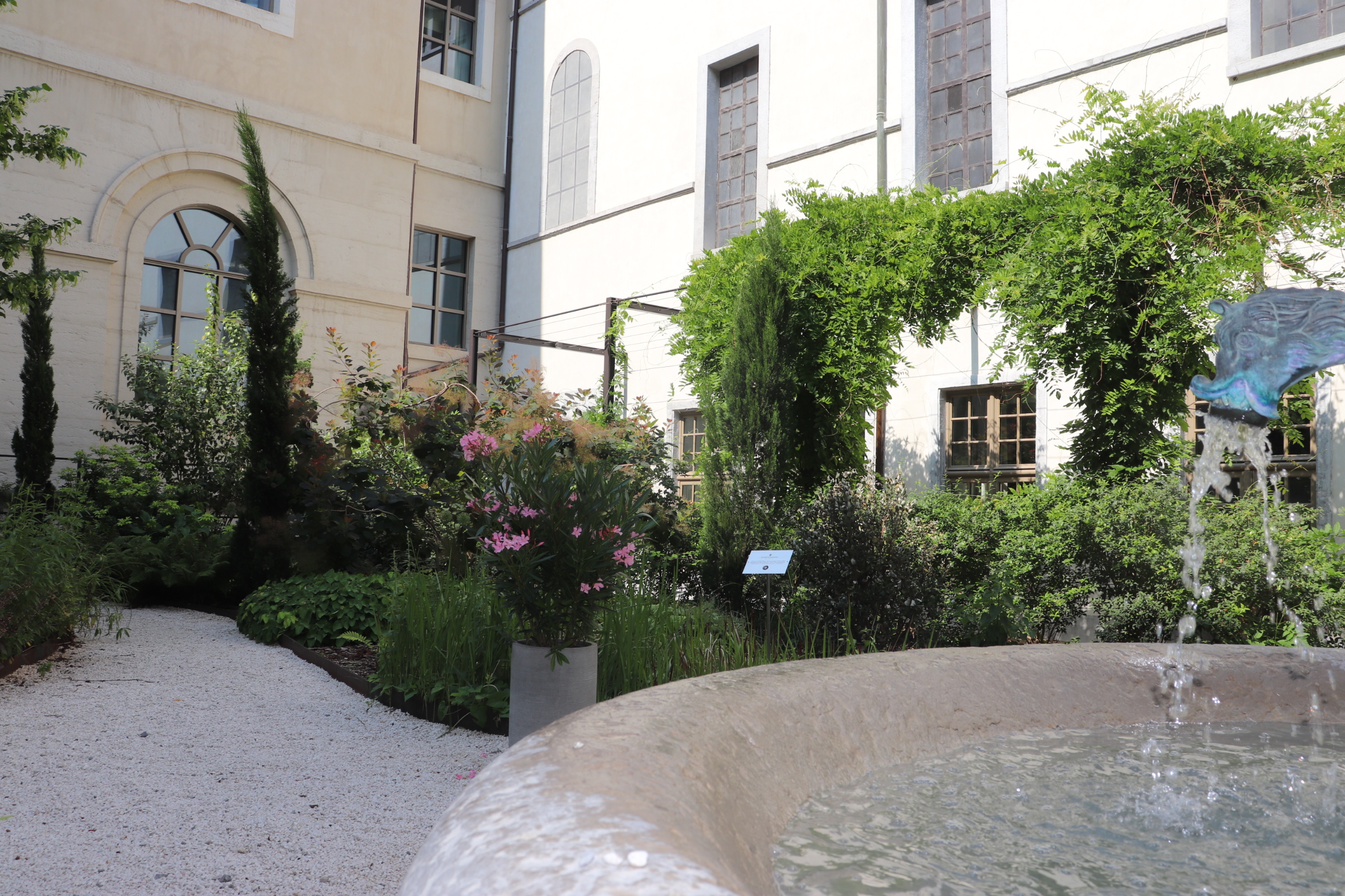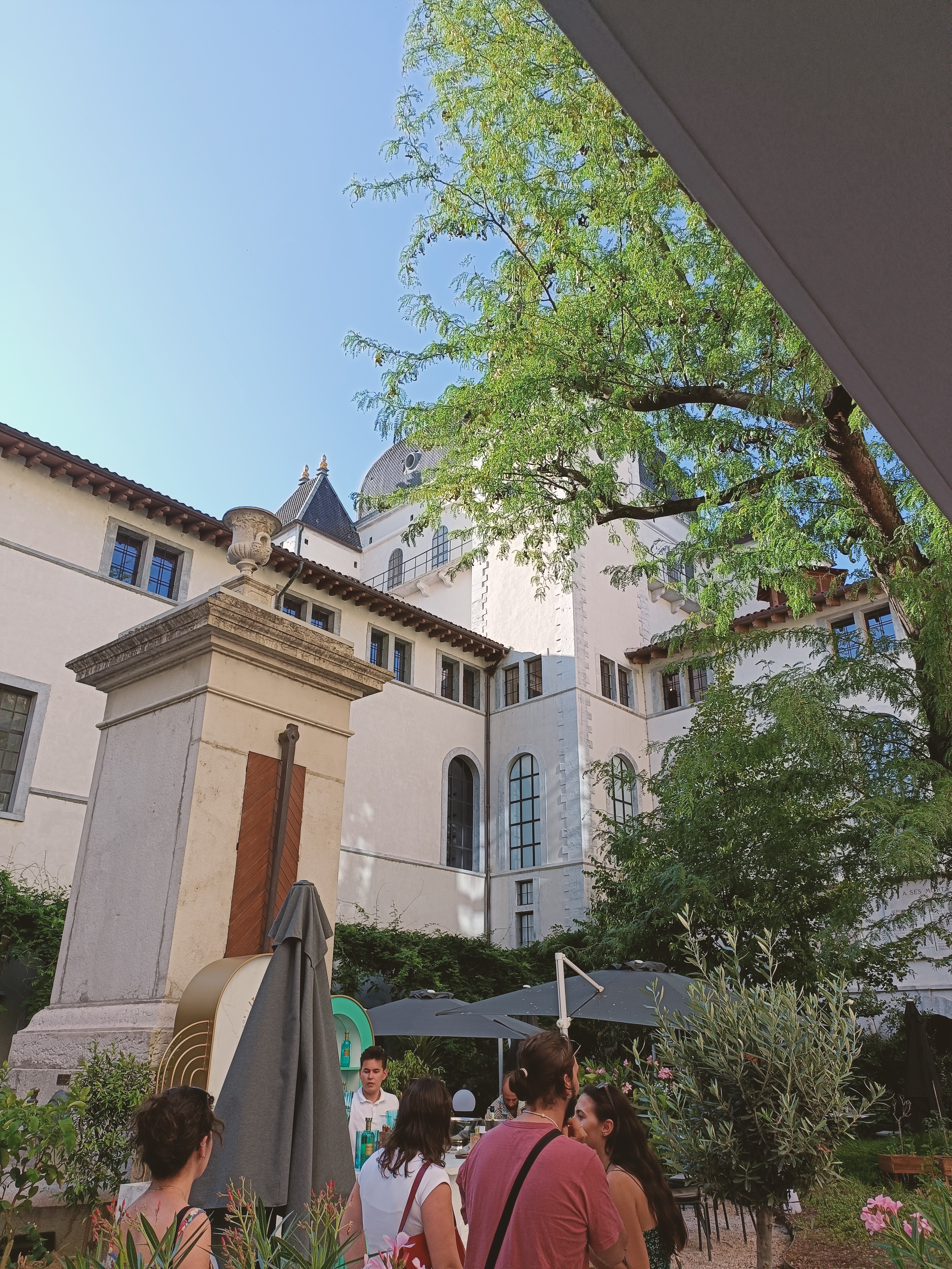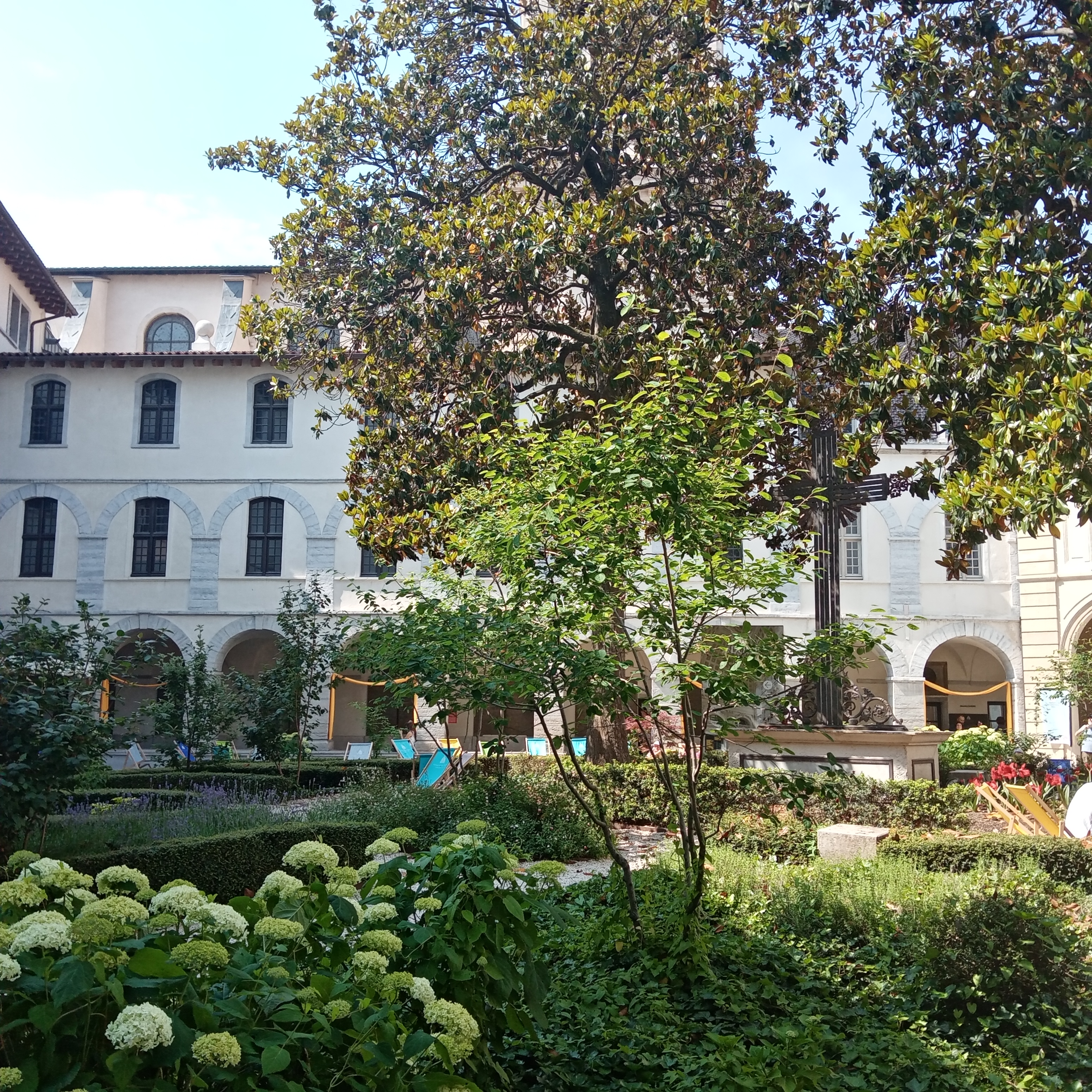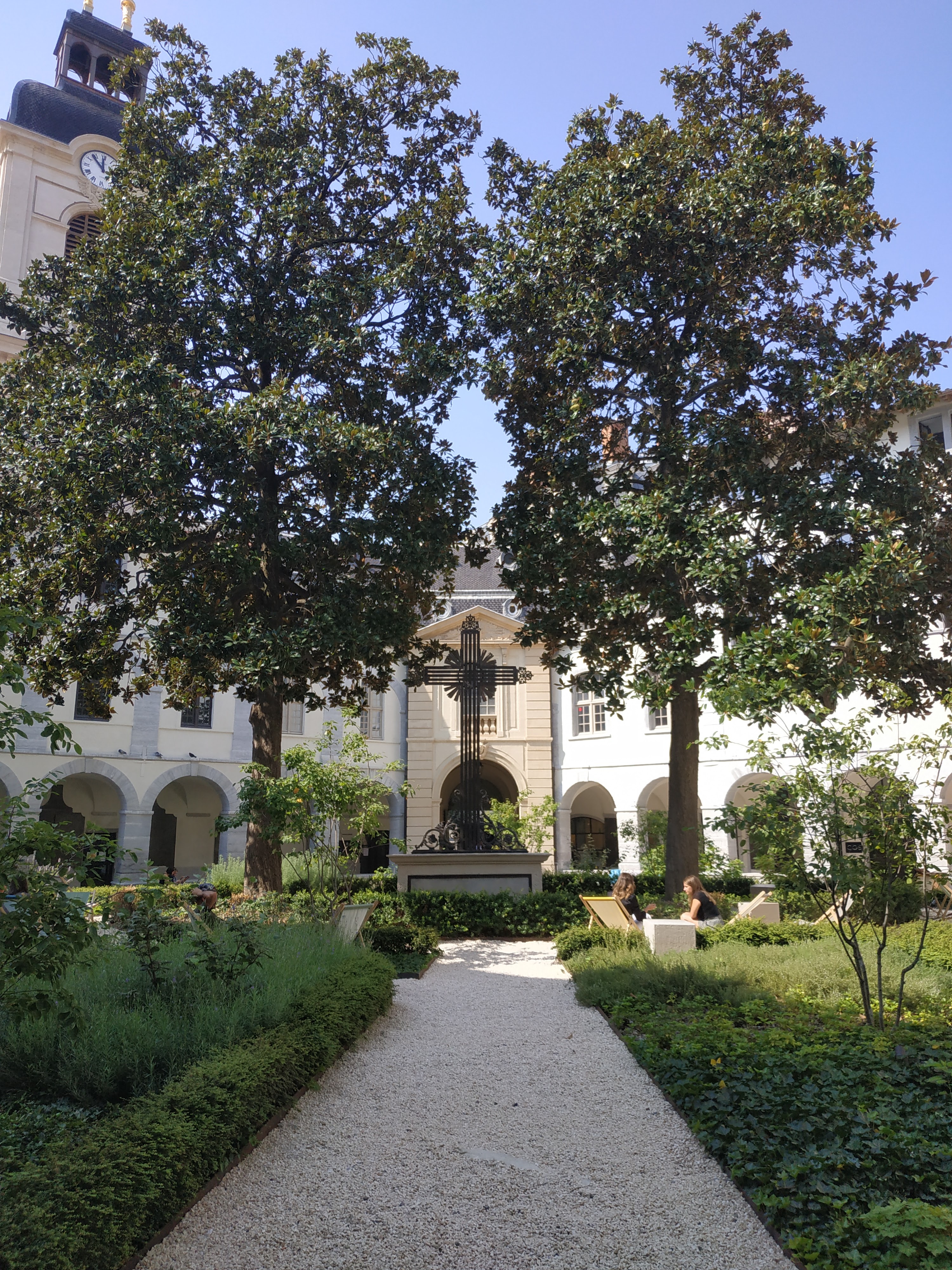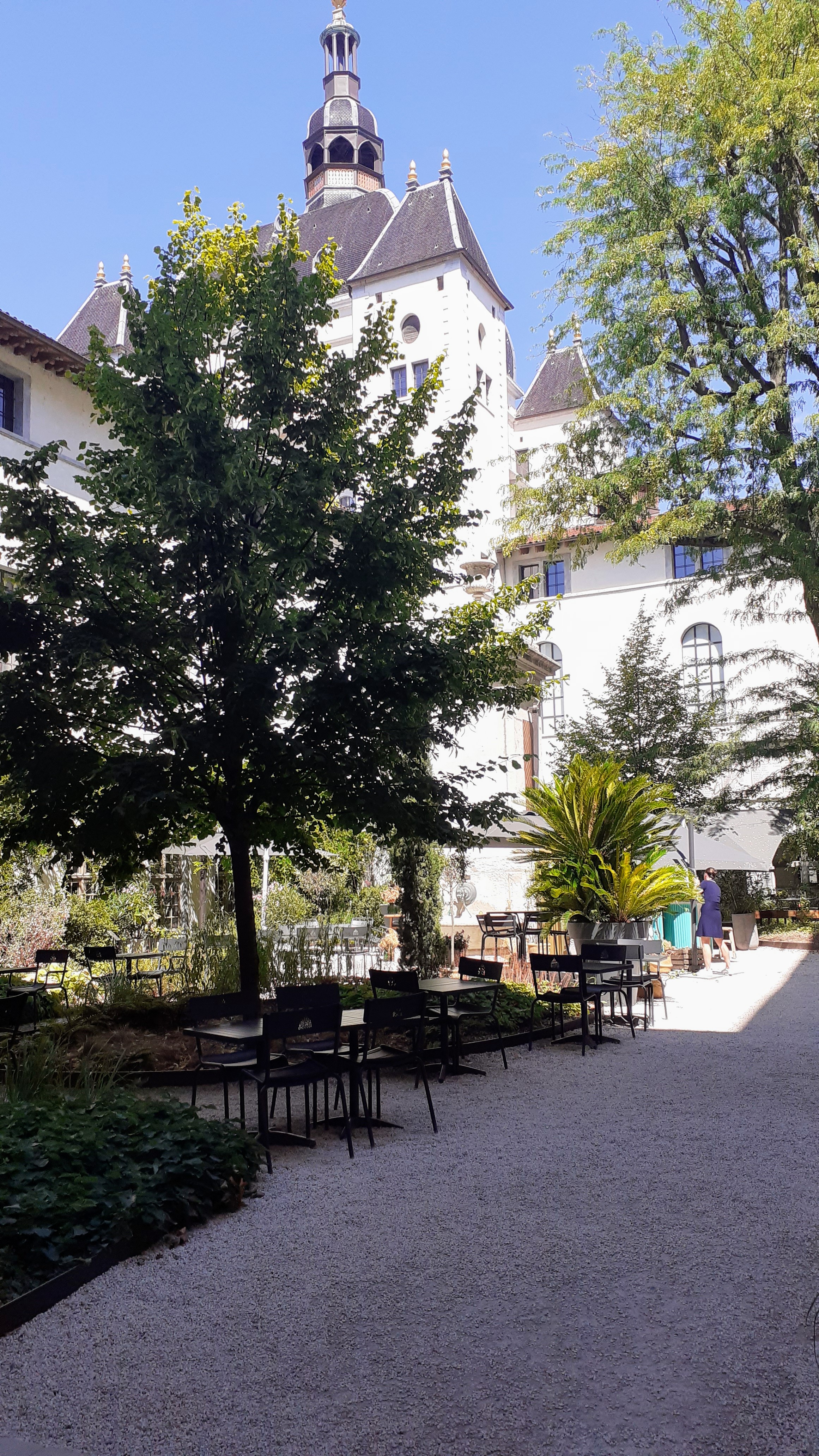 Lieu très agréable où il est possible de simplement venir se reposer seul ou entre amis. Des transats et fauteuils disposés dans les différentes cours s'y prêtent. Le tout est délicieusement ombragé et végétalisé. Vous pouvez aussi visiter la chapelle de l'Hôtel-Dieu. Et bien sûr faire du shopping ou vous restaurer. Sans oublier l'actuelle exposition sur le microbiote intestinal (jusqu'au 30 juin 2024)