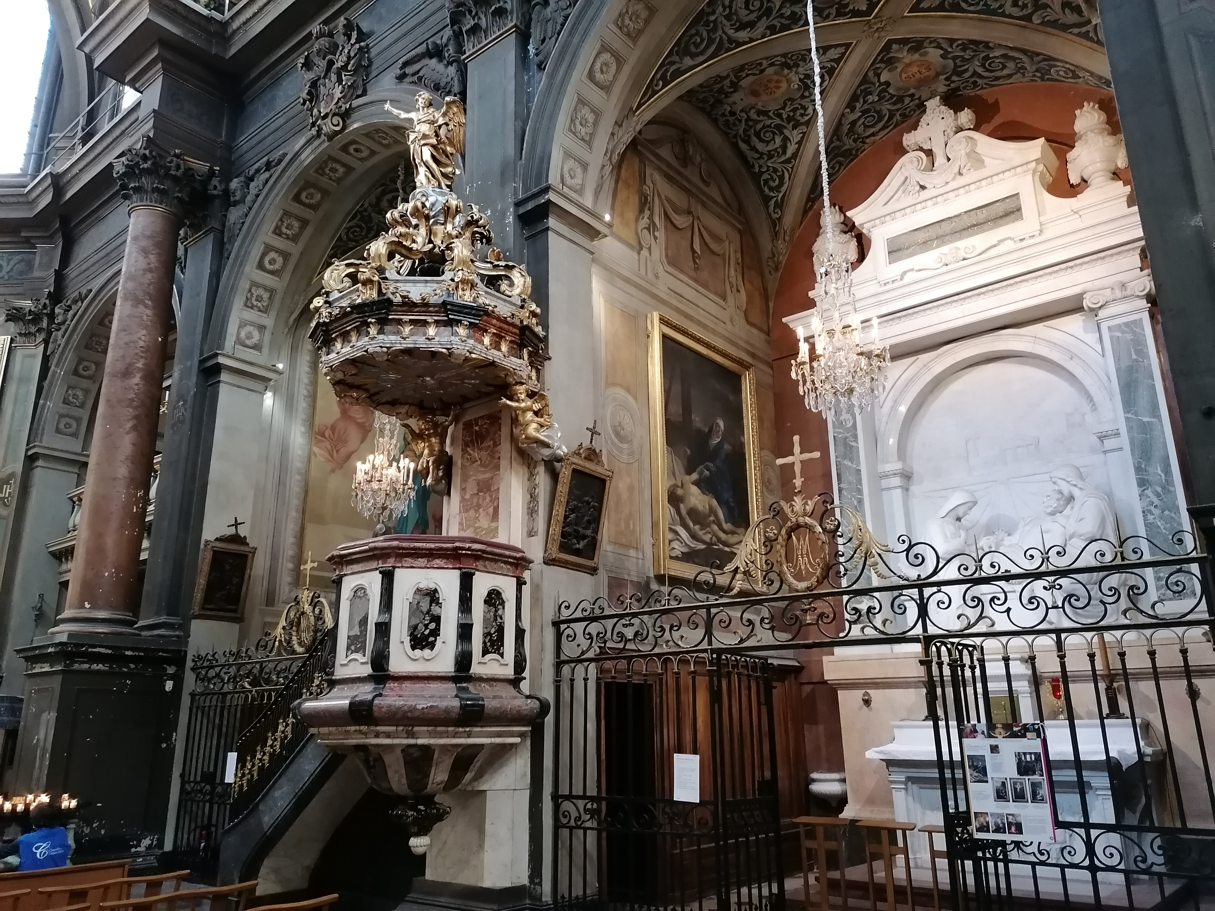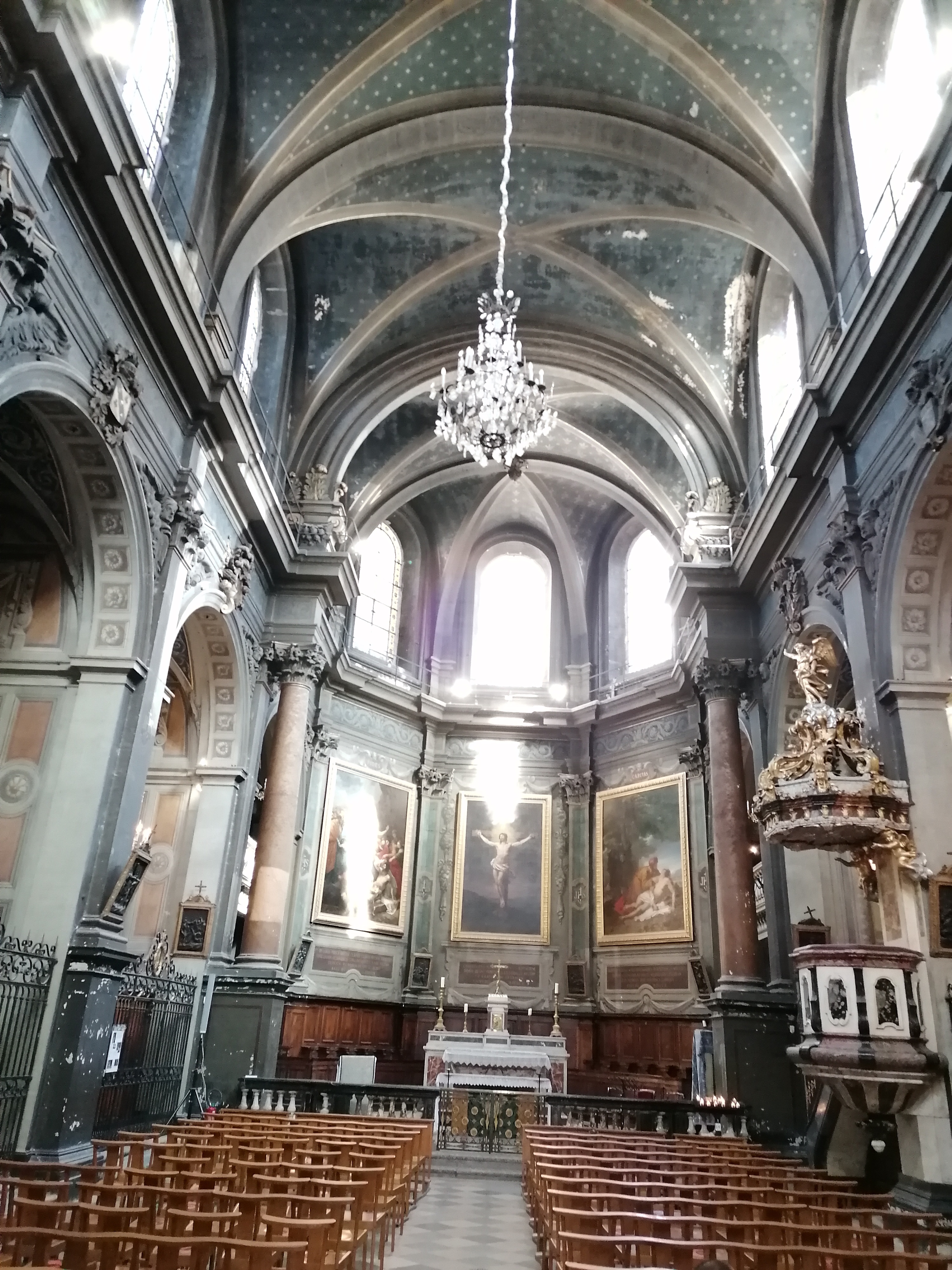 Magnifique et immense bâtiment du grand architecte Soufflot devenu centre commercial... On peut légitimement s'interroger sur une telle destination alors qu'il s'agit d'un joyau de l'architecture du 18ème siècle. J'ai vu à Amsterdam des églises transformées en restaurants ou boîtes de nuit, mais est-ce vraiment un exemple à suivre? Enfin... A ne pas manquer: le très impressionnant dôme devenu un café très chic et très cher et aussi la chapelle qui, elle, sert toujours de chapelle...! Ouf!