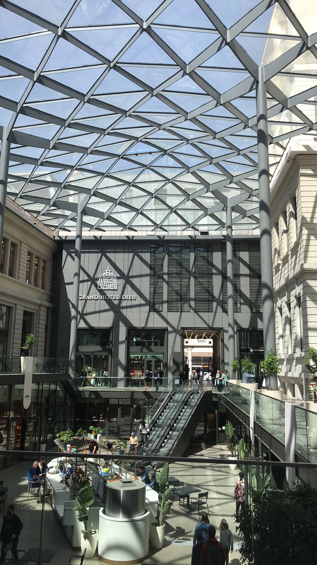 Rénovation de ce monument est impressionnante, il ne faut pas y aller que pour les magasins mais aussi pour l'historique. Commencer la visite du côté de la chapelle pour visiter les différentes cours en enfilade. Surtout n'oubliez pas de télécharger l'audioguide de l'hôtel Dieu. Enfin passez voir le dôme exceptionnel au bar, au 1er étage de l'hôtel international.