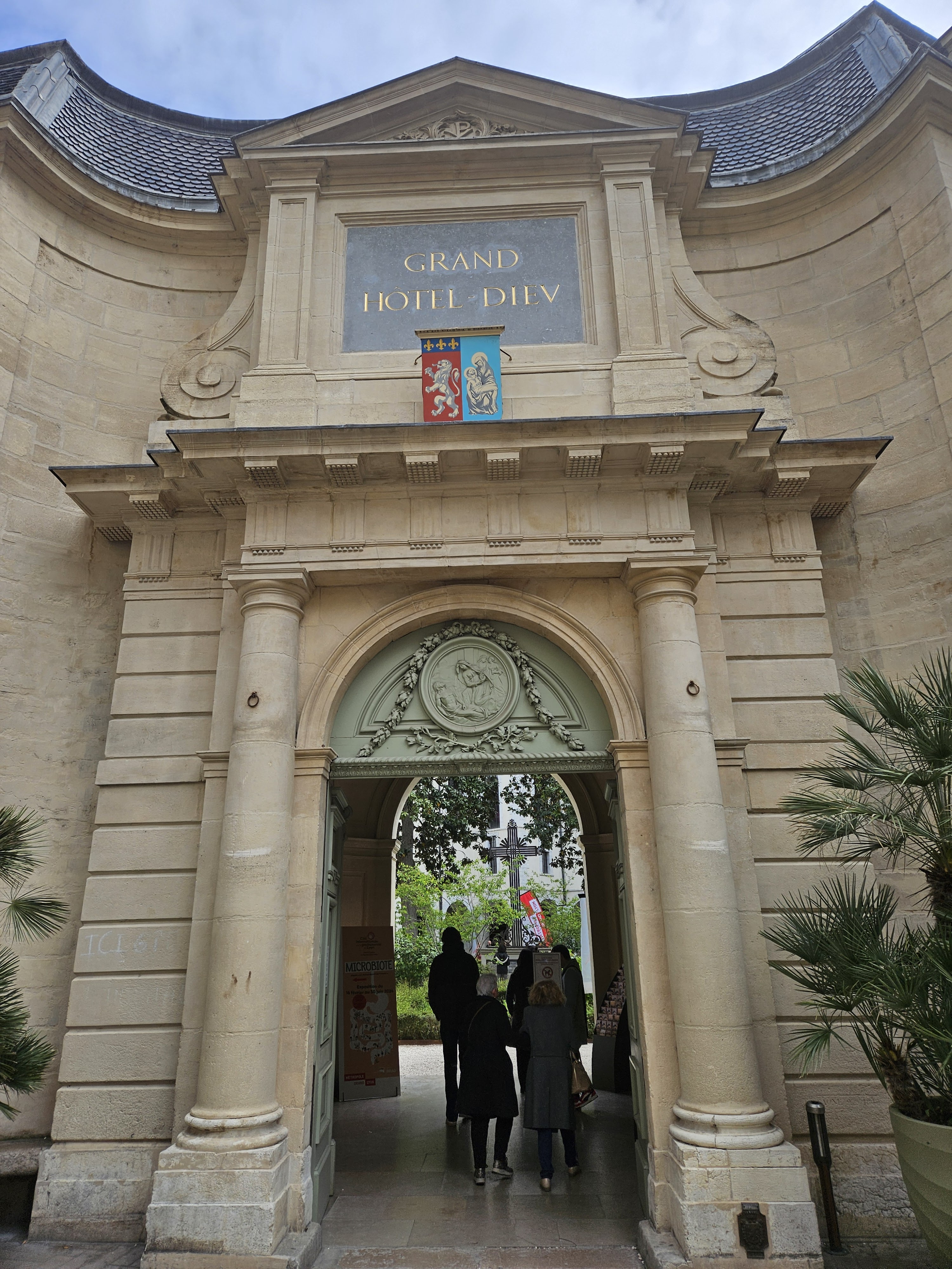 Ce magnifique ensemble immobilier, construit à partir du moyen âge, était dédié aux soins des plus humbles et des pèlerins. Sur la presqu'île, proche de Bellecour et longeant les quais du Rhône, rive droite ce bel ensemble immobilier, est désormais devenu un temple de la consommation,..., C'est bien dommage! Mais je vous invite à venir visiter cet ensemble très bien réhabilité et profiter des cours intérieures pour vous reposer et de la chapelle, laquelle est en cours de réaménagement. La cité de la gastronomie située dans le cloître après une ouverture en 2019, a fermé ses portes (définitivement ?) sans doute par manque d'intérêt, de fait par l'absence de visiteurs, et par son tarif d'entrée excessif ! Les PRM peuvent accéder aisément aux divers sites. Bonne visite! Profitez des cours intérieures, visitez les halles (lesquelles sont bien moins intéressantes que les halles Bocuse, dans le quartier de la Part Dieu ! ).