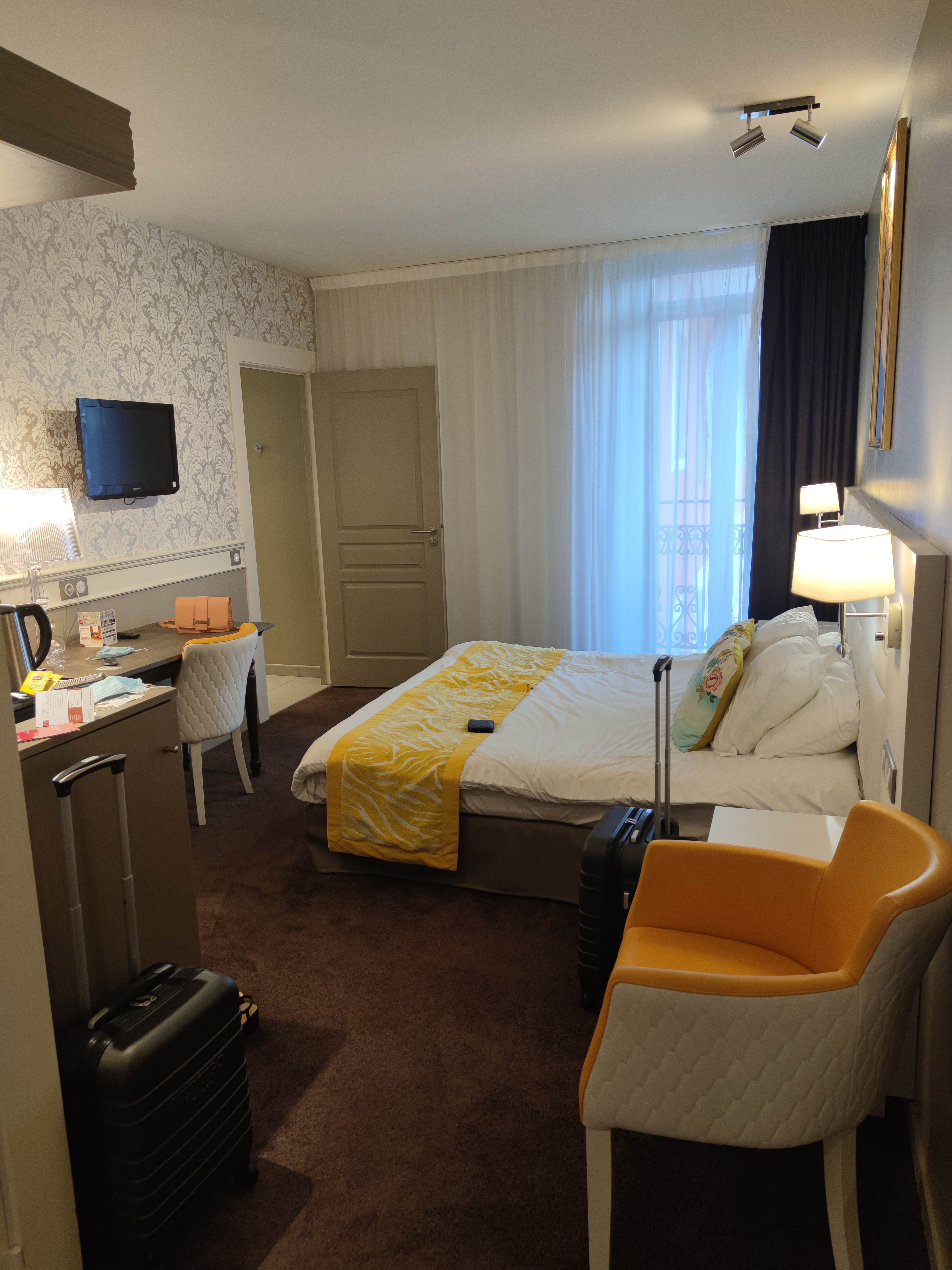 Nous sommes venus en couple pour découvrir Lourdes en se donnant l'opportunité de rester dans un endroit confortable. Le personnel est le point fort. Souriant , a l'écoute , disponible. Strictement rien a redire. La chambre : le lit double était en réalité deux lits simples joints. Pour un 4 etoiles... c'est dommage. Nous avions demandés une baignoire , nous avons eu une douche ( italienne et spacieuse) , dommage encore mais acceptable. les toilettes sont coincées dans un coin qui demande de se contorsionner pour y entrer, une première pour nous. La vue depuis la chambre : elle comprenait un balcon ce qui est un bon point, nous avons fait le tour de l'hôtel celui ci offrait des opportunités de vue magnifiques dont toute une façade vers le parc de notre dame de Lourdes. Malheureusement notre chambre donnait directement sur la rue commerçante avec un vis a vis direct sur l'angle de la mairie ( autant dire du bruit et du béton). Une chose a savoir, le chauffage est haut par défaut. Et la VMC automatique s'active vers 6h00 du matin. il faut ajuster ses besoins avec le tableau domotique disponible a côté du lit et tout couper la nuit. Sinon c'est le réveil assuré. L'isolation phonique de la chambre est excellente concernant la rue ce qui est une bonne chose. En revanche, on entends les bruits de pas et de porte dans l'hotel. Le wifi de l'hôtel est puissant et fonctionne parfaitement. Ce qui vaut un 3 et non un 4 est notre plus grande déception. L'hôtel offre un service SPA. Lors de notre venue, ce service était indisponible car en entretien. Dans la mesure où c'était ce qui avait orienter notre choix vers le Gallia Londres... Autant dire que la déception fut grande. Enfin le restaurant : une brasserie sympathique qui se distingue des restaurants de lourdes par sa forme gastronomique. Nous y avons bien mangé sans avoir spécialement envie d'y revenir après essai. L'hôtel est digne d'intérêt en définitif. Il est très bien placé dans la ville. Nous y sommes très bien traités. Je pense que nous avons joué de malchance , c'est dommage.