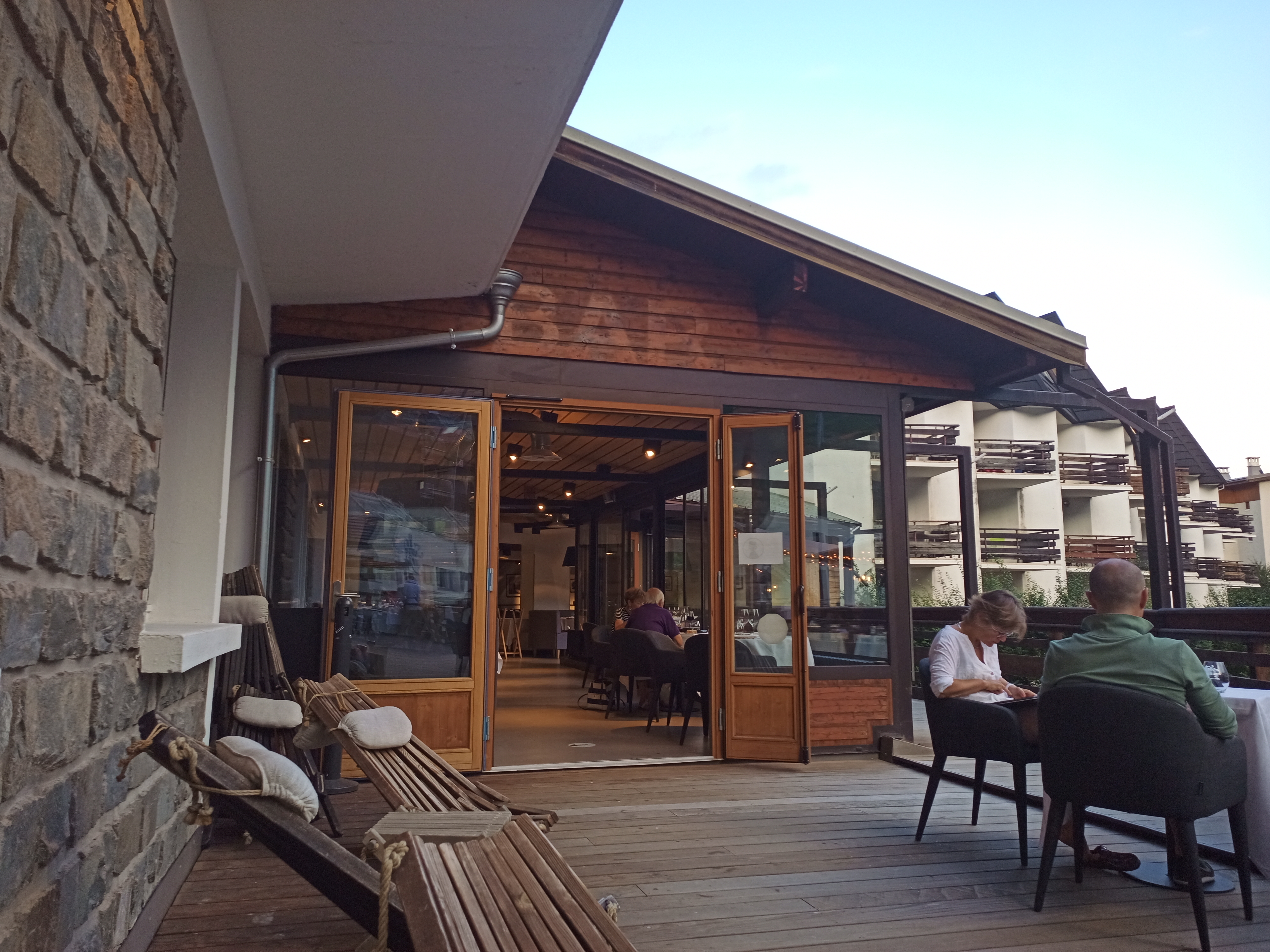 Nous avons profité du bar une soirée et du restaurant, l’annexe, un autre soir. Le bar est très agréable mais les prix déjà élevés les années précédentes sont devenus difficilement justifiables notamment pour un cocktail à 19€ qui n’est plus accompagné de cacahuète (nouvelle politique du manager…)… Bonne surprise pour l’annexe que nous découvrions. La fondue était excellente et les prix dans la fourchette locale. De plus les plats des enfants étaient consistants et qualitatifs (18€ le menu enfant).