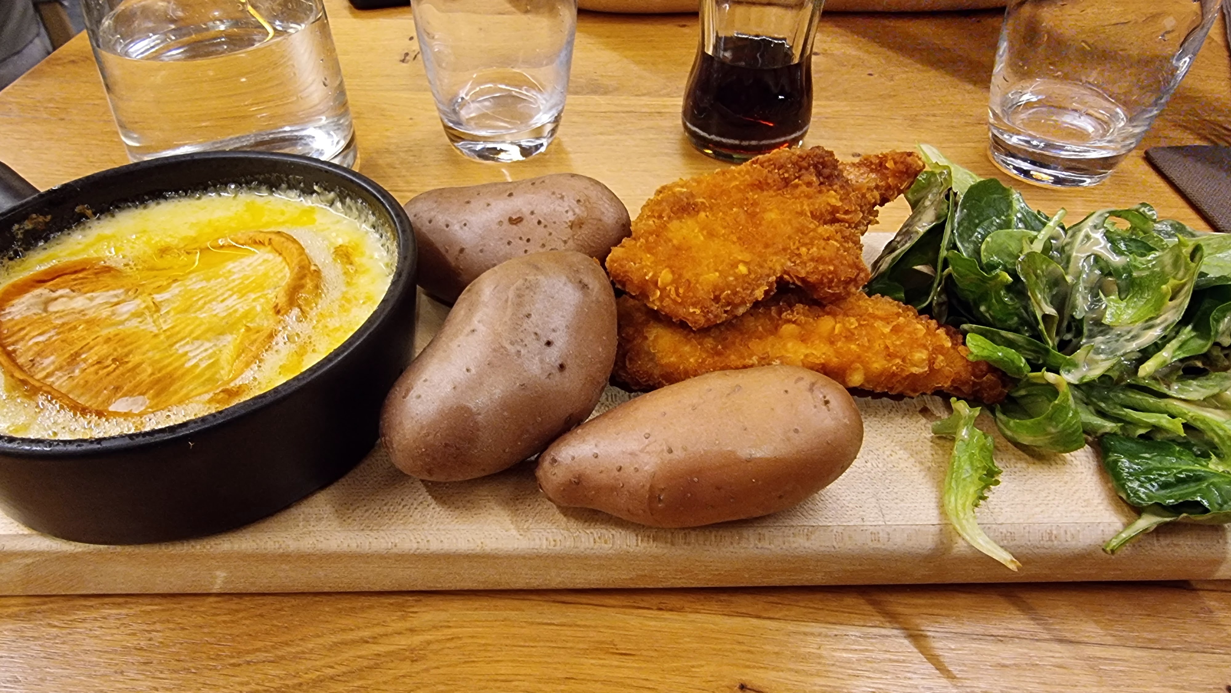 A ne pas manquer! / Not to be miss! Il y a 2 restaurants, celui d’en bas sert des specialites “montagne”, celui de l’etage une carte plus elaboree. Nous sommes alles a celui de l’etage. Nous avons pris les langoustines suivi des saint jacques et du veau. Tout etait tres bien execute. Les langoustines sous 3 formes et le veau avec un croustillant au parmesan delicieux. Pas de vins pour raison de dry january, mais j’ai pu voir sur la carte des vins, des flacons qui sont dans la mienne! There is 2 restaurants, on the ground floor some “montagne” specialties, on the first floor a more subtle menu. The latter was our choice. We took the langoustine followed by scallops and veal with crispy crust. Everything was well executed. The langoustine served on 3 different forms, and the veal crust was made of parmesan and delicious. Owing to dry january, we did not take wine, but i notice some bottles that are present in my cellar!