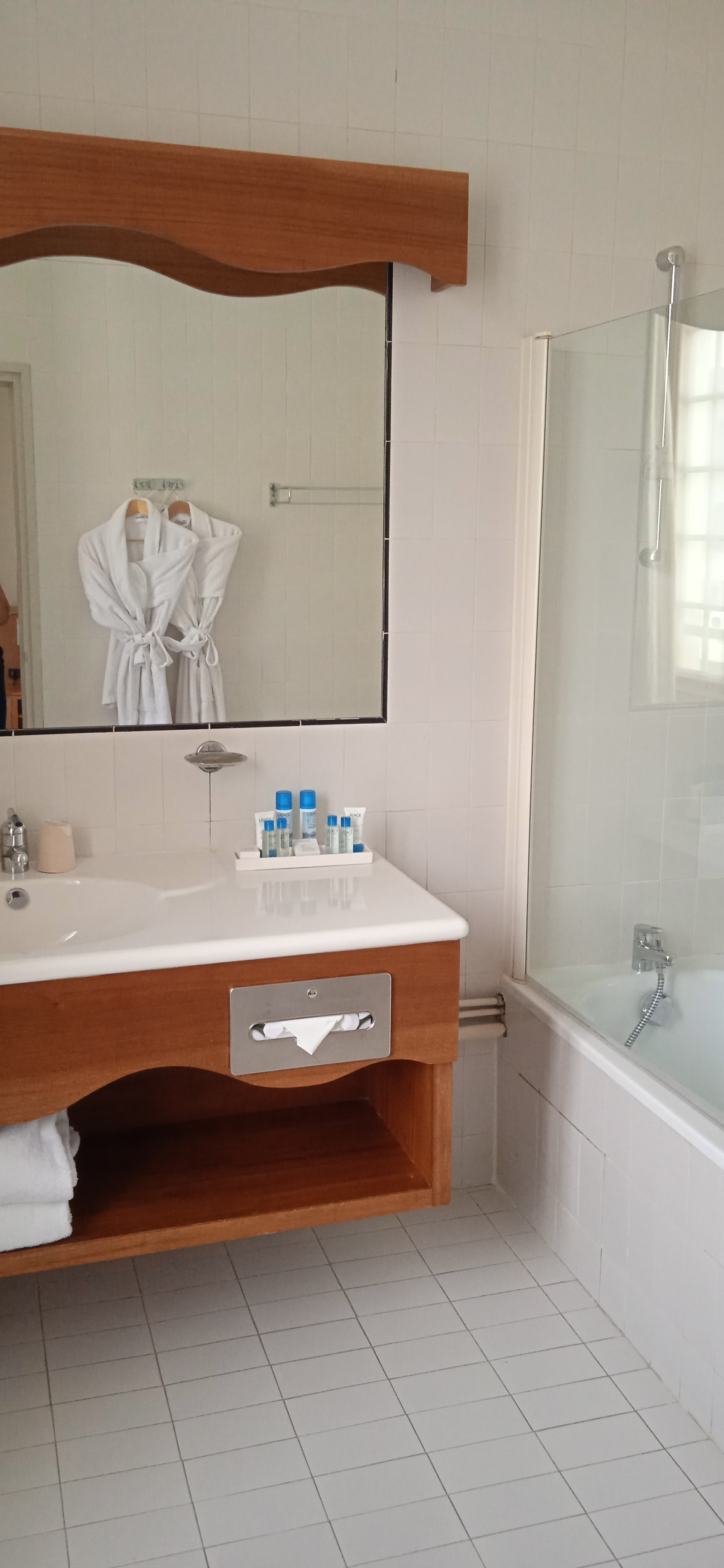 Très bon hotel, les chambres sont spacieuses, notre salle de bains avait douche et baignoire avec des produits de beauté de la gamme Uriage. Petit déjeuner très complet avec une machine qui presse les oranges à la demande.