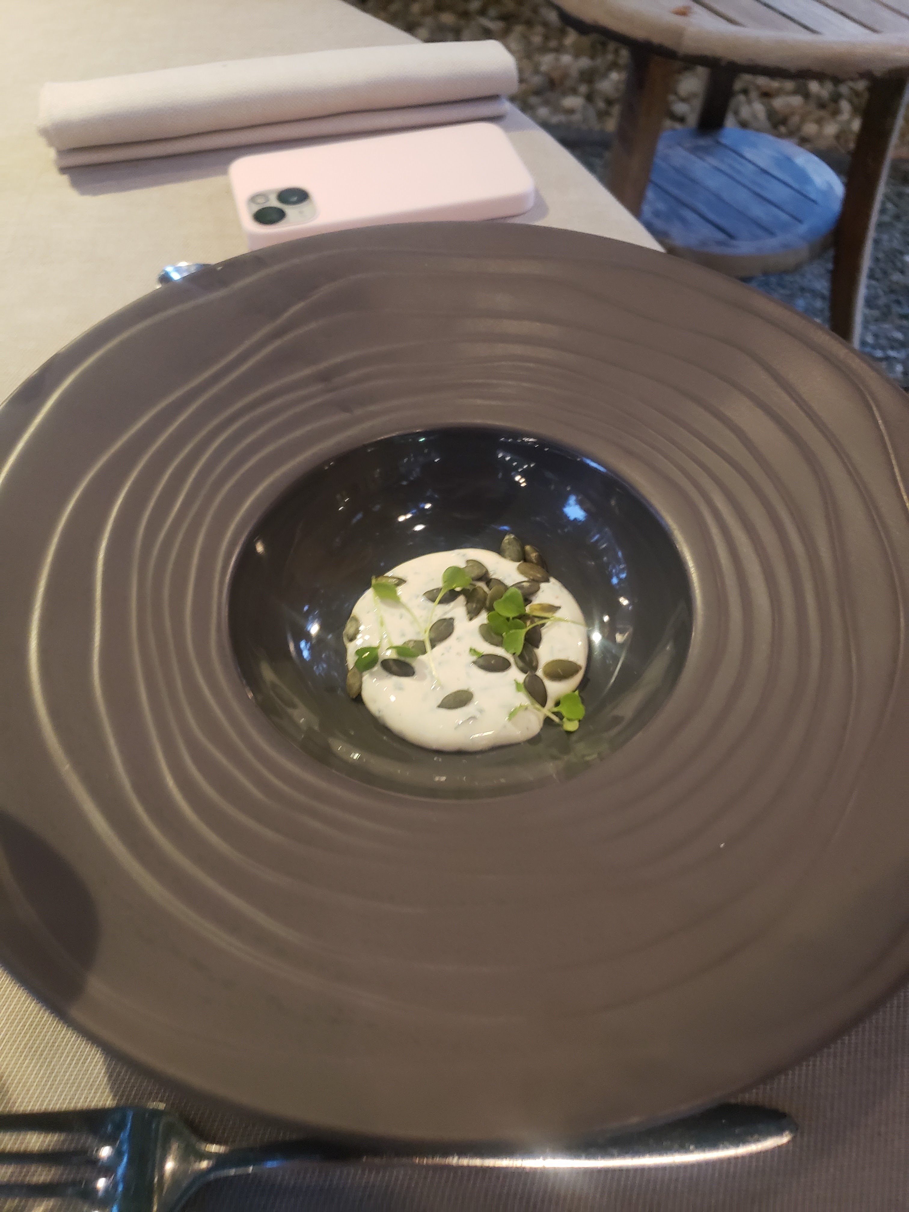 Le lieu est superbe et très calme. La cuisine est un plaisir des sens : goût exquis et ravissement des yeux. Le personnel est très agréable