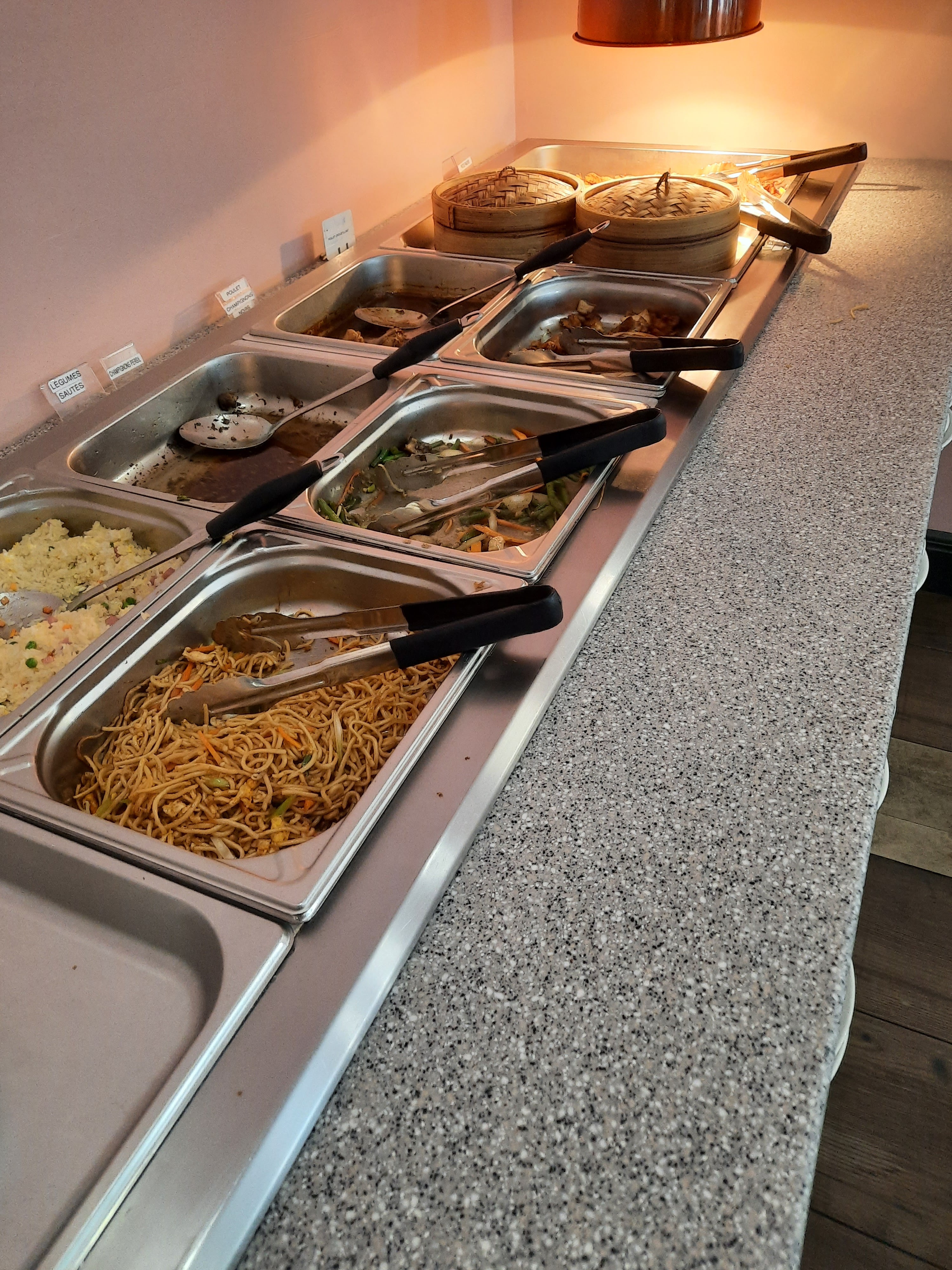 Nous sommes arrivées en début d'après midi. Par principe un buffet à volonté se doit d'être approvisionné jusqu'à la fin du service ce n'est pas le cas. Cuisine plus que moyenne ca ne vaut pas 1 étoile. Trop gras, pas assez chaud, je suis une adepte du porc au caramel, la franchement c'était tout sauf du porc ! Le riz cantonnais n'avait rien d'exceptionnel. Les nems bof, les beignets de crevettes pas ouf non plus, le seul point positif le sourires des serveuses parcontre le monsieur qui encaisse ce serait mieux avec un bonjour et un sourire. Résultat c'est une énorme déception.