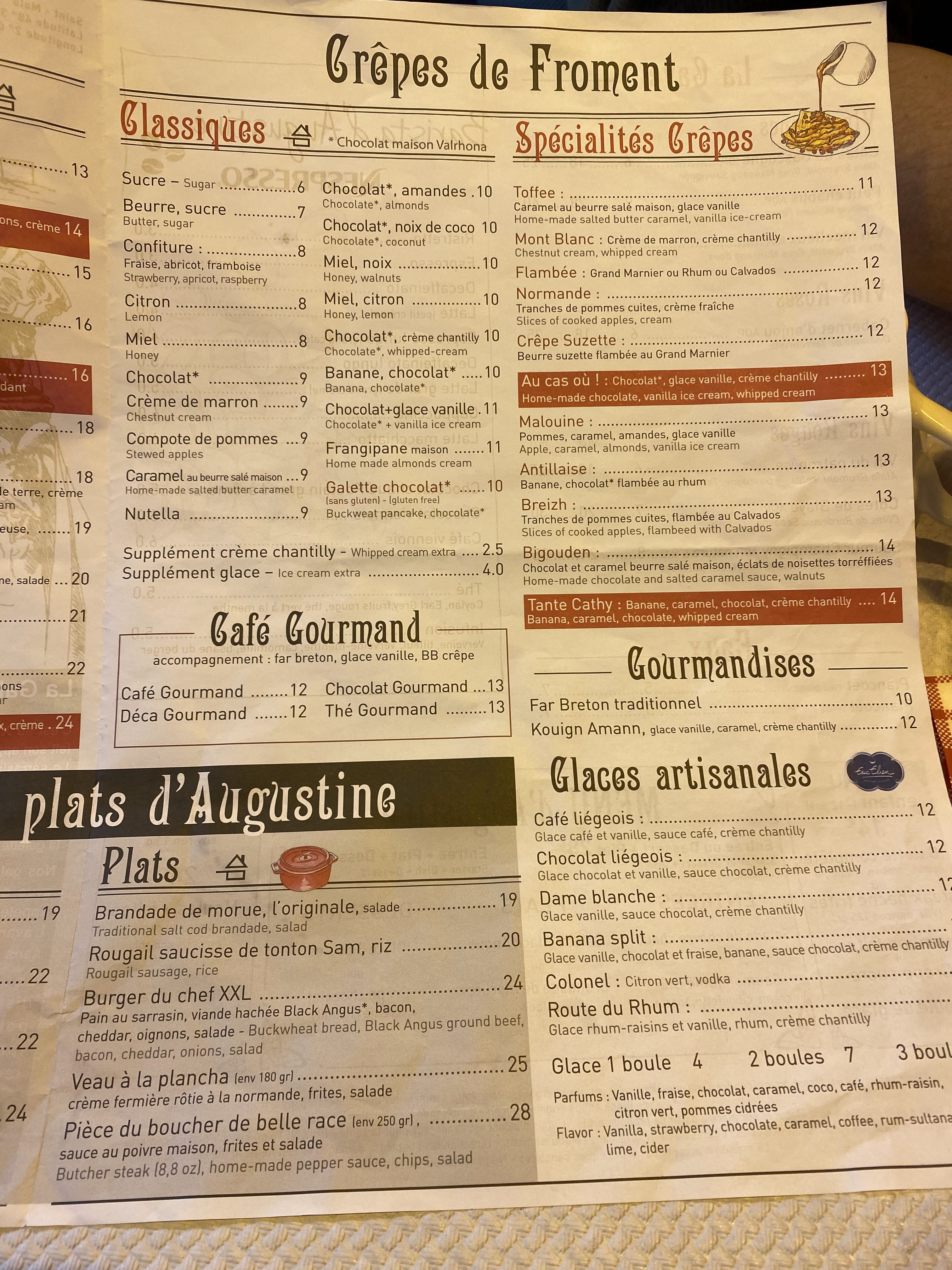 Dejeuner ce jour à la creperie grand mère Augustine à saint-malo. Galettes délicieuses,service rapide.