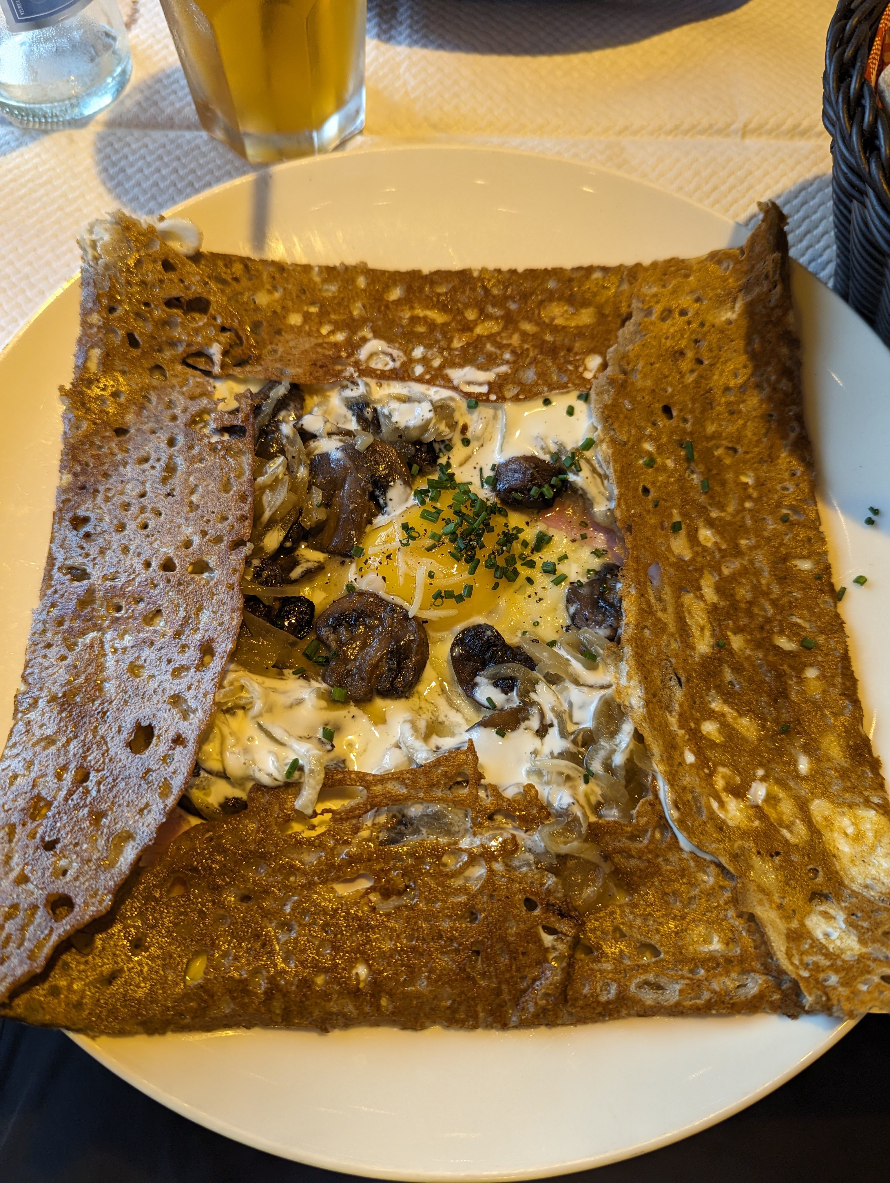 Les galettes sont bonnes mais prix très excessif qui nous a limité notre repas à 1 galette et une carafe d'eau. 36€ les 2 galettes une andouillette et poulet chorizo (Coca 6€ !! ... non merci)