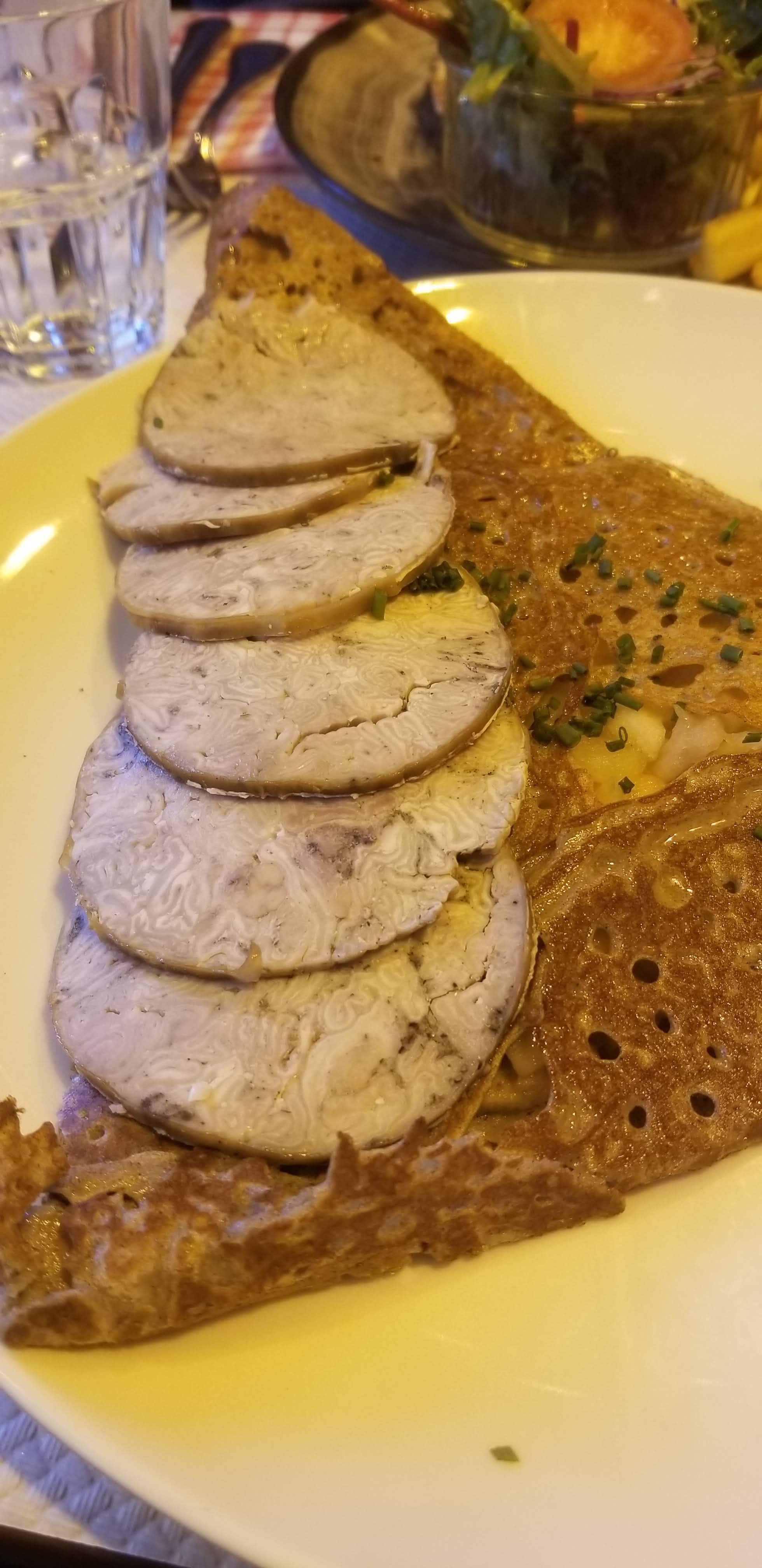 Étant nouveau en pays Malouin, J'ai voulu faire goûter des plats bretons à mes invités. Ils étaient tous ravis, mais pour ma part, ma galette était trop peu fournie et la saucisse était trop cuite (vraiment dure à manger) mais bon les autres types de galettes avaient l'air vraiment bien garnis et mes invités ont apprécié.