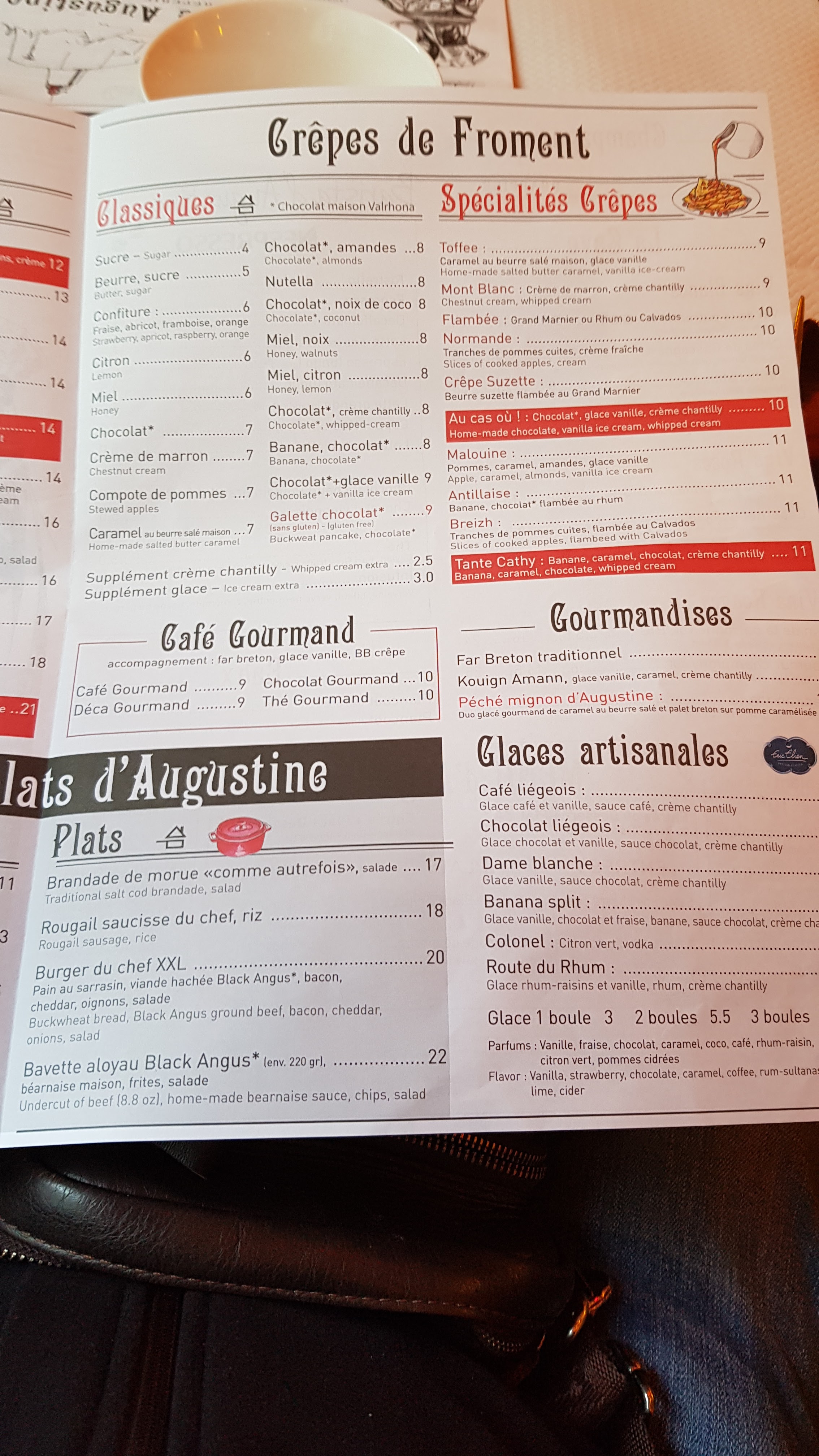 Nous avons été mangé dans la crêperie « la grand-mère de Augustine » à Saint-Malo. Nous avons été ravis ! Outre le tarif très abordables de 25 € pour un menu avec entrée et plat ou bien plat et dessert, la qualité est au rendez-vous la quantité également . je vous le conseille vivement ! l’accueil est chaleureux et le service rapide . Merci à toute l’équipe de ce restaurant crêperie!