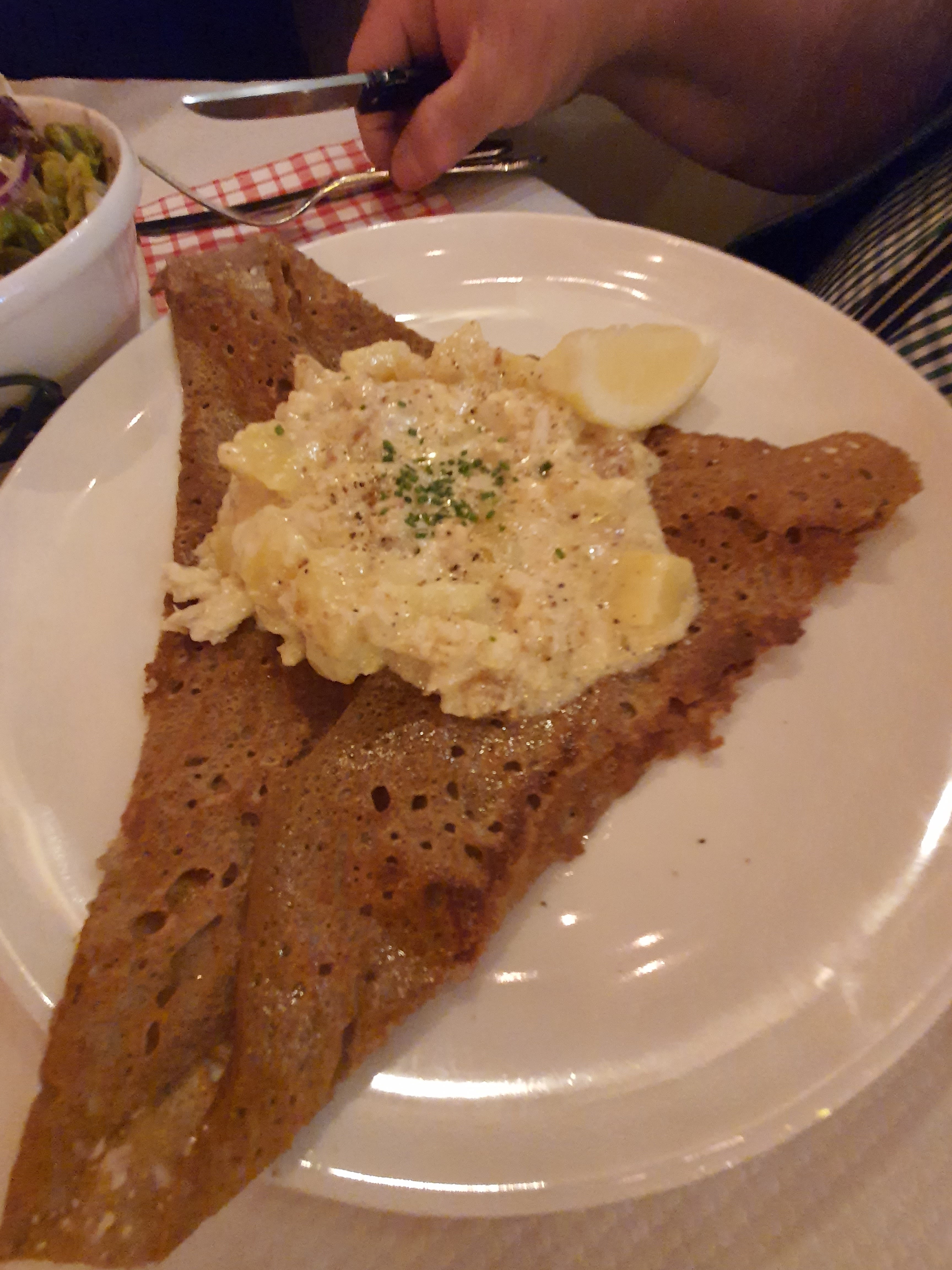 Nous avons été un peu refroidi par l'accueil. D'apport vivement refusé car nous arrivions vers 22h, puis finalement accepté. Incompréhension, mais la suite c'est très bien passé. Salade de chèvre chaud excellente, les galettes étaient bonnes et gourmandes.