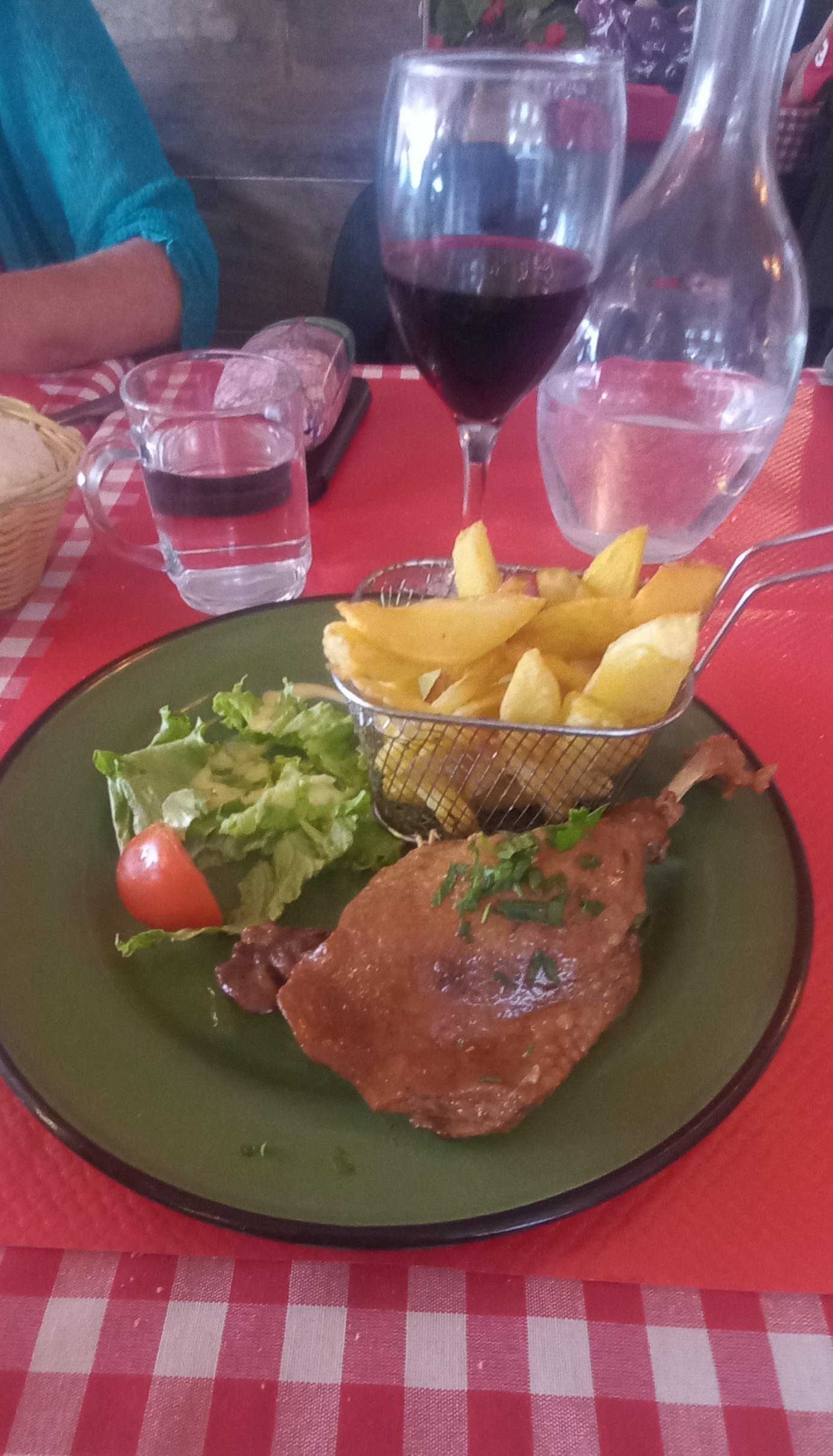 Bon accueil, L’apéritif est servi rapidement, presque aussi vite que l’entrée d’ailleurs… pas le temps d’apprécier le verre… Les entrées sont correct, mais le plat ne correspond pas à la carte, et les frites maison n’ont rien de maison… La cuisine traditionnelle française est dans toute son intégralité à la carte… un peu trop d’ailleurs. Ça marche pour les touristes étranger.