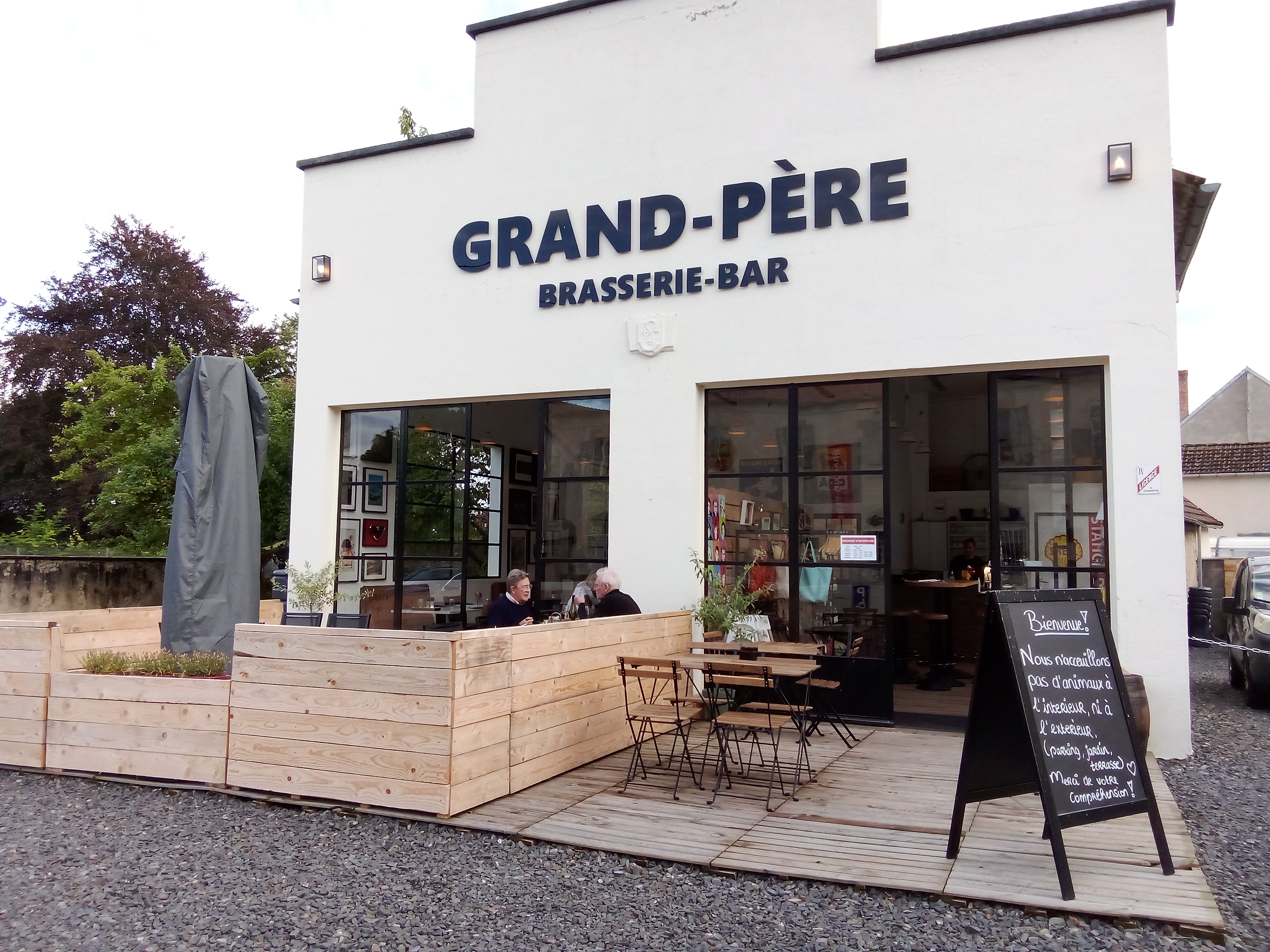 Accueil exceptionnel, les deux sœurs ont transformé cet ancien garage abandonné depuis deux décennies en un lieu sublime, style industriel en concernant l'esprit garage.... <> en hommage à leur papy amoureux de la France et de la nationale 7, elles ont réalisé leur rêve... Accueil au top, voisins, nous y reviendrons souvent ! Longue vie à la brasserie Grand-père !