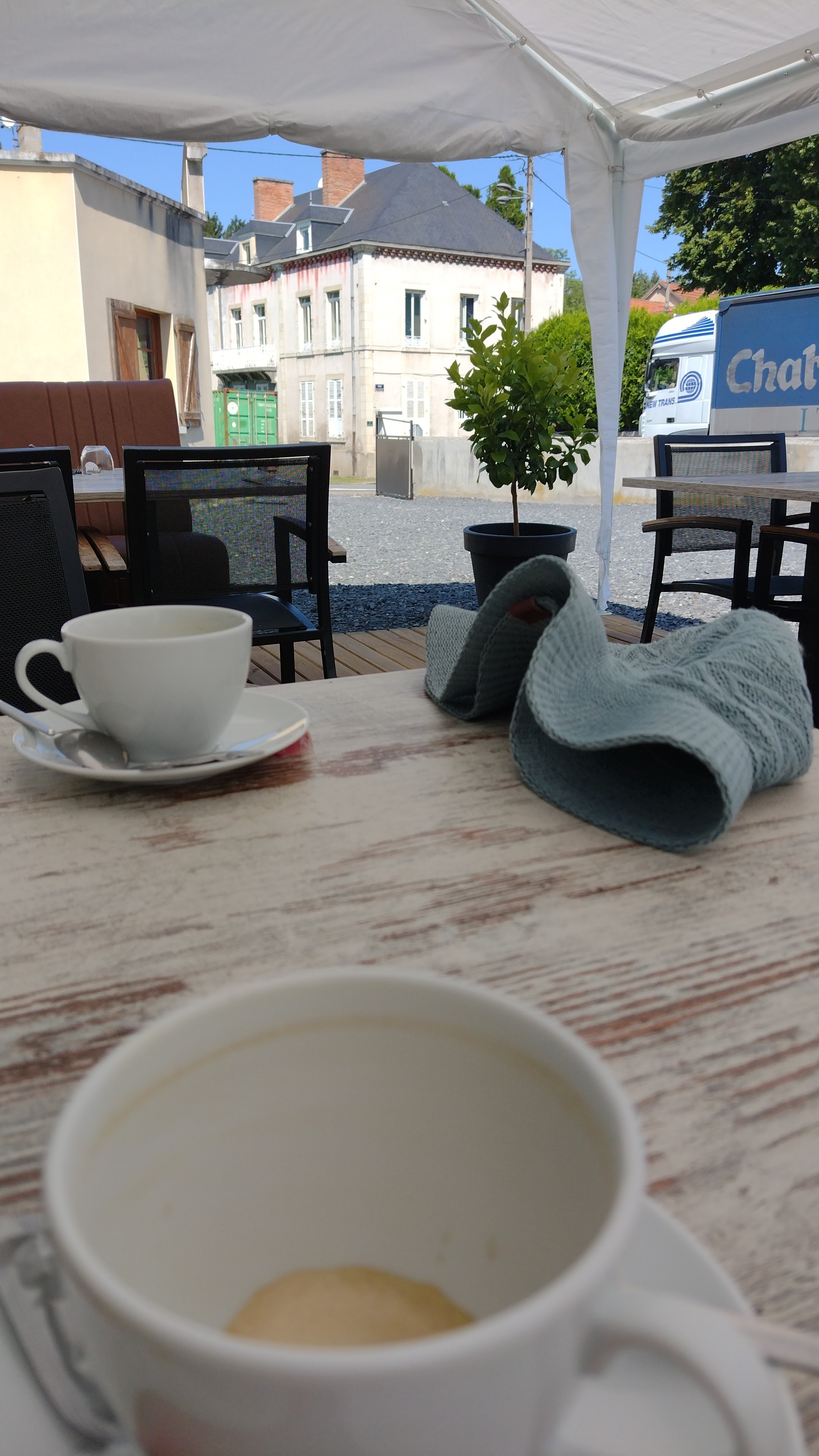 De passage dans la région, on s'est arrêté pour déjeuner. Brochettes de poulet mariné et burger maison. Délicieux ! Et je recommande fortement le café gourmand, cossu et élégant !