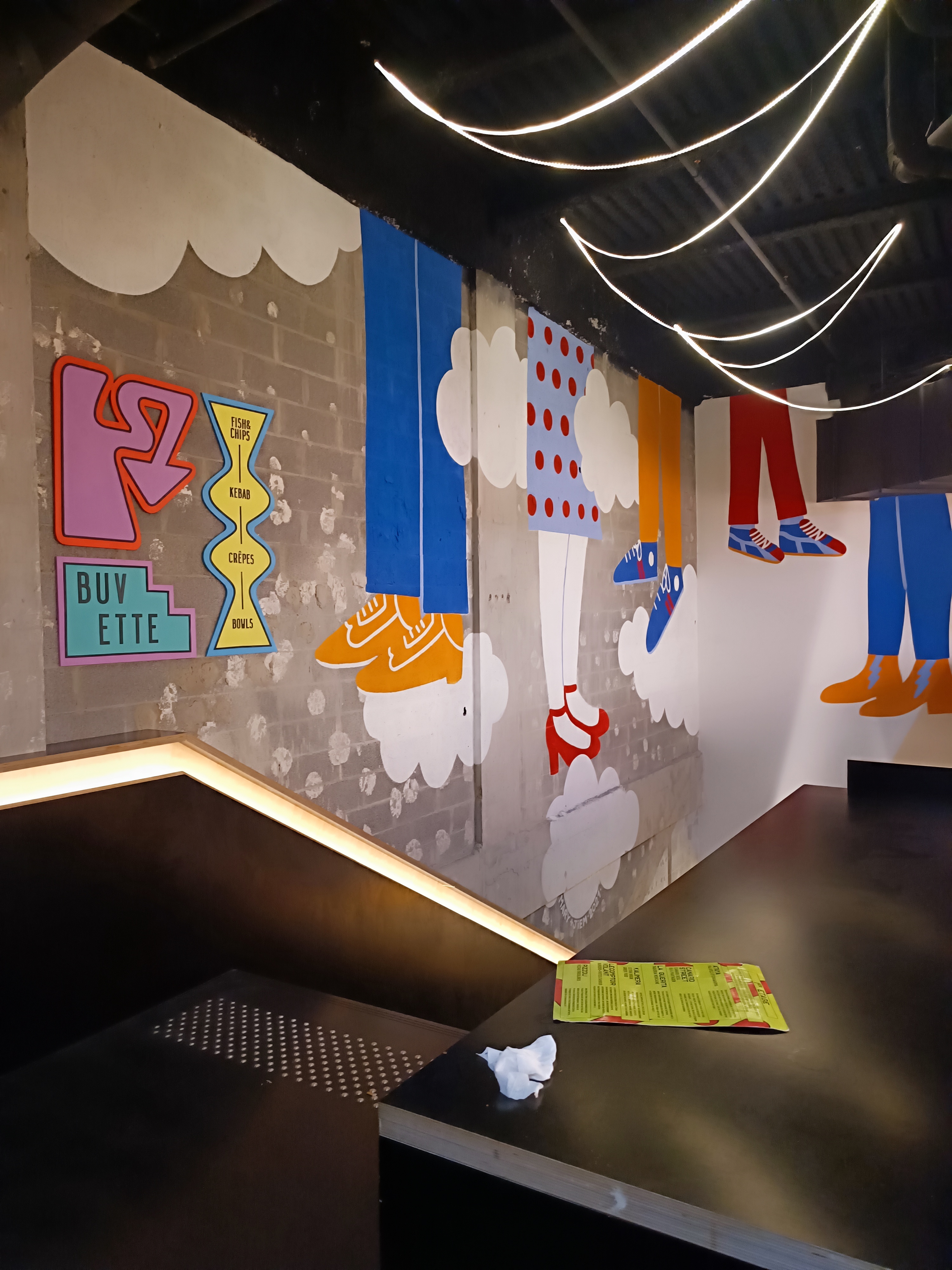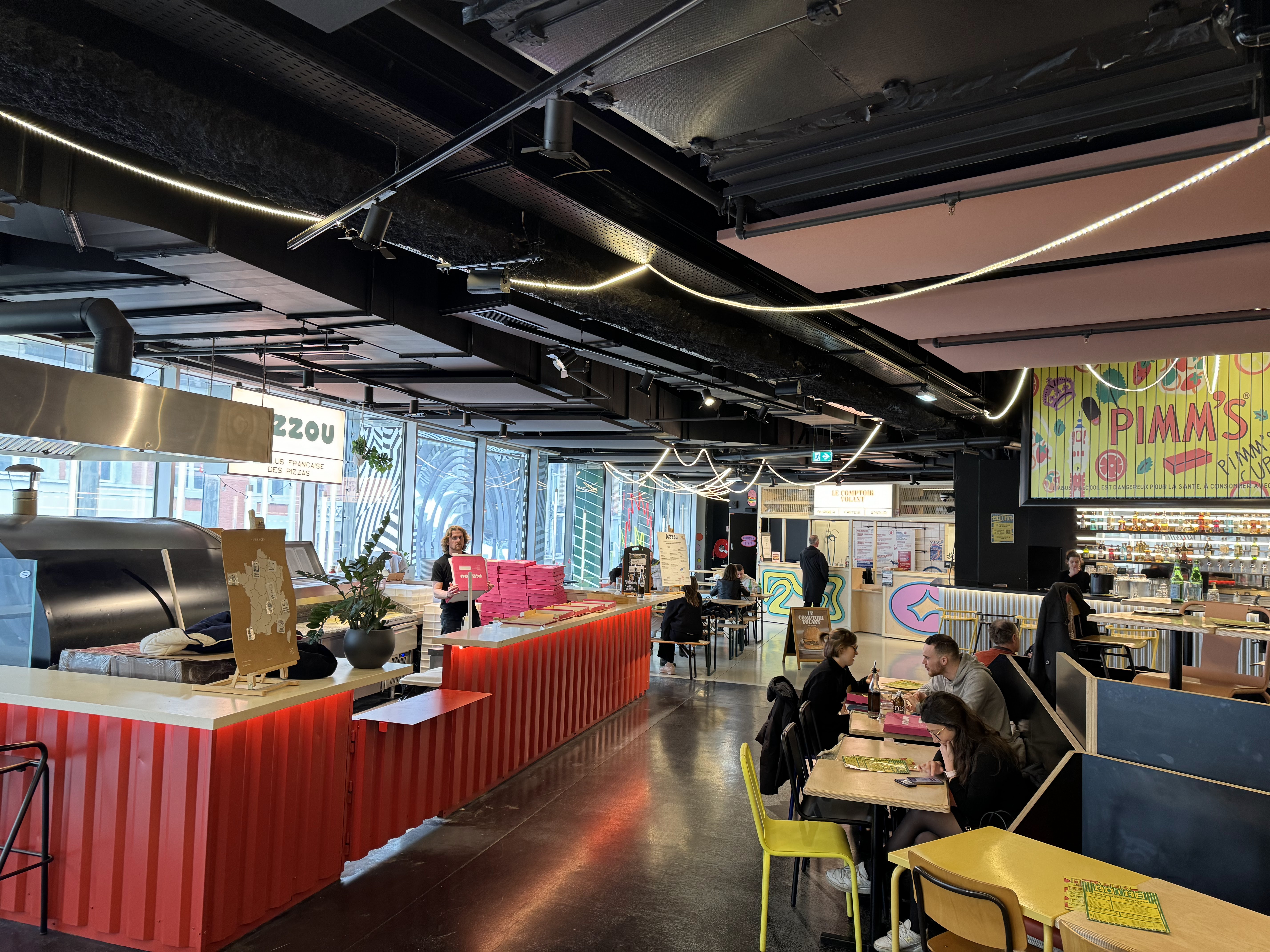 Superbe concept ! Un restaurant avec 10 restaurant à l'intérieur. Tu as ainsi tous type de restauration, du burger, des pizza, du kebab, ... Vraiment très sympa. Une ambiance très industriel chic est présente.