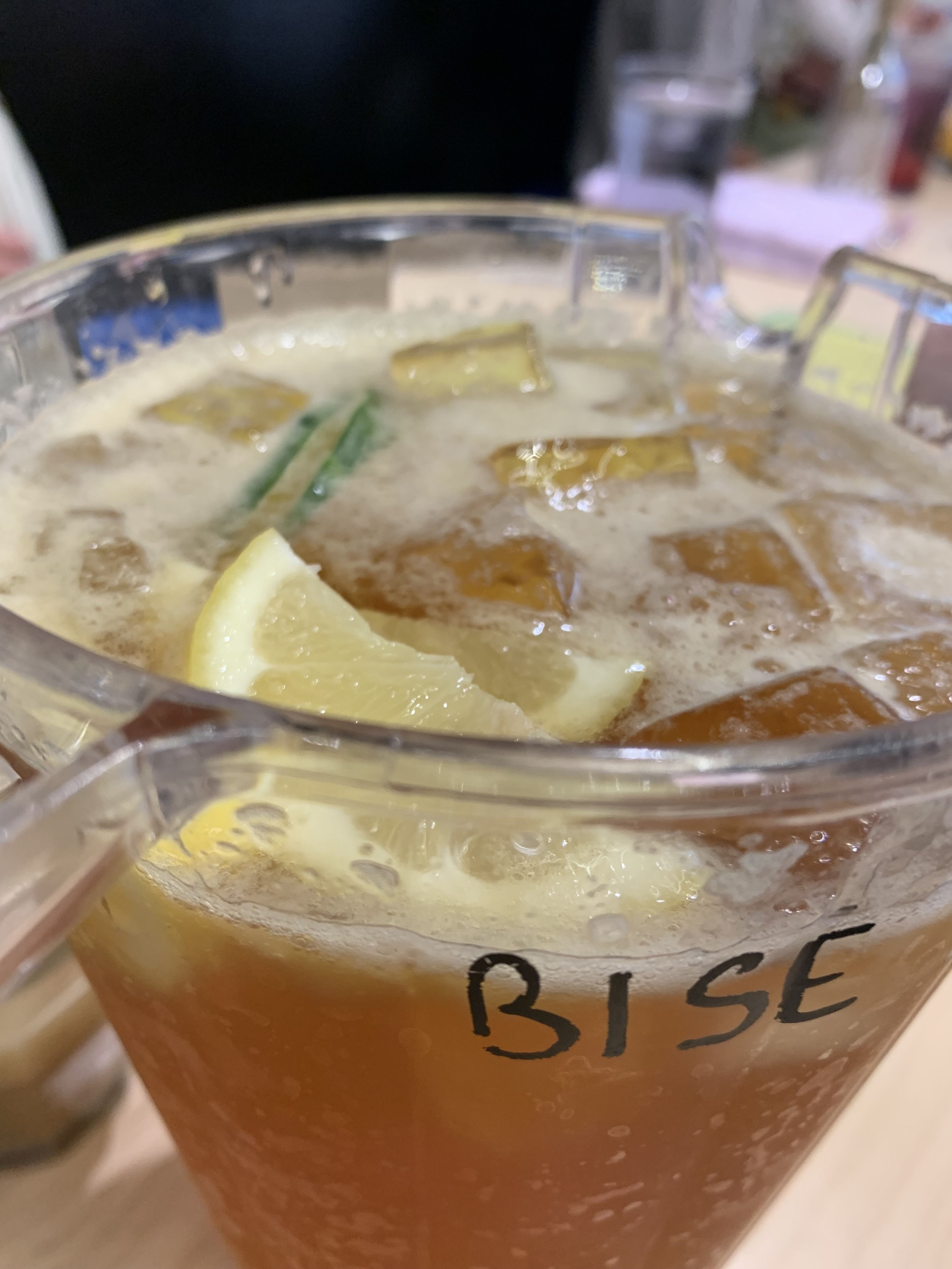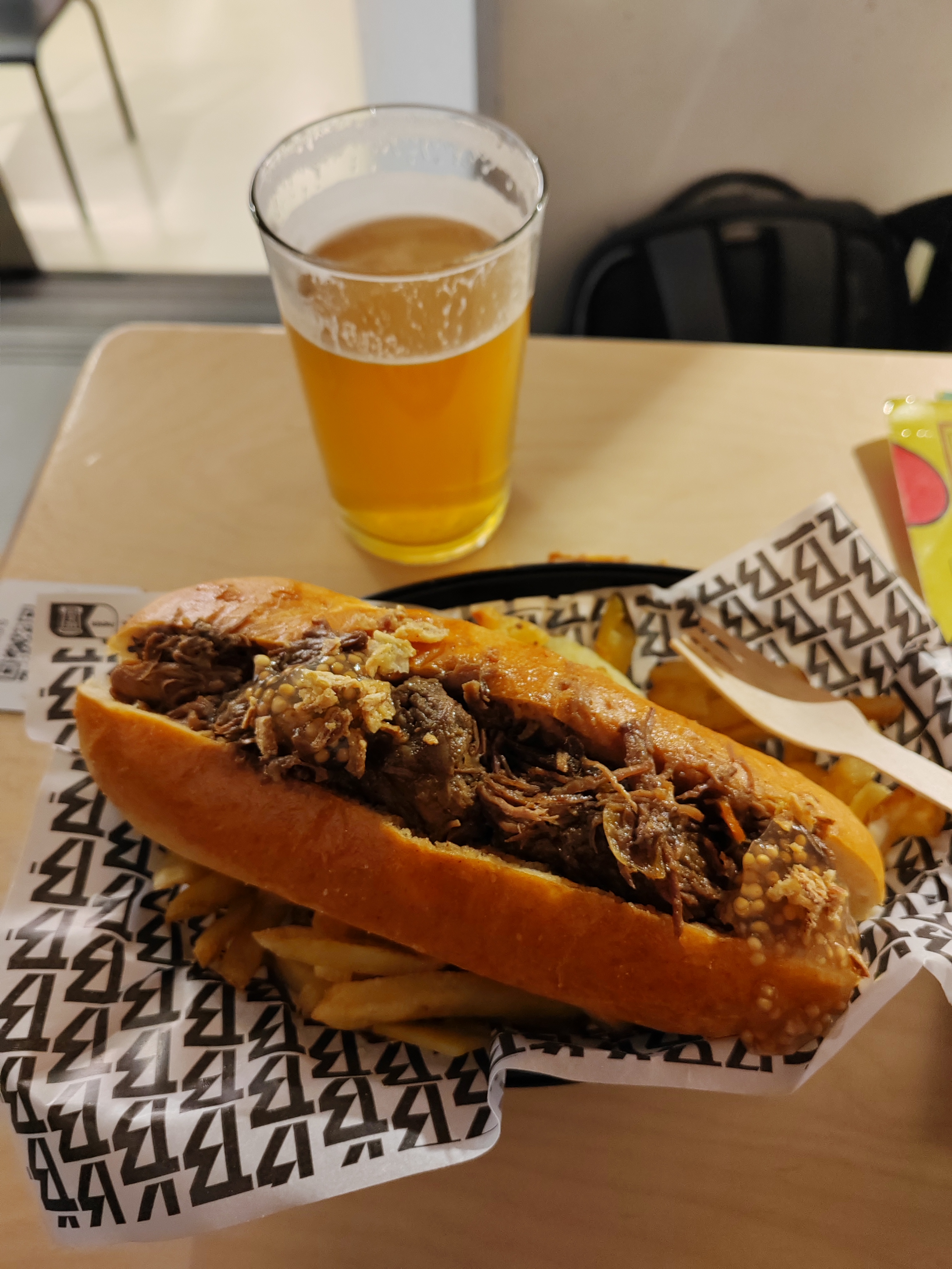 Superbe espace pour se prévoir un repas entre potes, notamment si chacun a des envies différentes. Nous avions mangé au stand Canard Street, accompagné de thés glacés commandés au bar.
