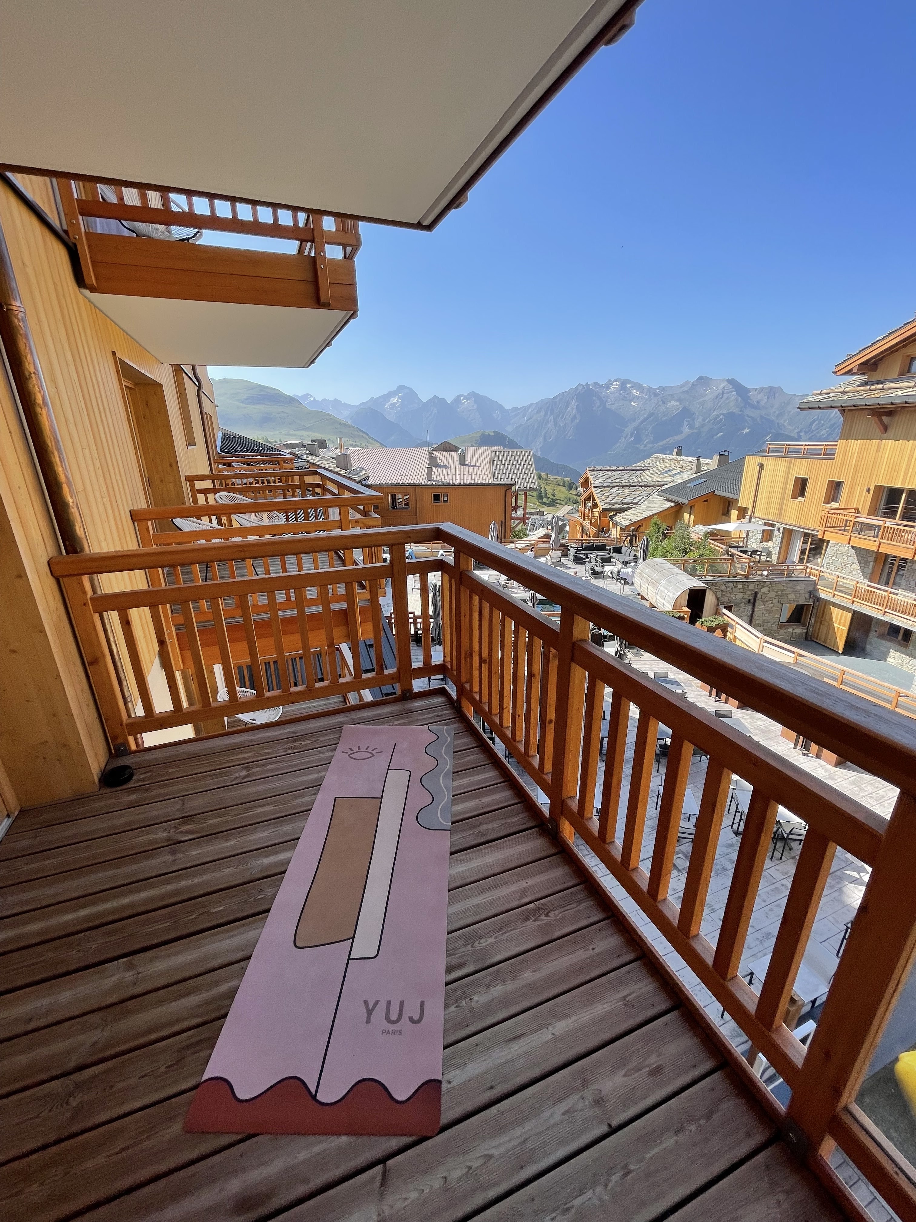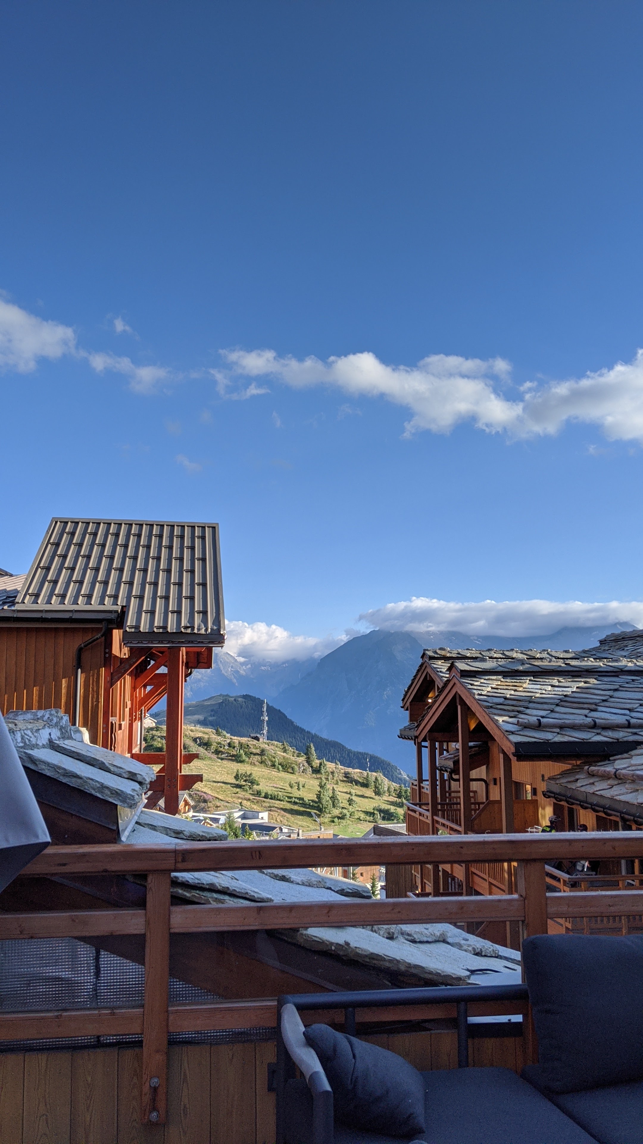 Belle terrasse pour prendre un café ☕ avec vue sur la station, de quoi prendre un bon départ pour les pistes de ski 🎿