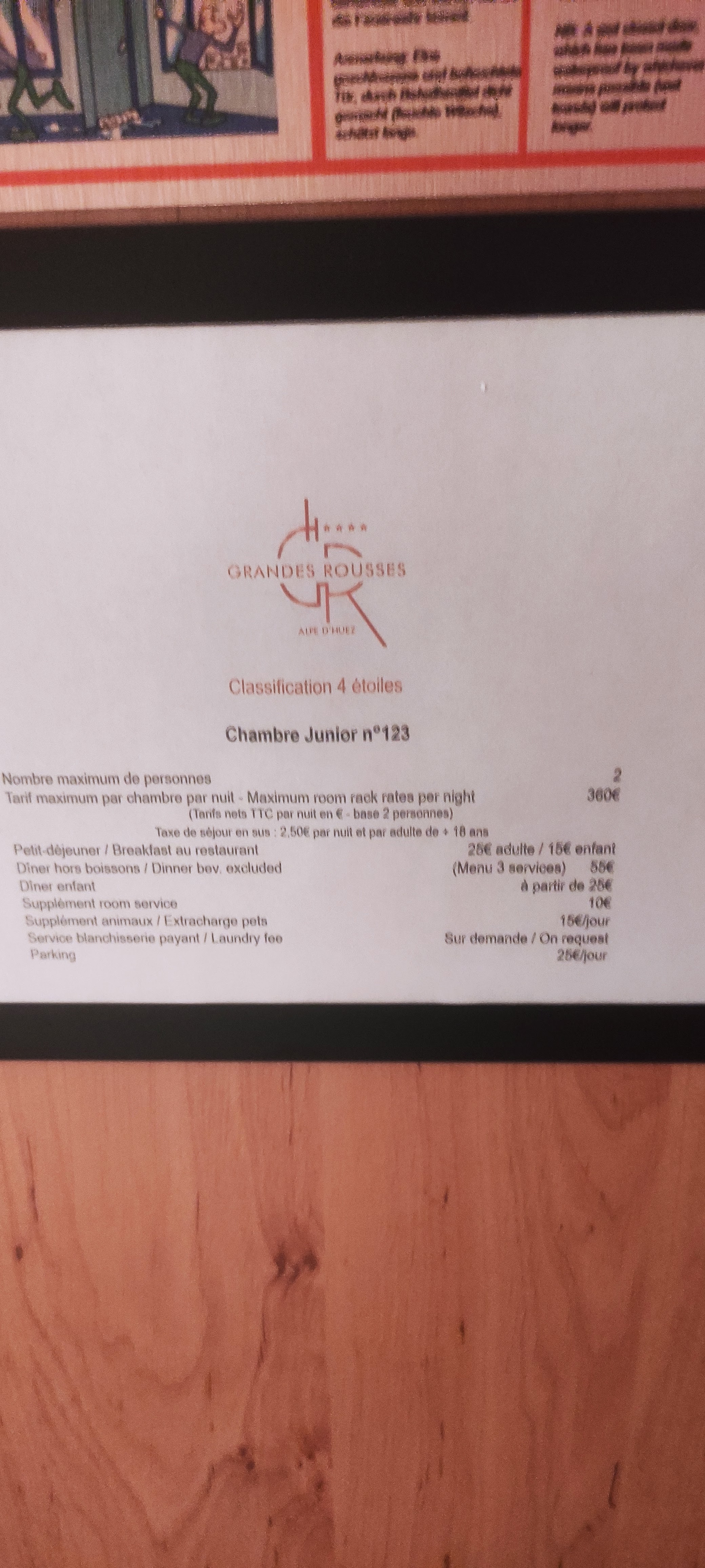 Bonne expérience. Nous avons été dans une chambre panoramique sur la partie ancienne de l'hôtel. Bien entretenue et literie confortable. Très belle vue sur la vallée. Spa accessible gratuitement le matin. Piscine extérieure chauffée très agréable. Petit déjeuner complet et copieux. Personnel au petit soin. Malheureusement nous avons eu une déconvenue avec la réservation sur Google. Alors que le petit déjeuner était indiqué comme compris, nous avons dû le rajouter en supplément ! L'hôtel semblait visiblement au courant, puisque de l'aveu du réceptionniste l'erreur à été corrigé dès qu'ils s'en sont aperçu. Nous n'avons cependant eu aucune geste commercial... Dommage sinon notre séjour aurait été parfait !