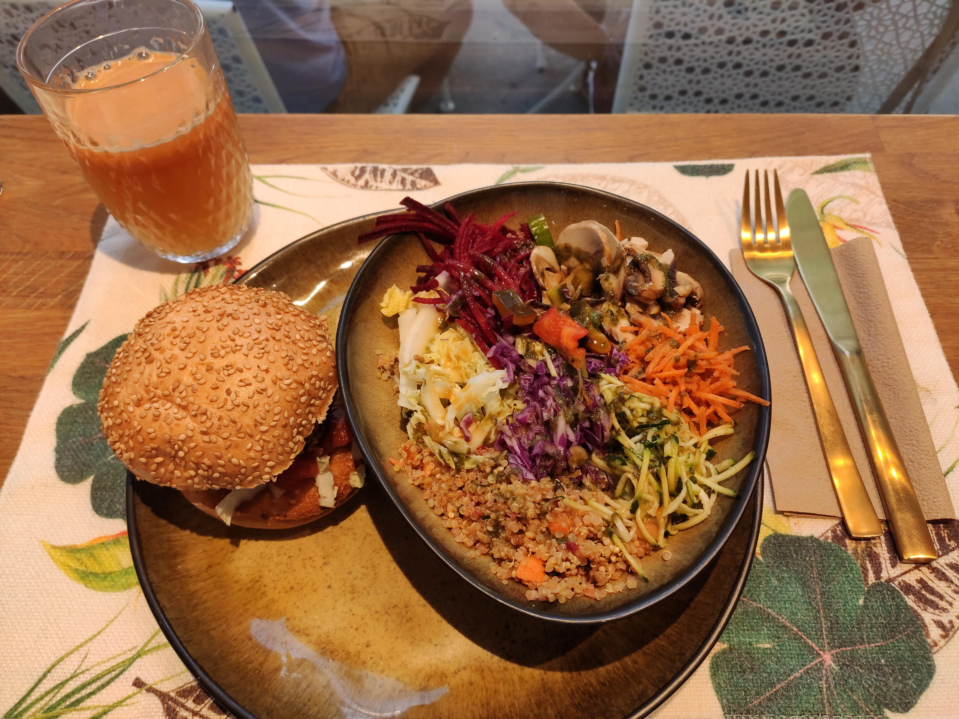 Très belle découverte, le personnel est agréable et travaille avec des produits frais. Le burger vegan était excellent et leurs jus sont goûteux. Je recommande vivement cet endroit et vous conseille par la même occasion de réserver car l'endroit est assez bien prisé.
