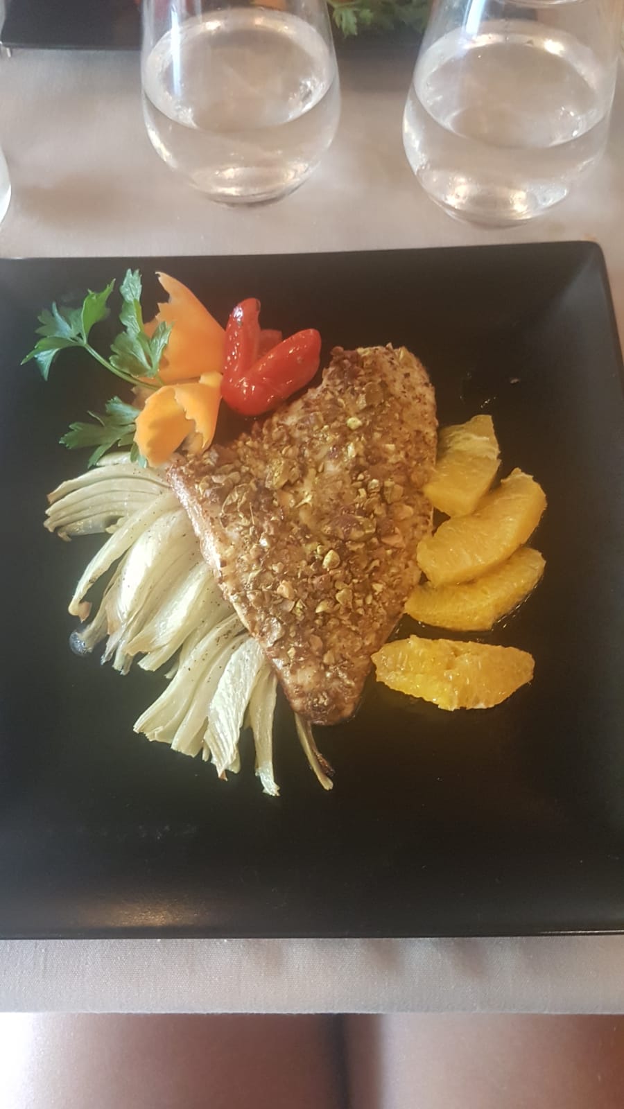 Au menu de notre soirée Dorade en croute de pistache avec fenouil et filet de bœuf foie gras et sa confiture de figue, en dessert tarte fraise maison et sa glace aux basilics et un profiteroles. C'était délicieux et copieux, certains restaurants réputé de la capitale pourraient en prendre de la graine aussi bien culinairement qu'au niveau du service. Ambiance très sympathique en face de la Mairie, avec possibilité de diner en terasse. A faire absolument si vous êtes de passage à Bastia.