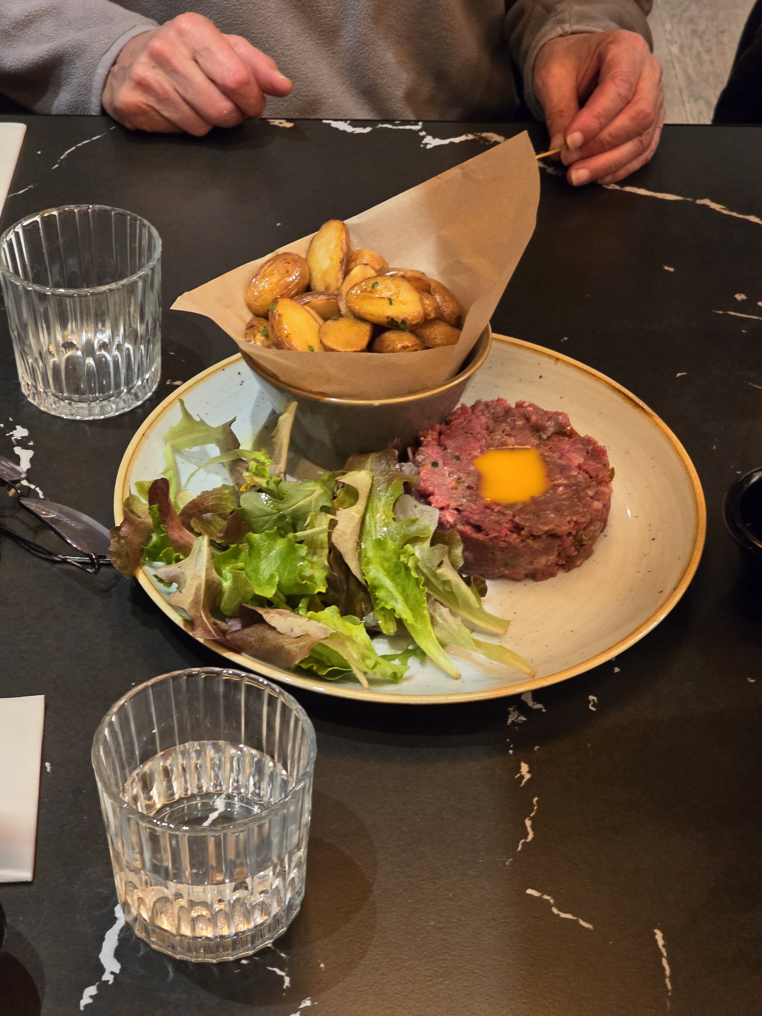Bien, mais.... Bel établissement, bien placé, belle déco. Accueil et service jeune mais qui manque de convivialité. Les tables de 2 c'est au milieu d'office.... Le côté vitre étant réservé pour les tables de 4. Carte bien faite, les plats sont bons et bien servis mais manque de chaleur. Dessert Semifreddo noisettes excellent. Tarifs sur une fourchette haute.