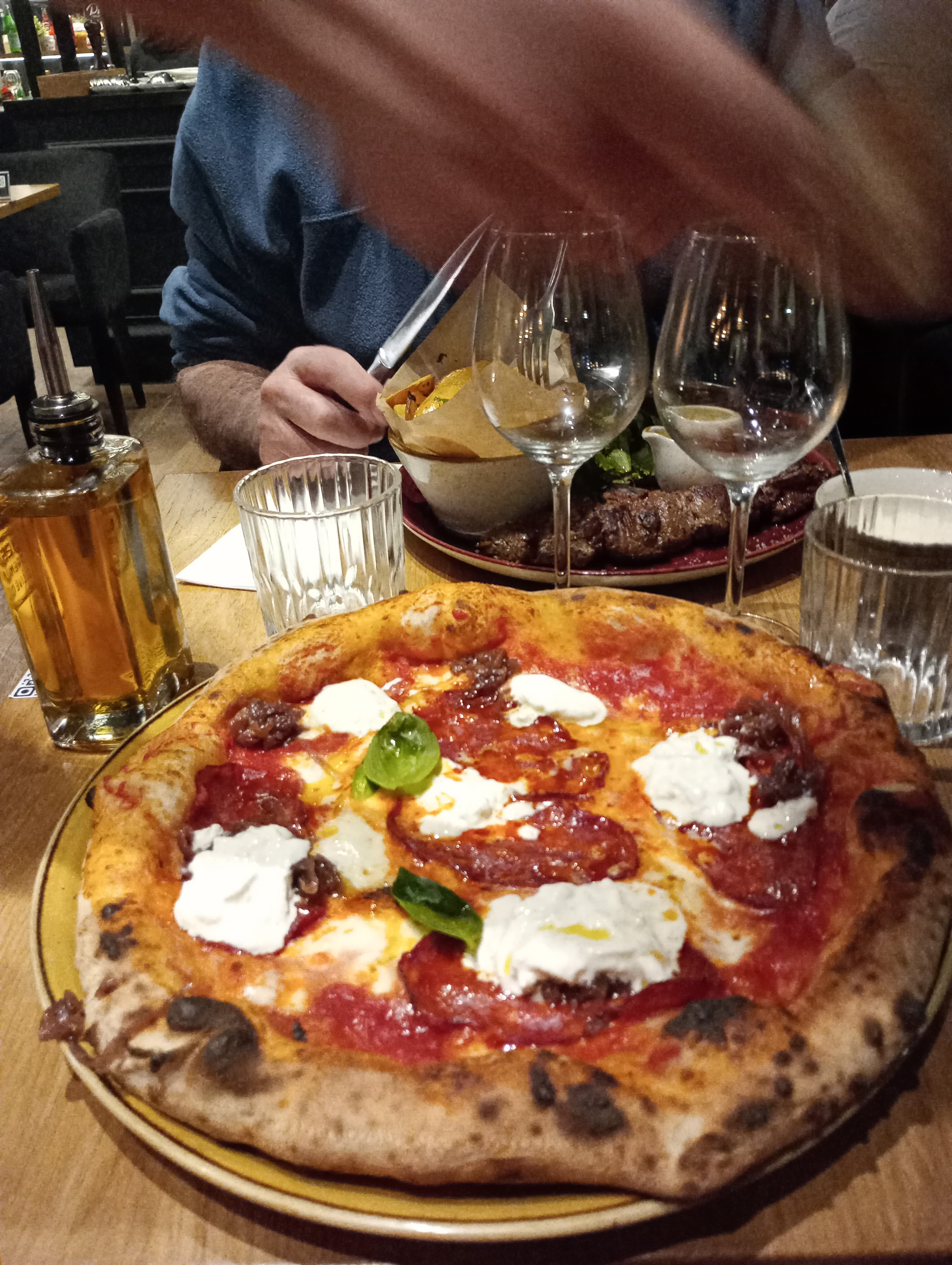 Impressionné par cette pizzeria ! Je me serai presque cru dans ma pizzeria préférée à Paris. Les pizzas sont généreuses et composées avec de très bon produit, le service est impeccable. Tout est parfait. Après, il me manquait juste une petite touche d'intimité dans ce grand resto