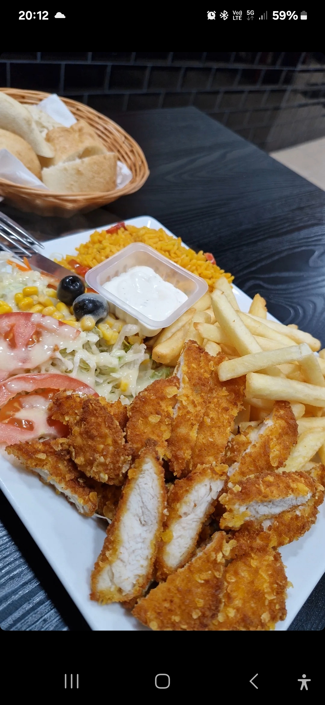 J'ai testé le poulet il est extrêmement bon le plat poulets avec compagnie de des frites et du riz la personnelle est vraiment très très gentil je recommande fortement