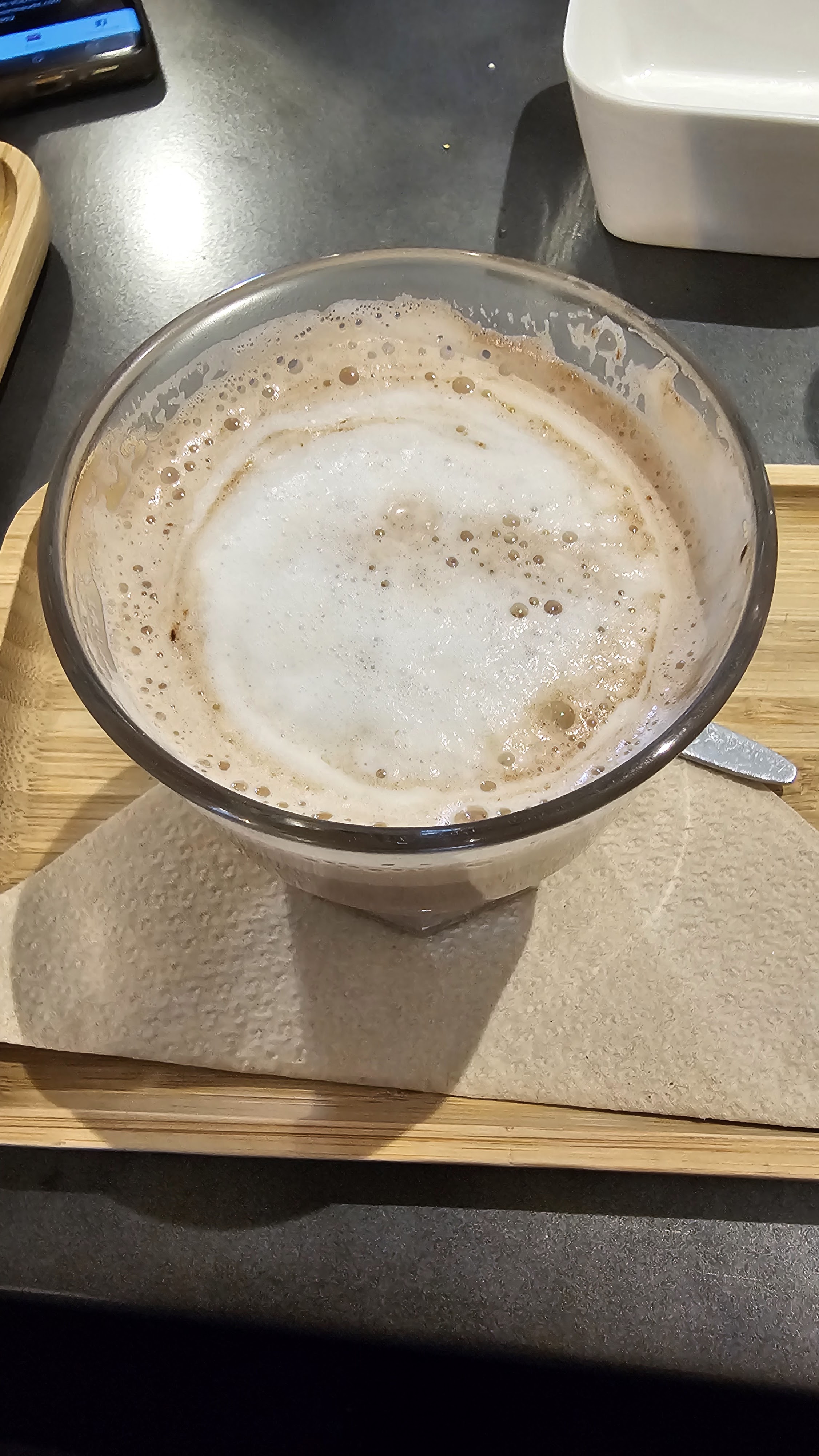 Très bon service, bon café et plats de qualité mais ça reste assez honteusement très cher pour du café (3 euros l'Americano...) De plus servir du café chaud dans un verre et non une tasse n'est pas très judicieux. Bonne adresse quand même 👍