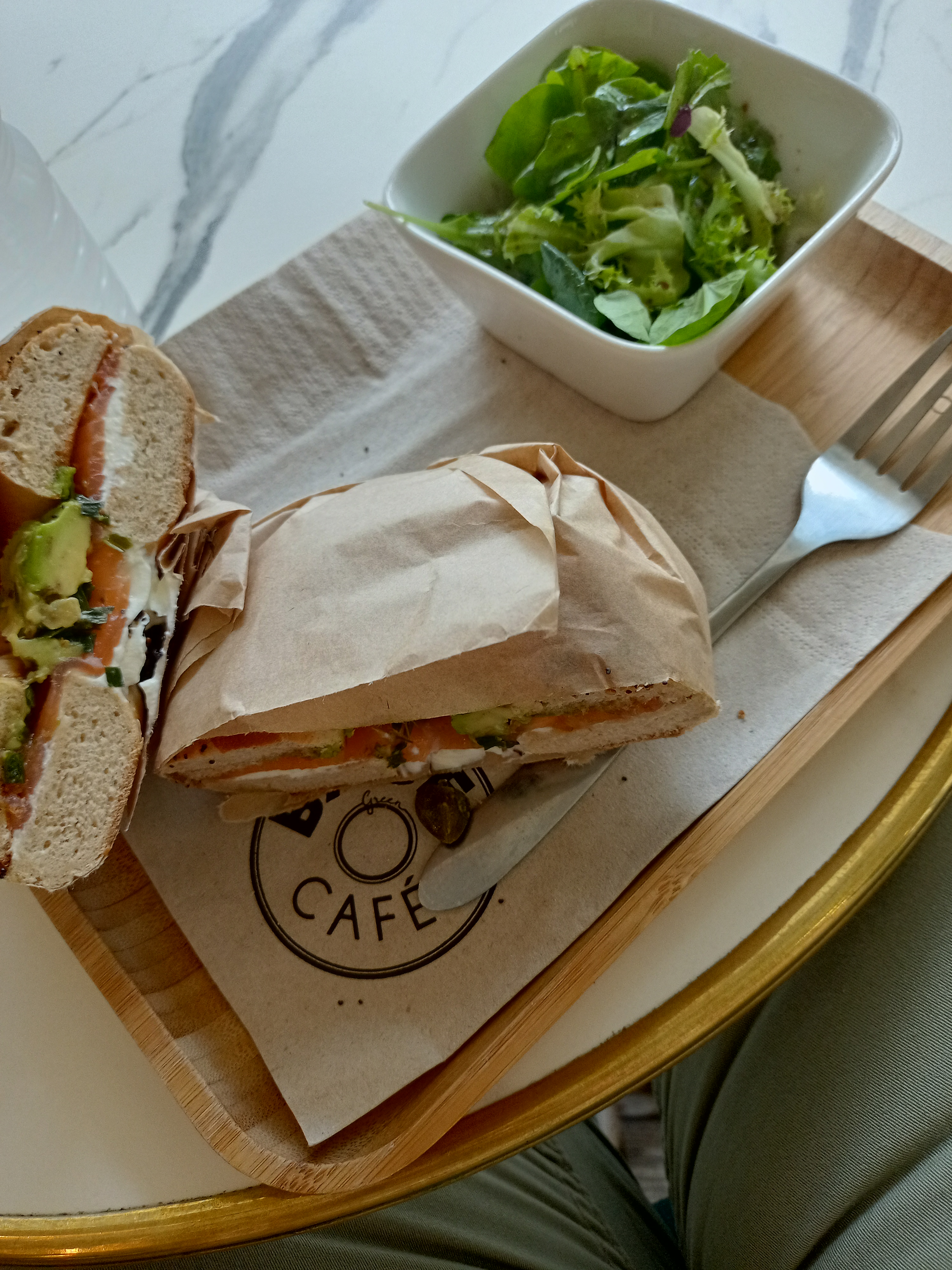Je me suis régalée avec un bagel au saumon! Accompagné d'une petite salade (choix proposé)