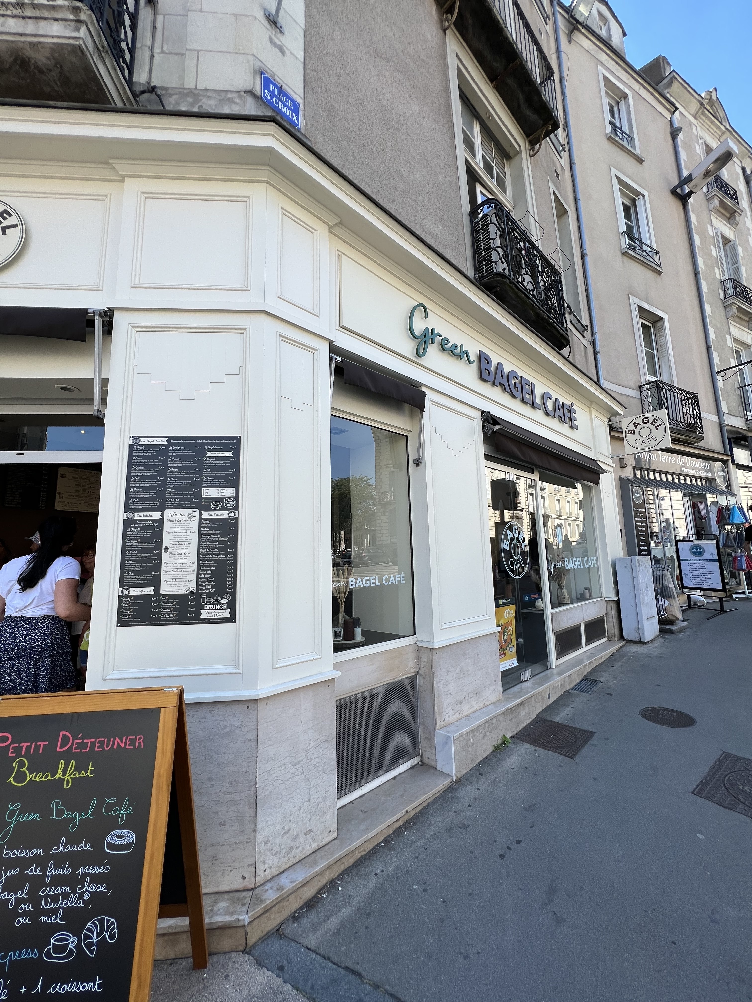 Nous sommes venus pour visiter Angers tout la journée nous visitons la ville nous cherchons quelques choses pour nous manger nous somme tombée sur Green Bagel Café. L'accueil du personnel est chaleureux comme le restaurant que dire sur la nourriture c'était délicieux 😋 j'ai pris un jus d'orange pour ma filleule elle adorée c'était pressé fait maison L'endroit est propres et bien situé au cœur de la ville je vous conseille d'aller à ce restaurant.