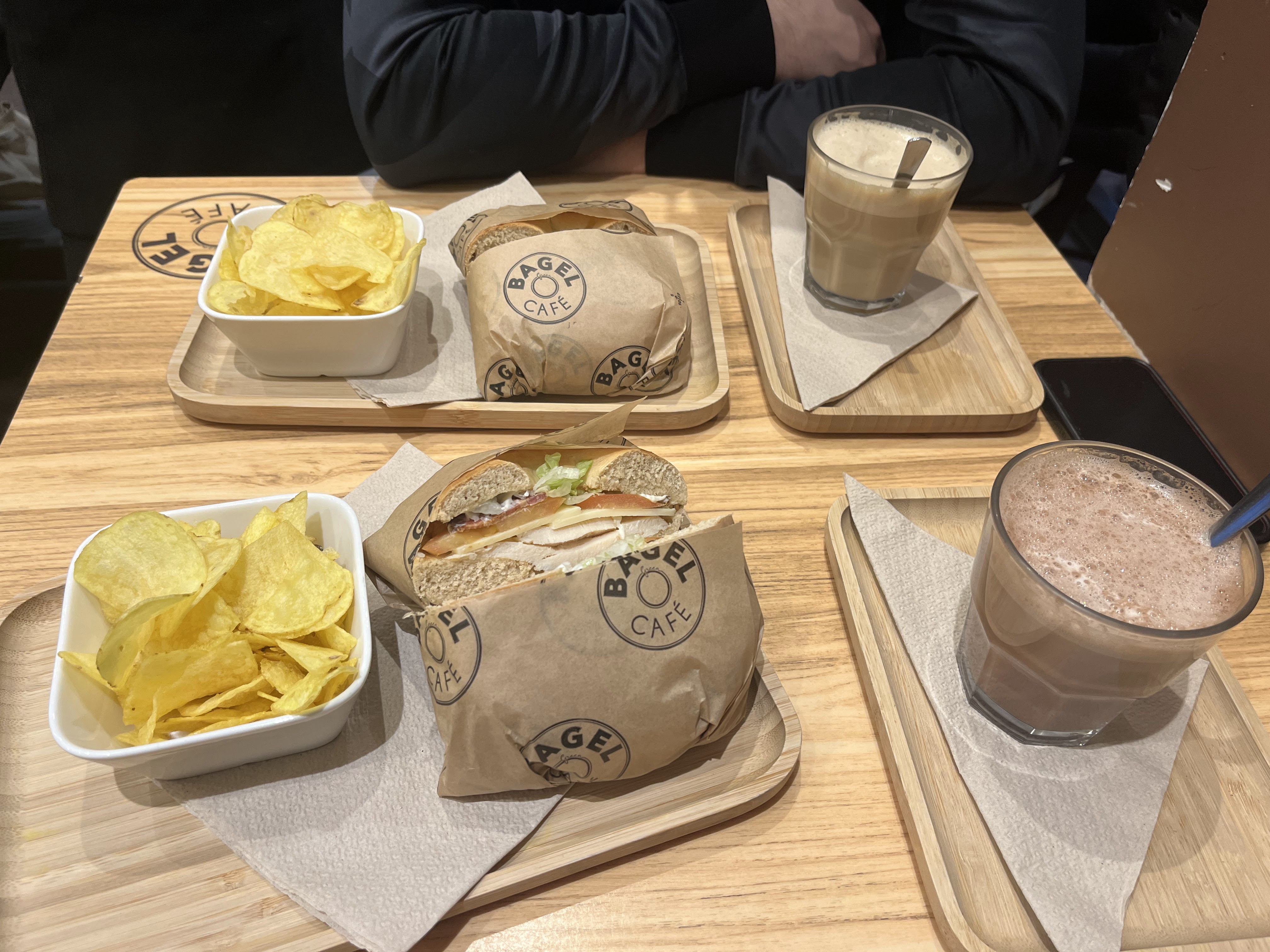 Appart que le lieu est bruyant quand il y a du monde étant donné que les tables sont très rapprochés. Boisson chaudes il y en a une quantité énorme comparer à d'autre, leurs bagels sont à tomber par terre et en plus ils calent plutôt bien pour des petites faims et les prix son plutôt raisonnable