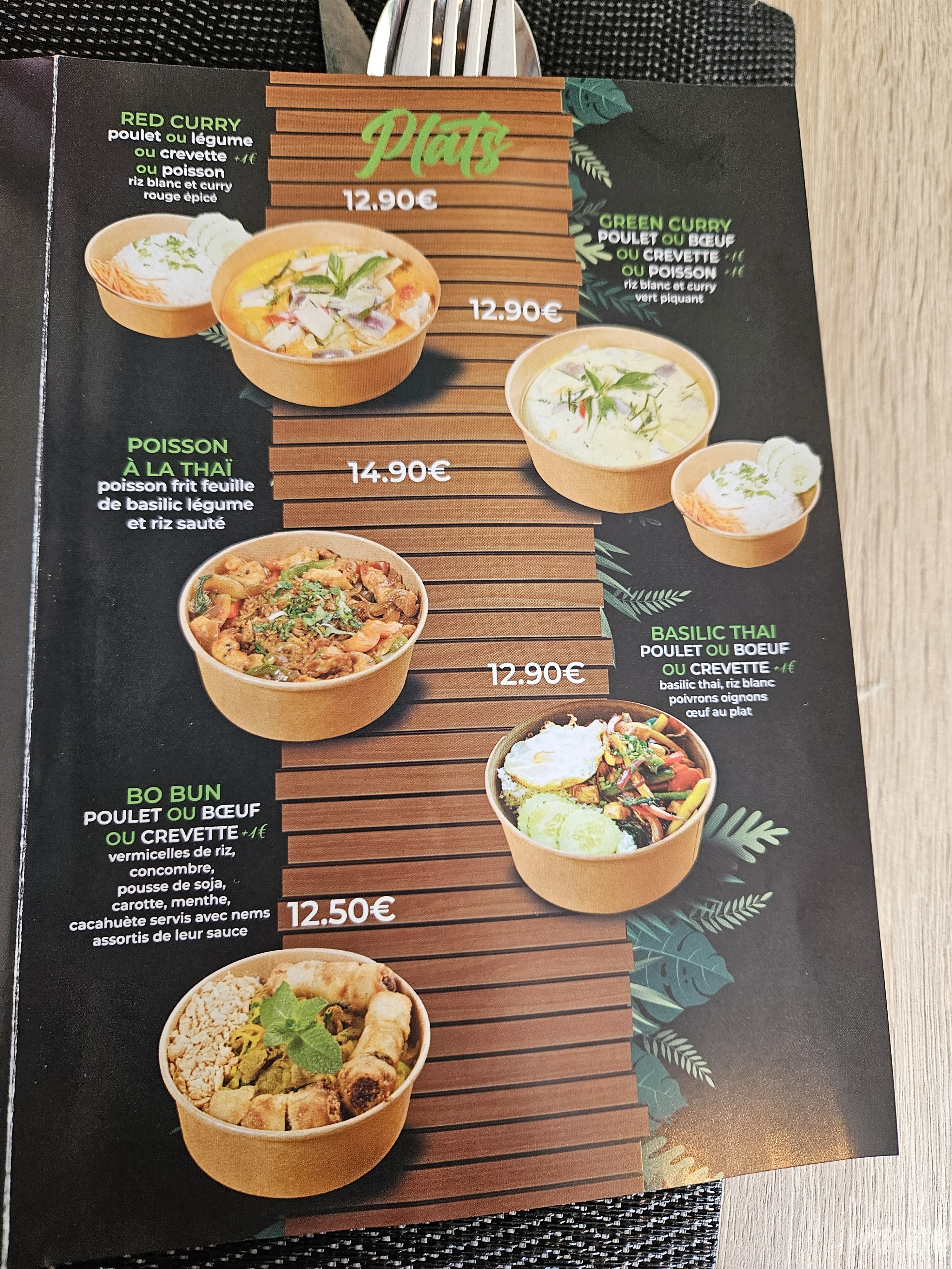 Bonjour, Je suis désolée mais je me permets de laisser un avis car j’ai été assez déçu. J’ai l’habitude de manger thaïlandais et je peux vous dire que cela n’a pas grand chose à voir à voir avec un thaïlandais. Il n’y a pas de goût dans l’assaisonnement, les crevettes sont de qualité médiocre, les pâtes sont pâteuses pour le coût 😕 et la papaye dans la salade papaye inexistante (lorsque nous avons demandé on nous a indiqué qu’elle était râpé avec les carottes ? ... et tout ceci dans un bol en carton pour un prix que je trouve très élevé compte tenu du service. L’accueil était positif mais on ne paye pas Uniquement le service mais la qualité des aliments et la cuisine du chef. Je le classerais plutôt en fast-food.