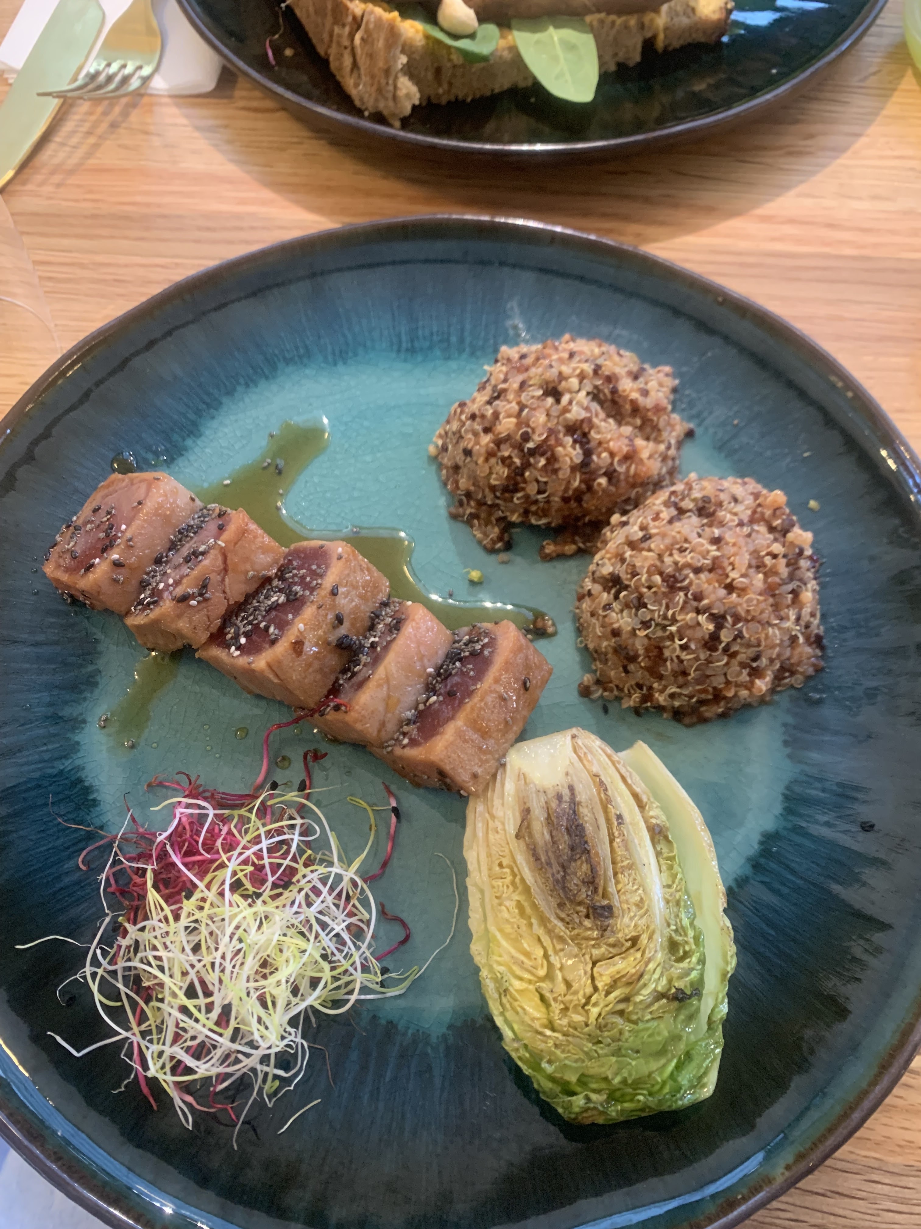 Excellents plats, légers, healthy mais aussi savoureux, servis avec un grand sourire et beaucoup de savoir faire par une équipe qui donne la pêche ! Le tout à un prix tout à fait raisonnable et dans un cadre très beau. On recommande, vous pouvez y aller les yeux fermés