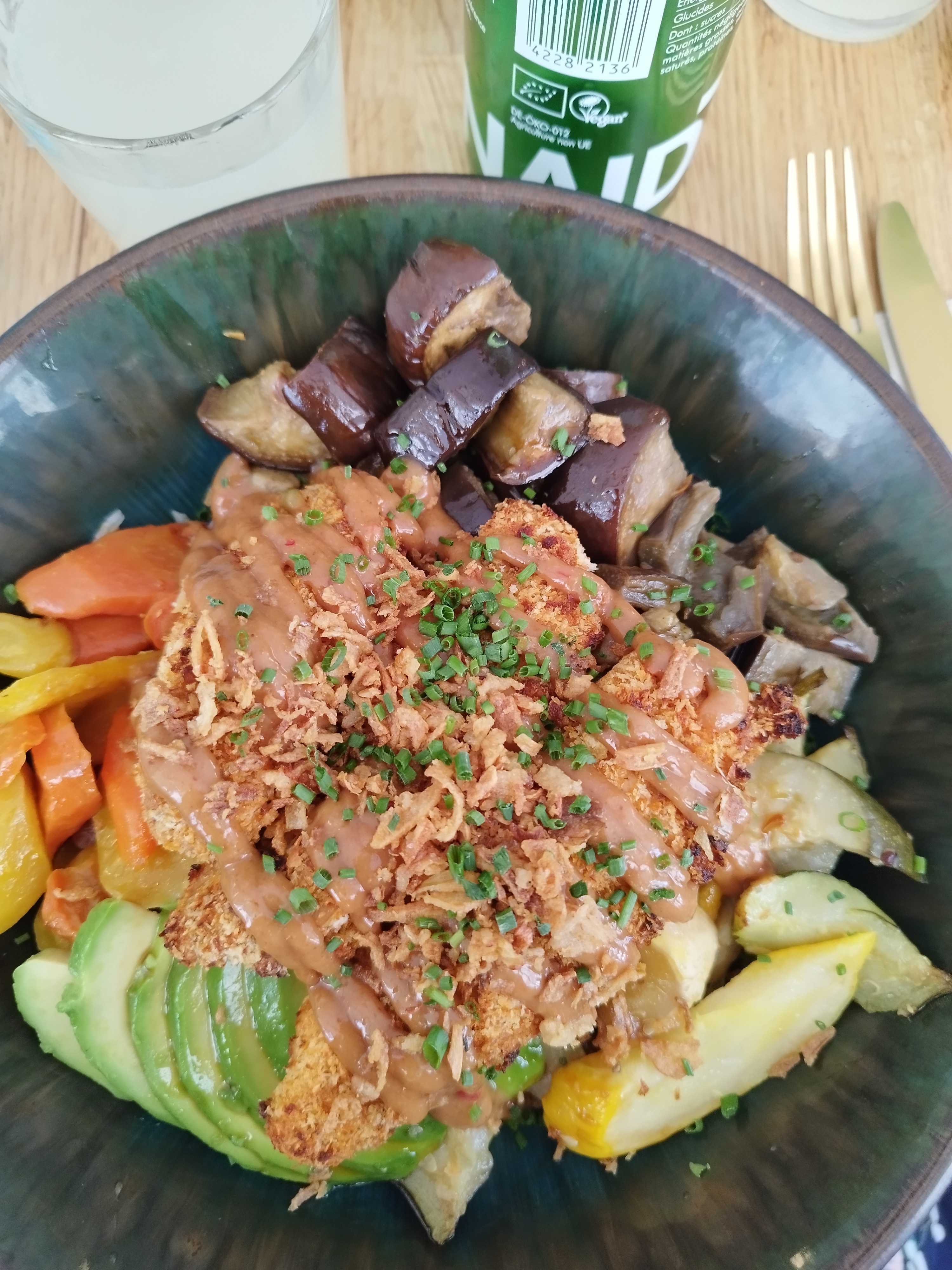 Très satisfaite! Le service était au top et la nourriture excellente! J'ai testé le jus pressé Equilibre et le bowl chicken satay, un régal (surtout la sauce miel au beurre de cacahuète)!