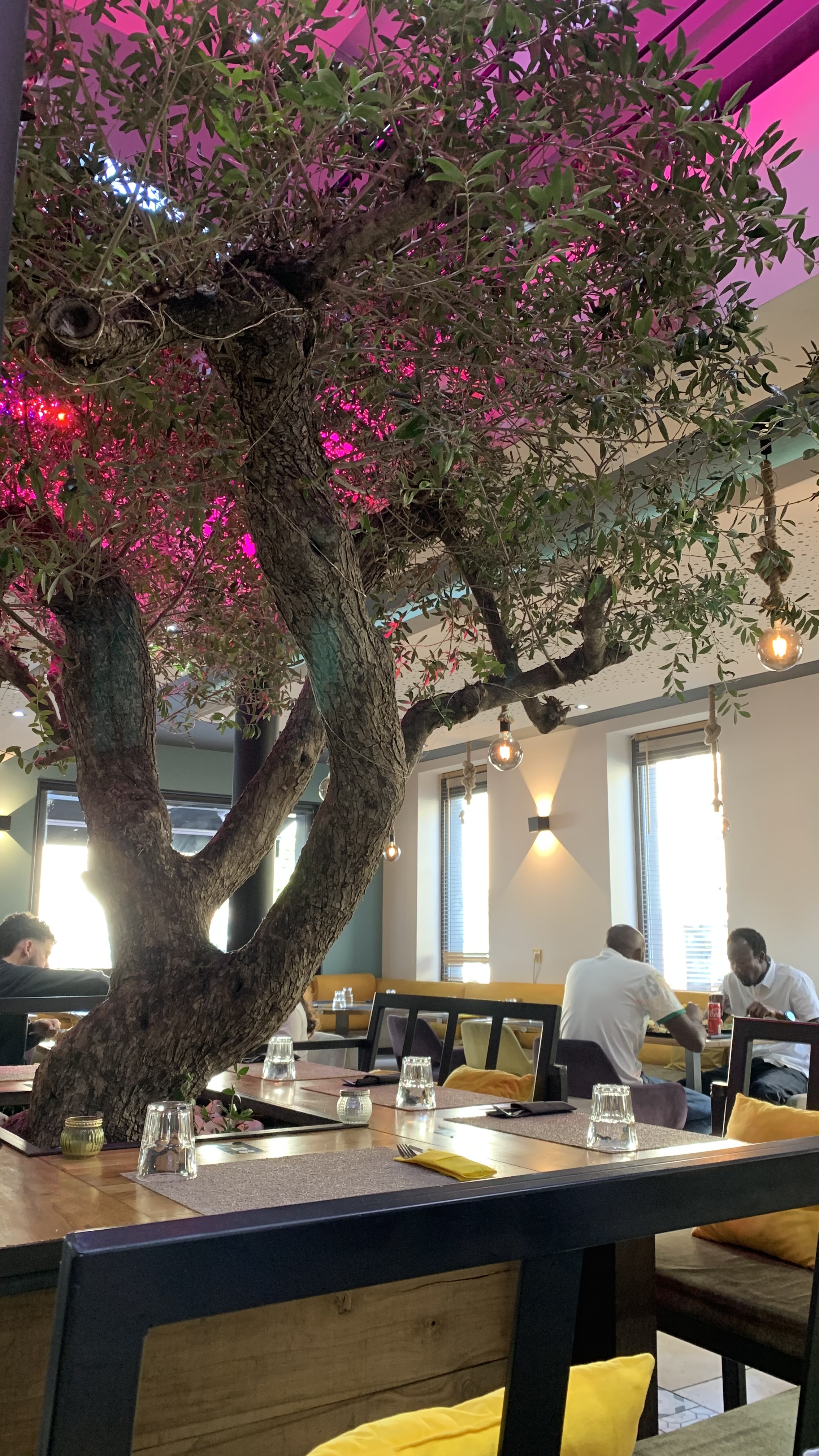 Le lieu est beau , l'olivier au milieu de la salle donne un cadre super. Ça sent très bon et met en appétit. Et finalement la nourriture y est excellente ! Rapport qualité prix top top .