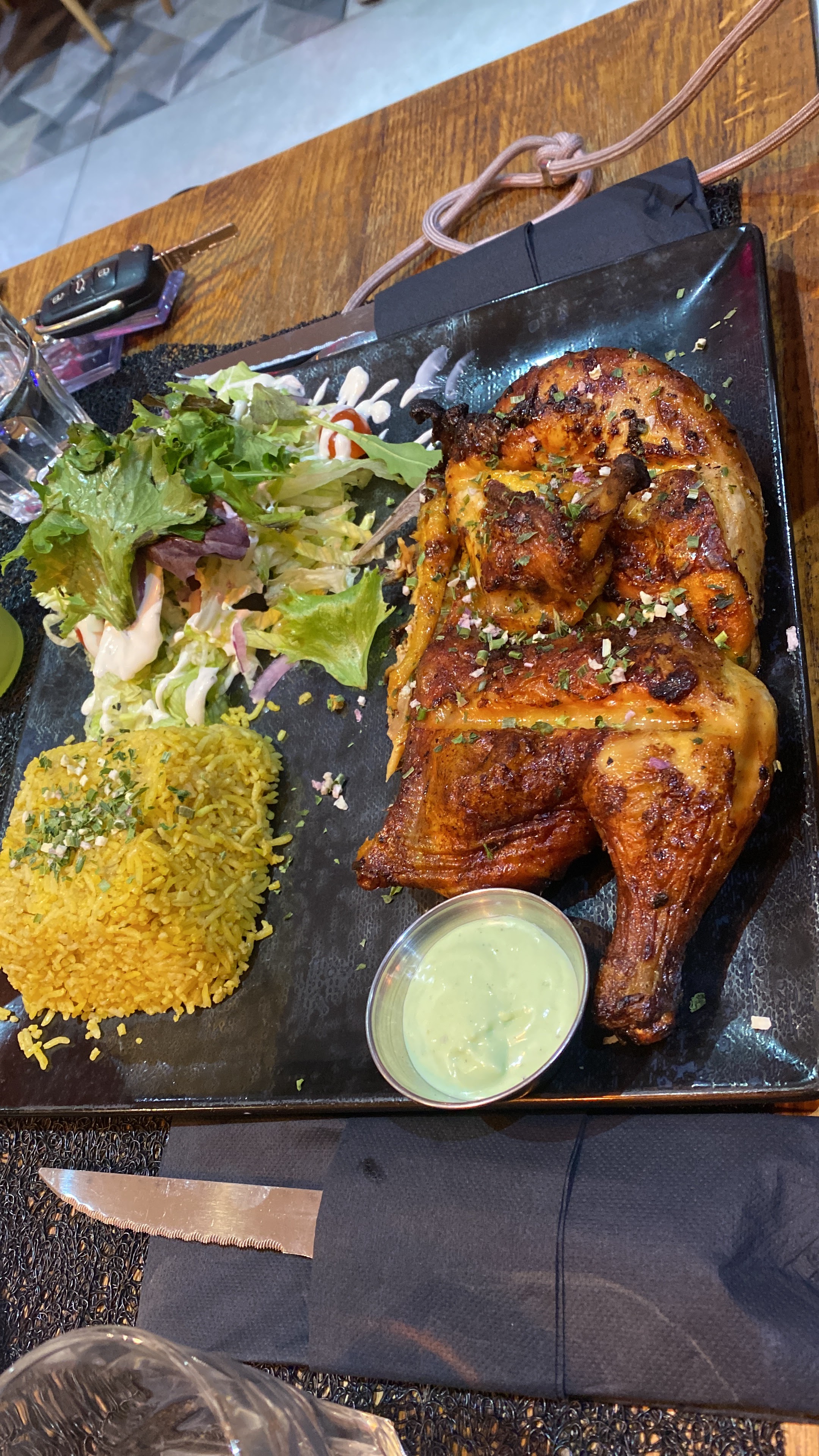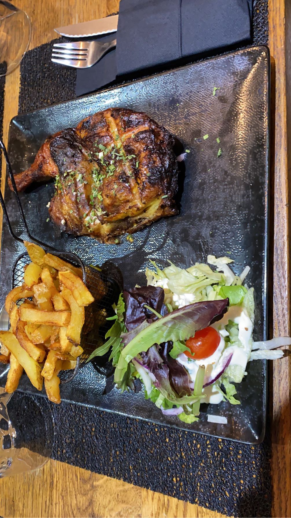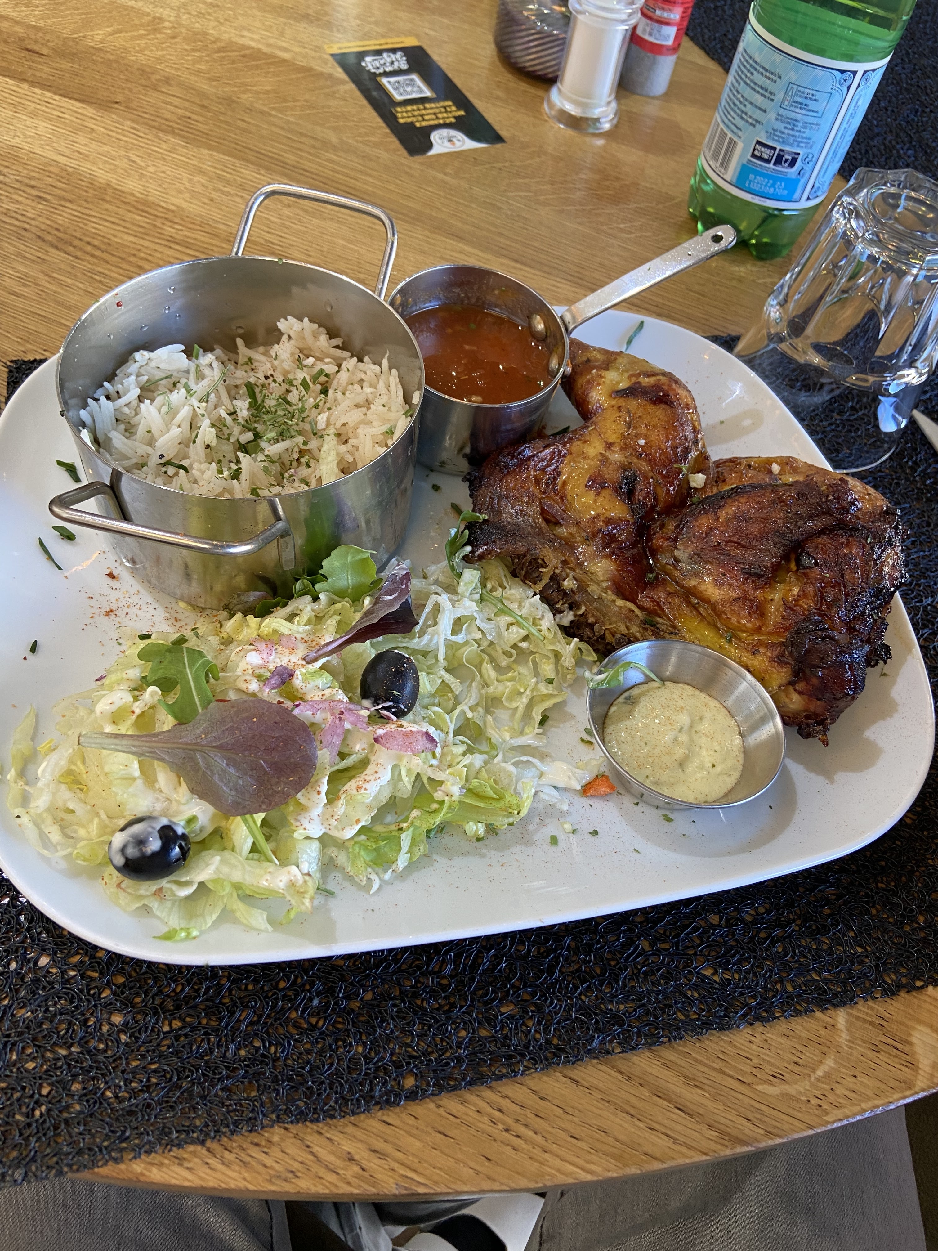 Je vous recommande fortement ce restaurant, j’ai pris la formule avec le demi poulet, c’était excellent, le rapport qualité prix est au top, 14,90€ Demi-poulet/frite/boisson 👌 Le personnel est très agréable, beau travail 👏