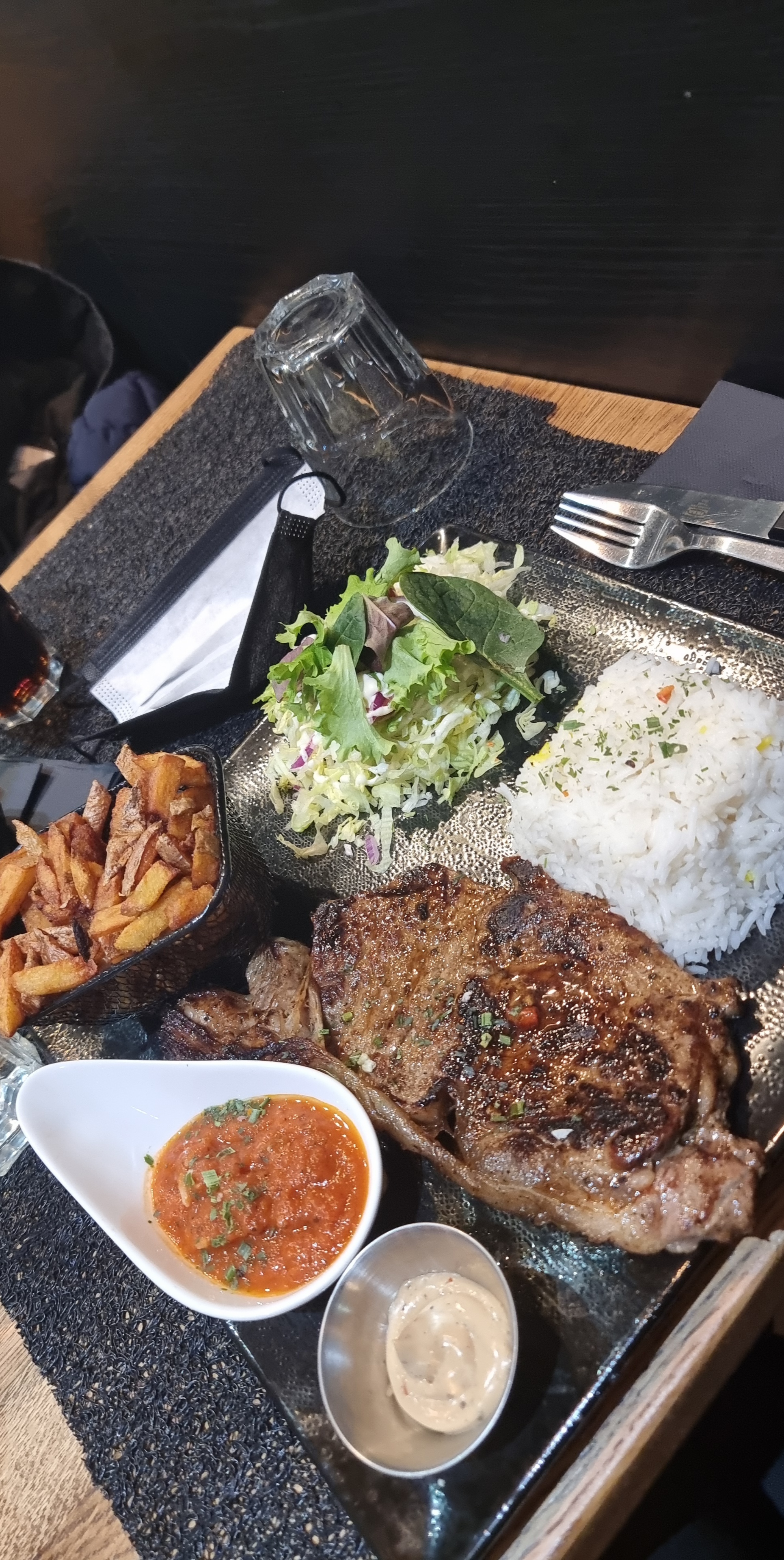 Hyper satisfaite de l'accueil, c'était mon anniversaire et ma copine Hadja m'a fait une surprise en m'y amenant.J'ai pris l'entrecôte et des frites vraiment c'était trop bon que j'ai décidé de prendre des wings aussi,vraiment rien à dire !l'accueil était chaleureux que j'ai eu envie de revenir .