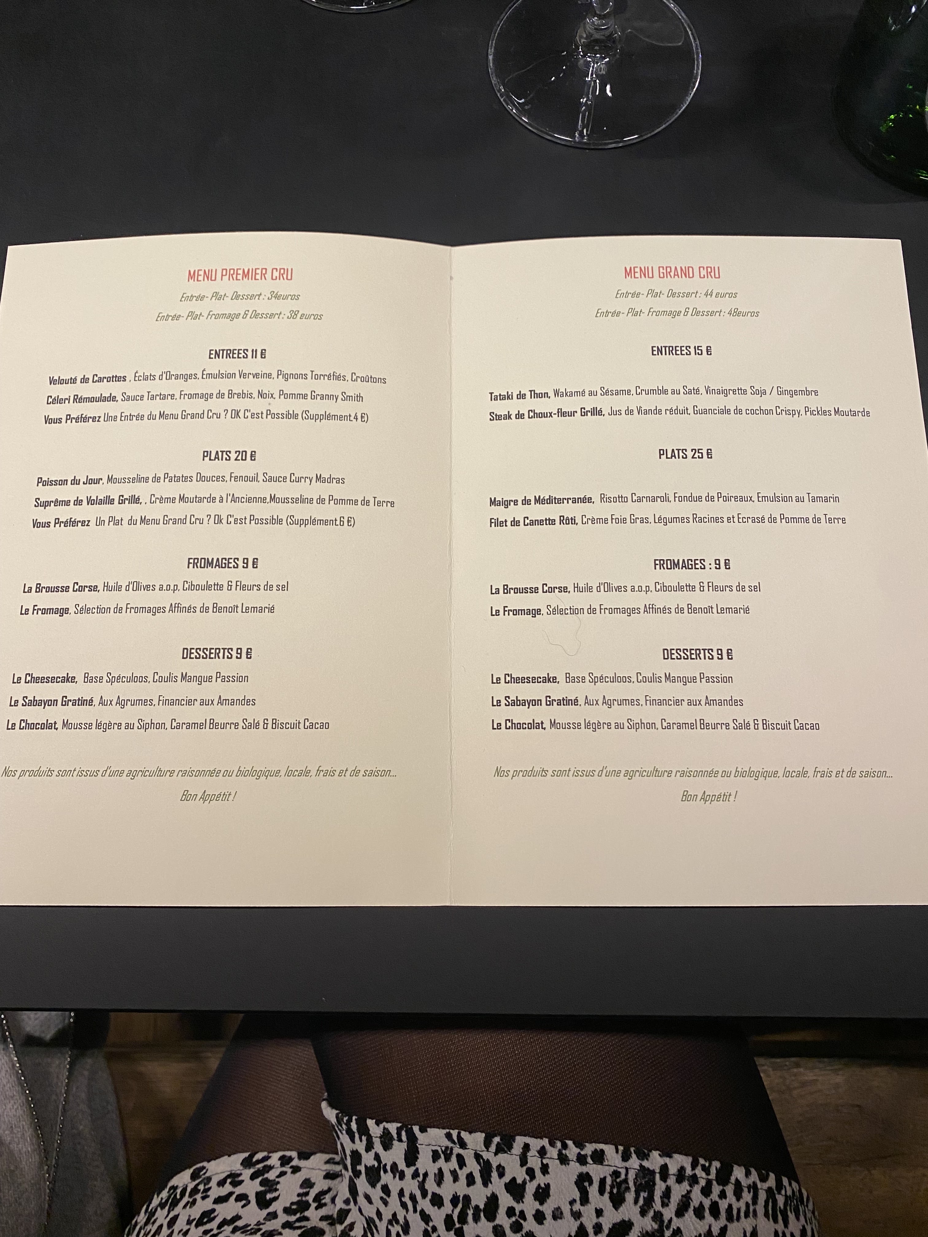 Une adresse interresant pour les amoureux du vin et d’une petite lichette de snobisme Cote vin rien a dire ils connaissent leur métiers est a la hauteur, mais mais la reaction du patron, plutot meprisante vis a vis de celui qui ne bois pas de vin pour des raison qui lui son propres est une reaction assez désagréable, heureusement le serveur a grandement rattrapé le coup par sa grande gentilesse et un service impeccable Les plat sont exécutés avec une grande technique et pour tout dire magnifique a l’oeil, l’execution est impecable le chef est un grand chef mais son grand talent n’arrive pas a masquer l’utilisation d’ingredients « a bon prix » La générosité c’est ce qui fait les grand restaurant, elle est presente chez les employés et elle masque son absence chez le patron qui n’aura comme excuse a son comportement desagreable que le fait « qu’il ne gagne pas assez d’argent sur la nourriture « et compte sur le vin pour se rattraper Cette vérité est déjà connue de la plupart des restaurateurs résulte d’un choix marketing lie au fait que les gens ne regardent pas le prix du vin Mais on ne reproche pas ses choix marketing au clients c’est la base du commerce surtout quand on parle d’alcool qui peu être interdit aux gens pour des raison médicale mais cela fait parti des choses qui ne se disent pas chez les gens bien élevés