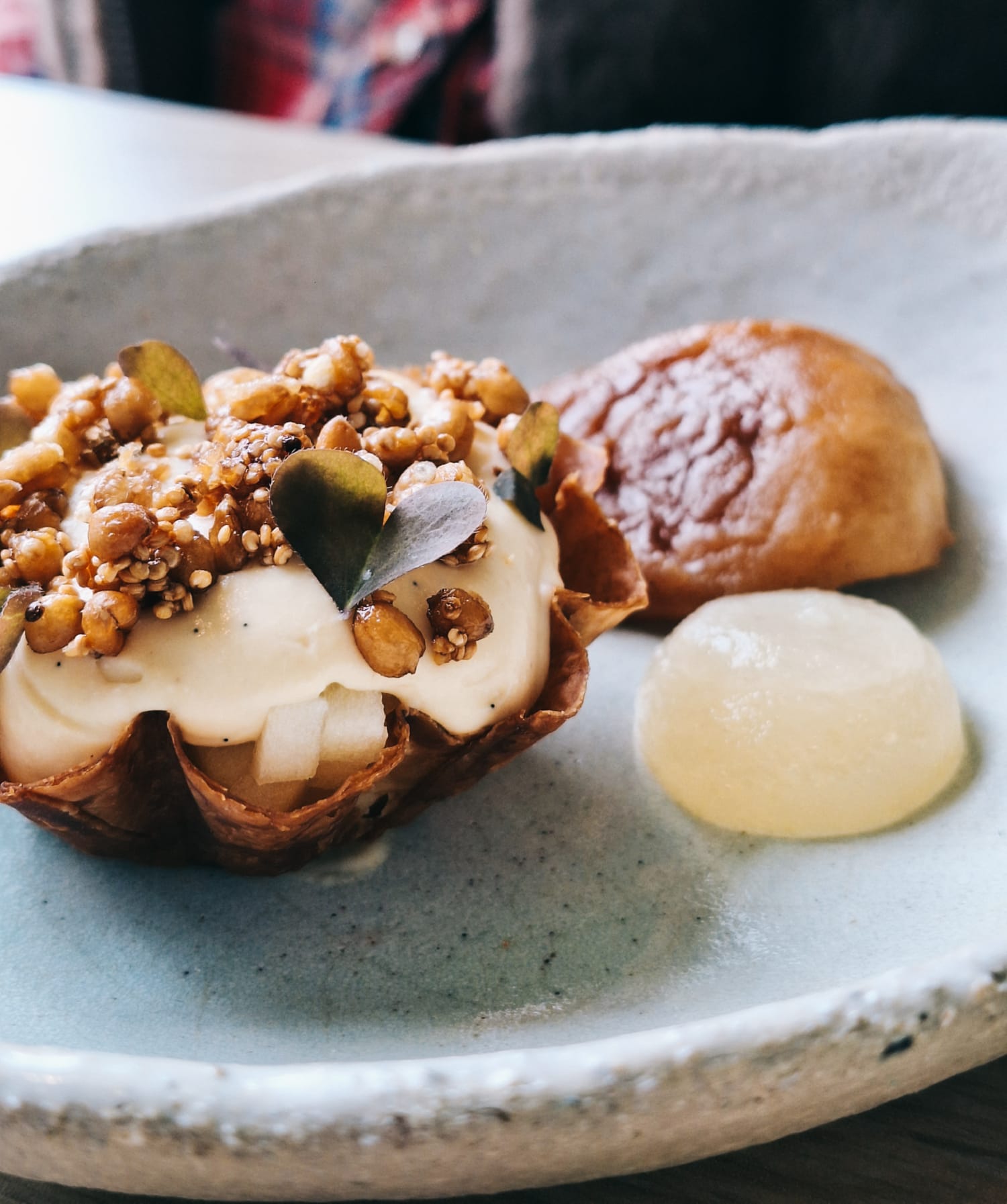 Excellente table Nous avons passé un merveilleux moment gustatif avec cette magnifique découverte de la cuisine de la cheffe 🧑🍳 et de son équipe Seul bémol une salle très bruyante