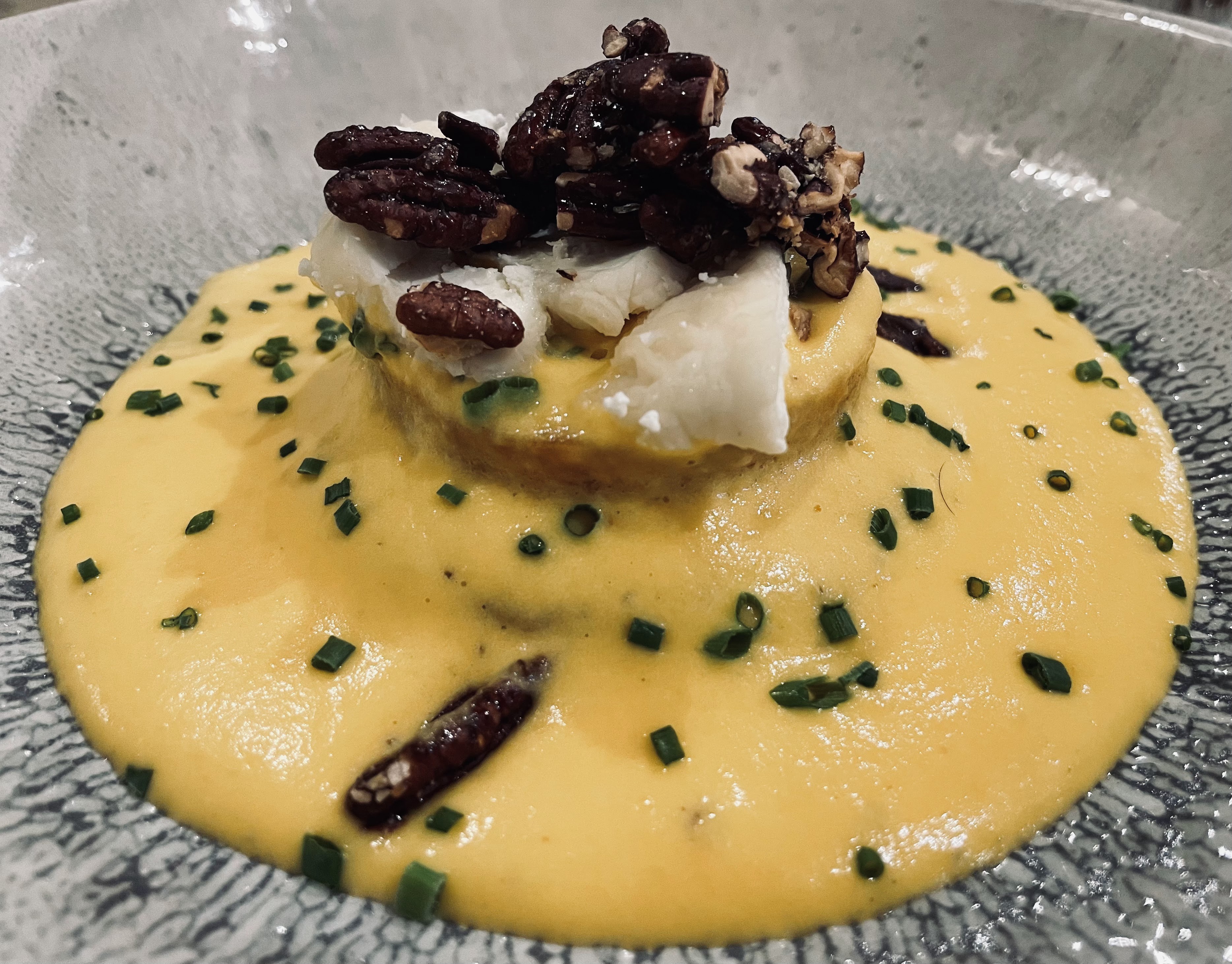 Quand je vais au restaurant je veux être épatée par le contenu de mon assiette : saveur, texture, finesse. Pari réussi hier ! . Un petit bémol sur l’entrée : des œufs mimosas revisités qui étaient moins bluffants. Pouvoir améliorer l’acoustique serait également un plus.