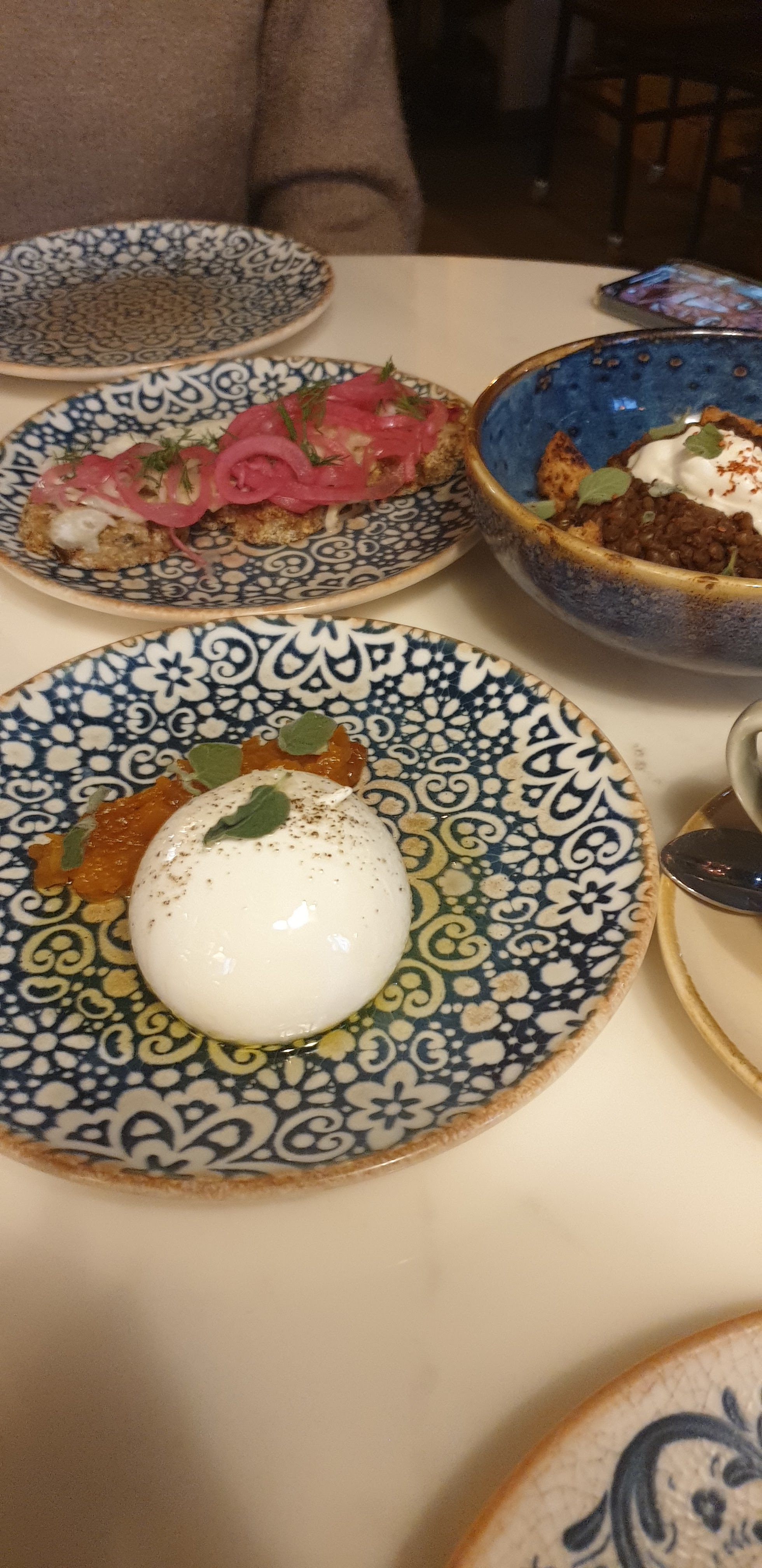 Nous y sommes venus à deux un samedi midi et avons partagé un amour de lentilles, un fish cake, et une burratina. Avec un jus et une boisson chaude chacun, nous en avons eu pour 20€50 par personne. Nous avons passé un bon moment.