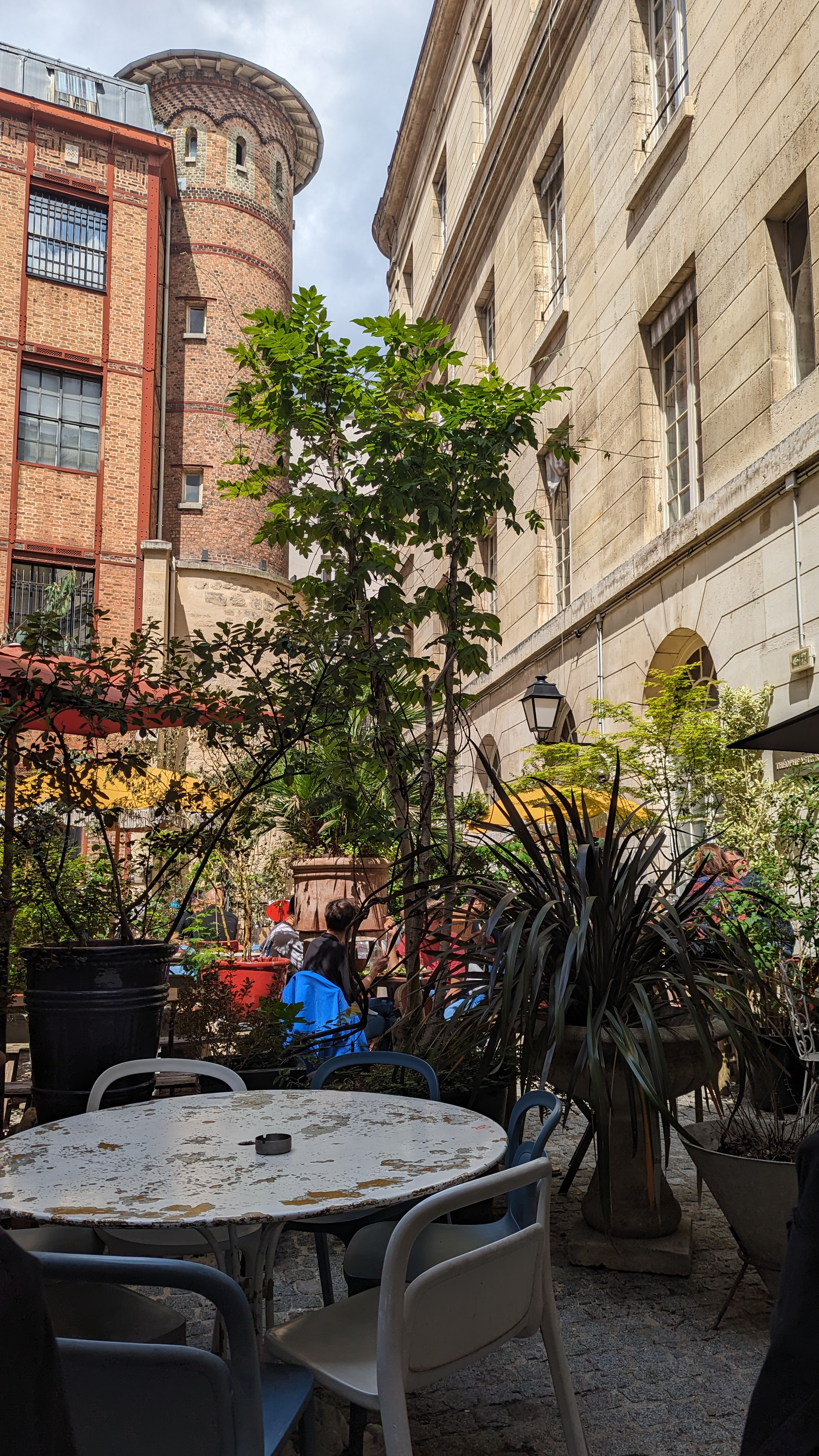 Je vis dans le quartier depuis 17 ans et n’ai jamais pris la peine de découvrir cet établissement… la cours est agréable et à l’écart du bruit de la rue! Belle surprise! Je reviendrais pour tester le brunch 😇