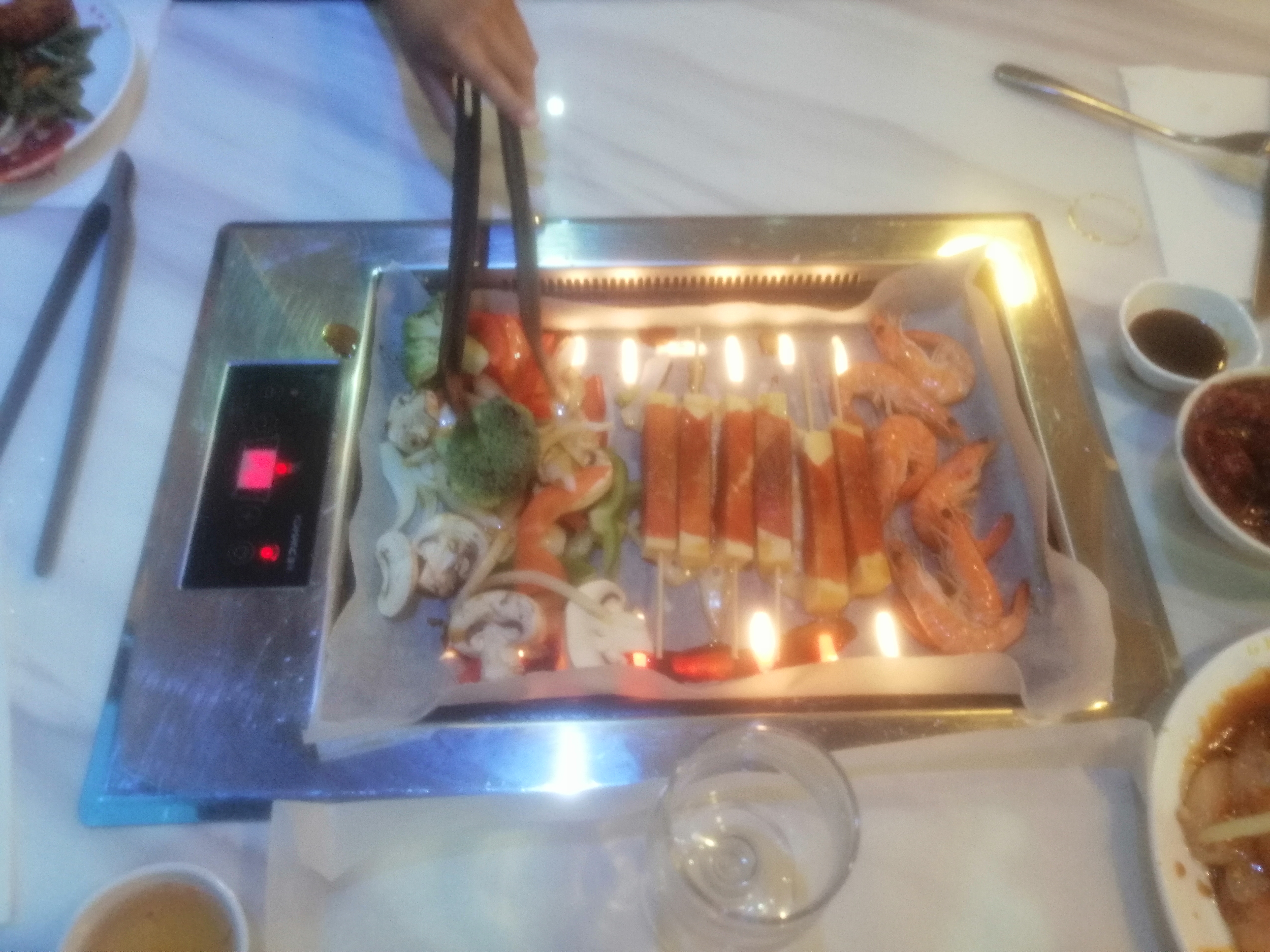 globalement satisfait. Si vous êtes fans de fruits de mer, vous êtes à la bonne adresse : crevettes, sèches, crabes, saumon,.. vous pouvez les griller sur un grill au centre de votre table, mais si vous êtes fans de viandes fraîches et facile à mâcher, passez votre chemin. Les entrées sont diversifiés et bonnes, les boissons sont à volonté 😉, les desserts sont là qualité moyenne, mais les glaces pas trop bonnes.