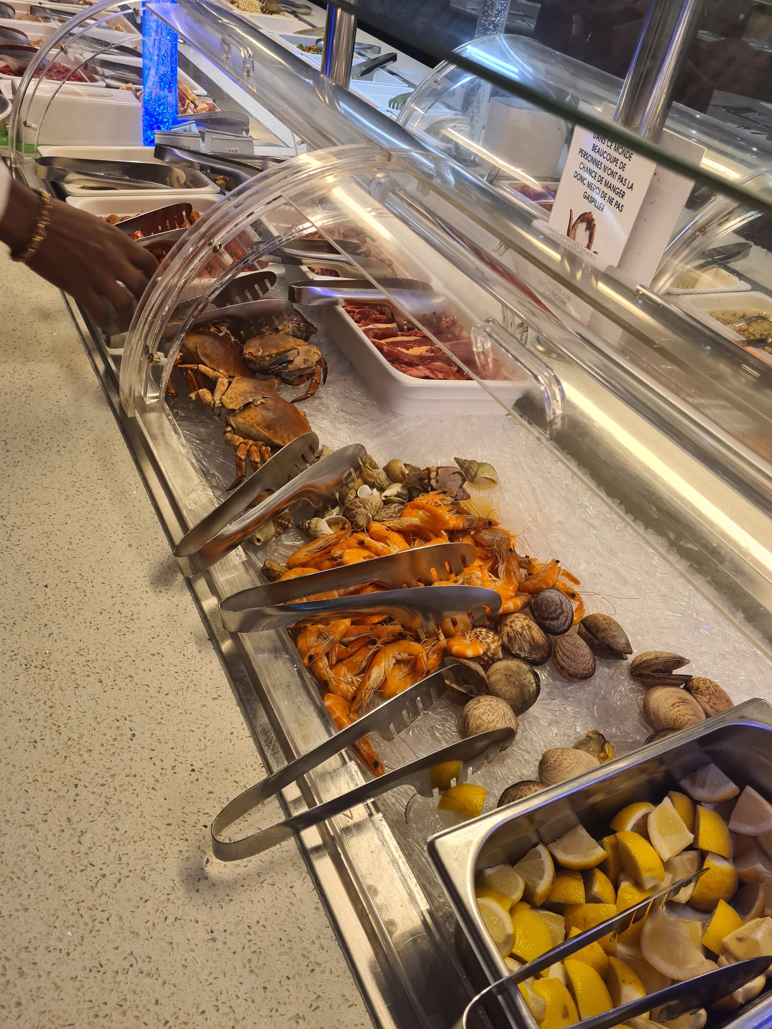 Je me suis bien régaler se soir rien à dire😍😍!!!! Je suis venue avec mon copain. Les boissons sont à volontés et c'est super, on peu y manger de la viandes et poissons, que dans les magasins ont ne peu pas via hors prix. Tout ça pour 22€90. Si 1 jour j'ai l'occasion j'y retournerais^^. Pour les commentaires négatifs je les ignores, forcément si vous venez à 21h/21h30 les buffets se vident
