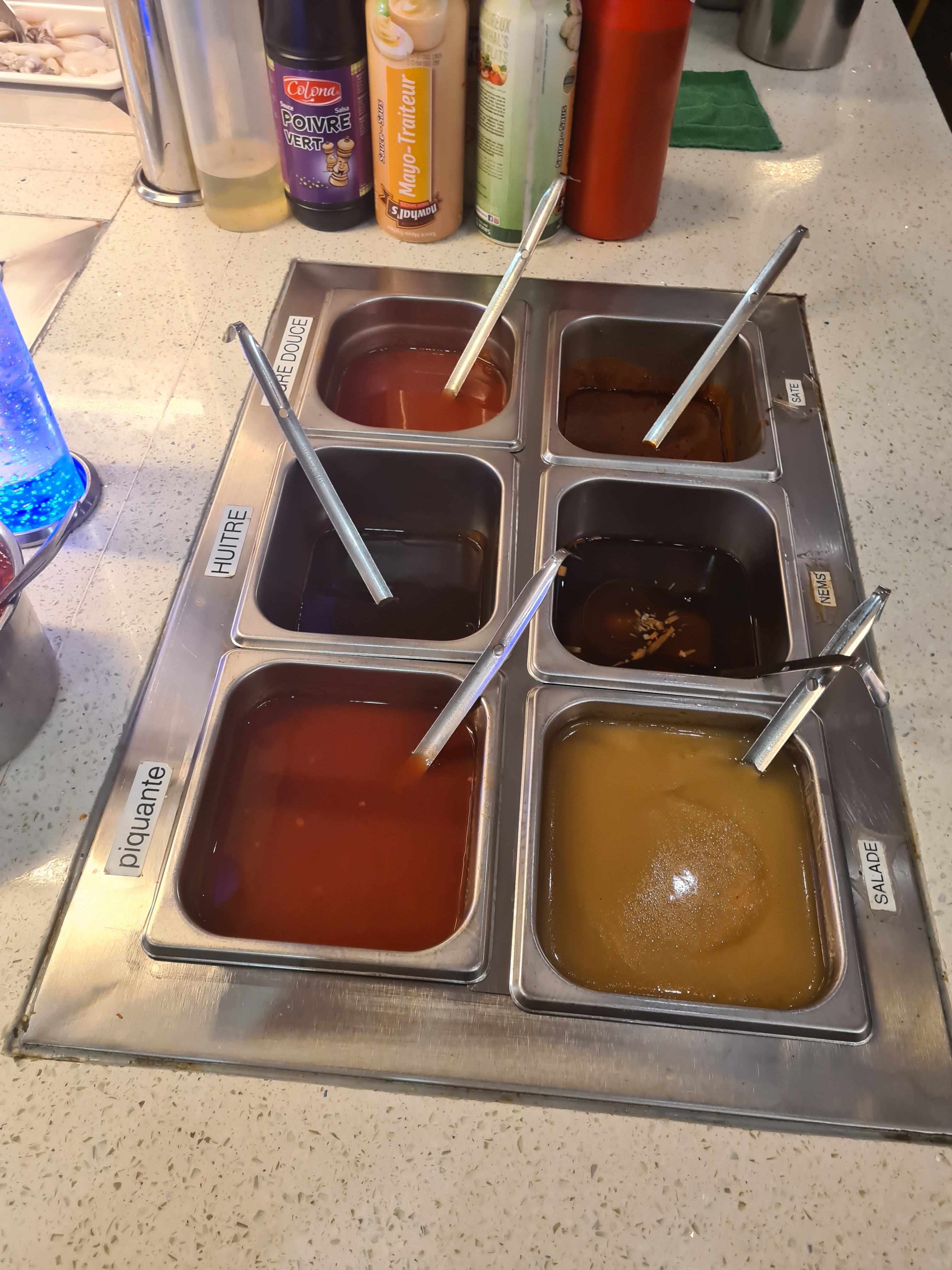 Un restaurant asiatique à volonté avec son petit plus, sa grille chauffante intégrée dans la table. C'est vraiment top pour ceux aiment manger chaud, on peut y réchauffer ces viandes et légumes. Pour le gout, c'est un bon rapport qualité prix pour celui qui mange avec détermination. Vous avez un choix de sauces qui vous permettra d'agrémenter vos mets à votre convenance.