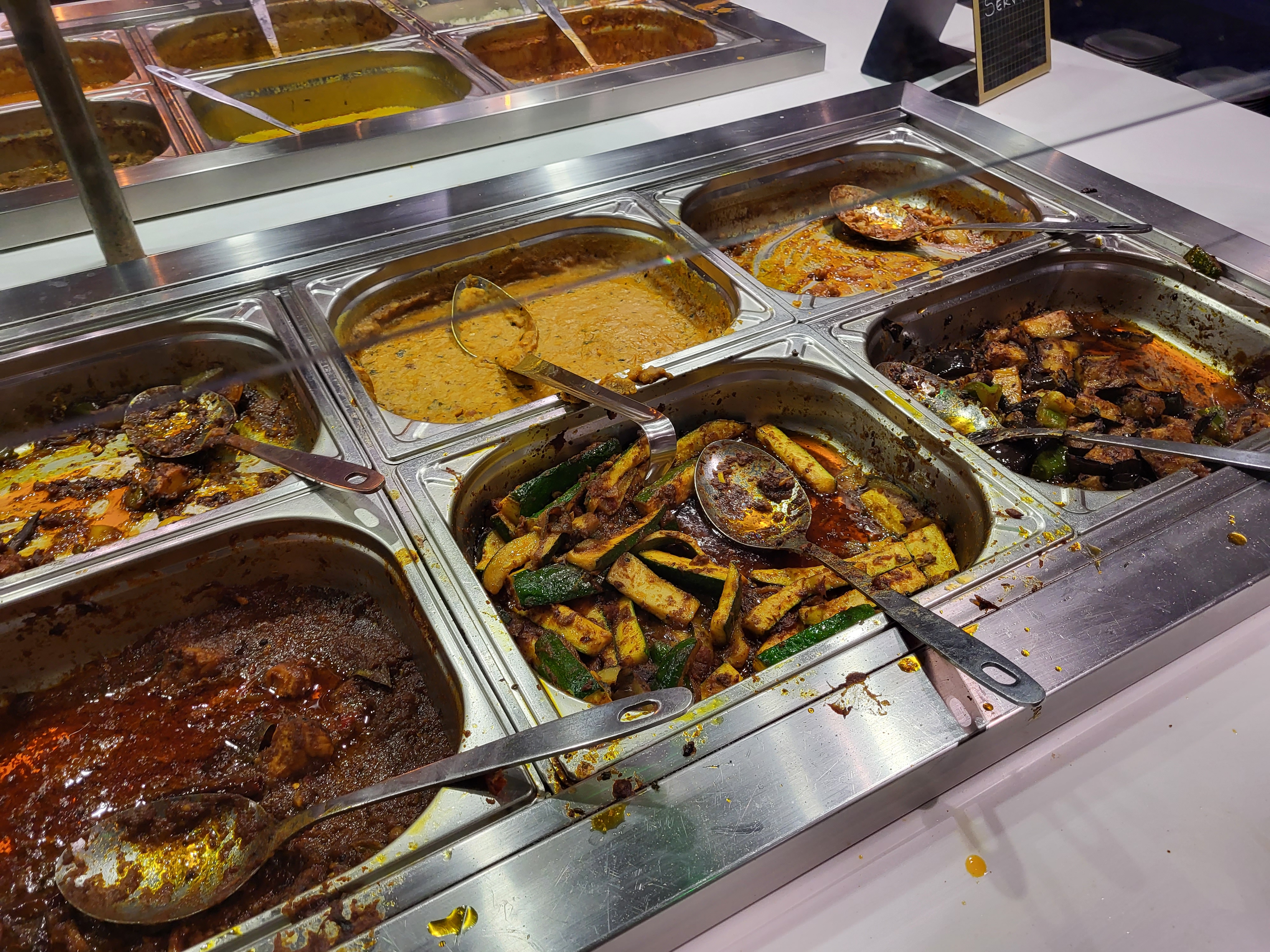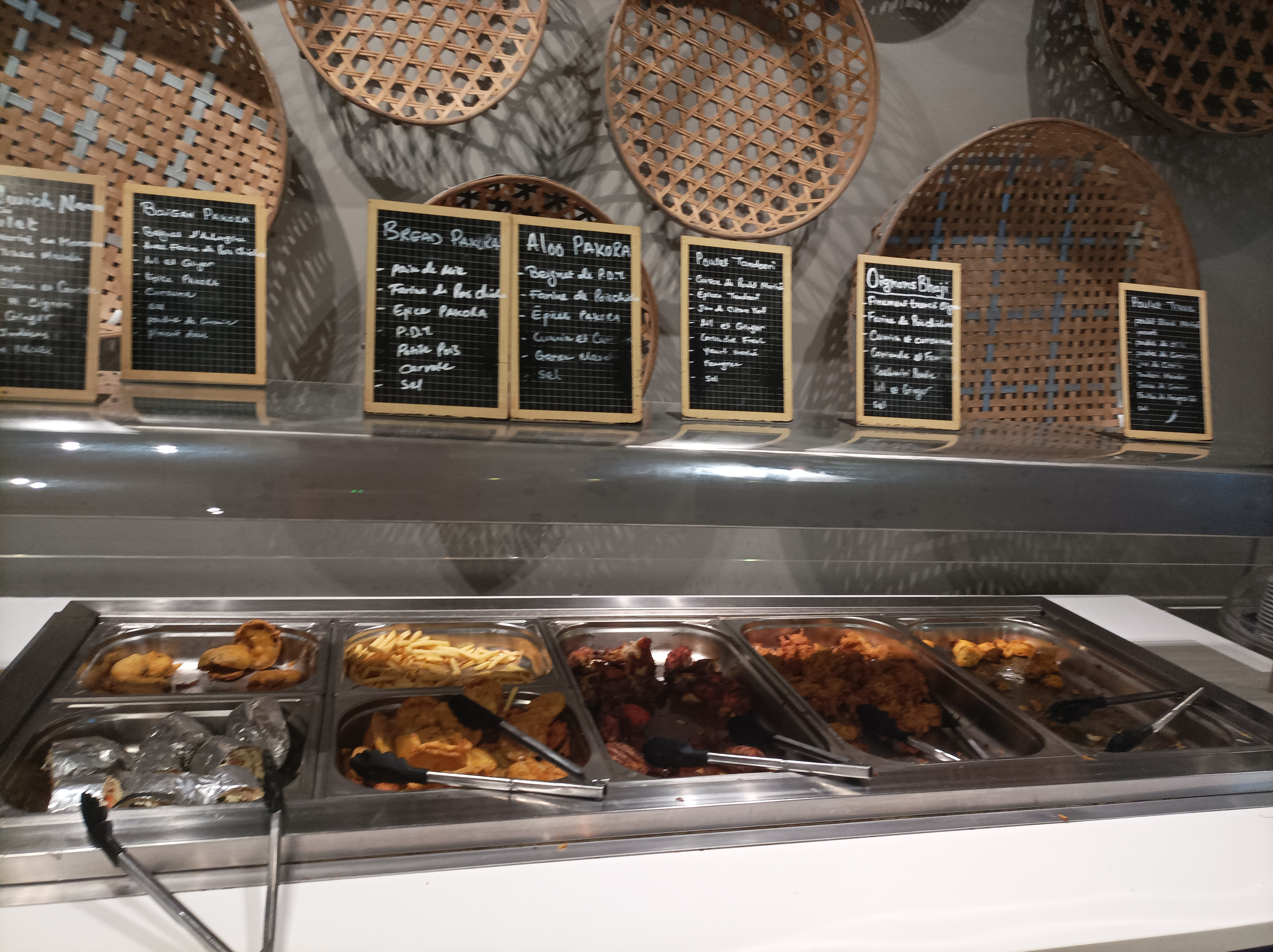 Buffet à volonté très varié avec de nombreuses saveurs ! J’ai eu une préférence pour les crevettes préparées que j’ai mélangé avec un riz au safran ! De plus il y a beaucoup de légumes et des pains naan maison pour saucer le tout. Je recommande vivement !